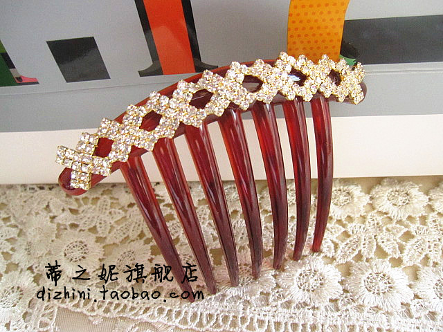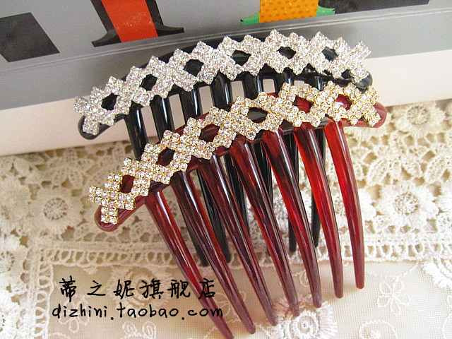 2017新款插梳女頭飾品專柜正品發梳包鉆水晶發飾盤發韓版發卡發飾1入