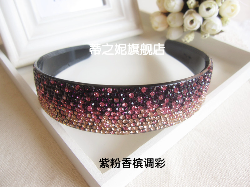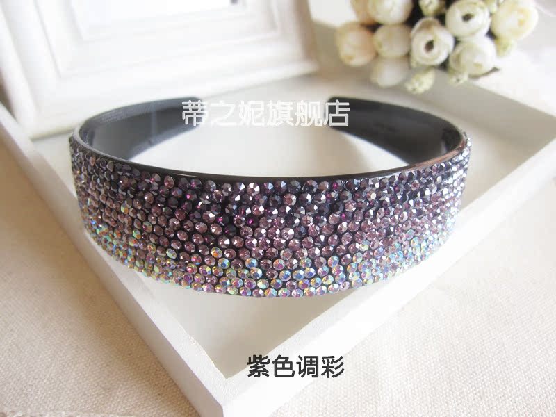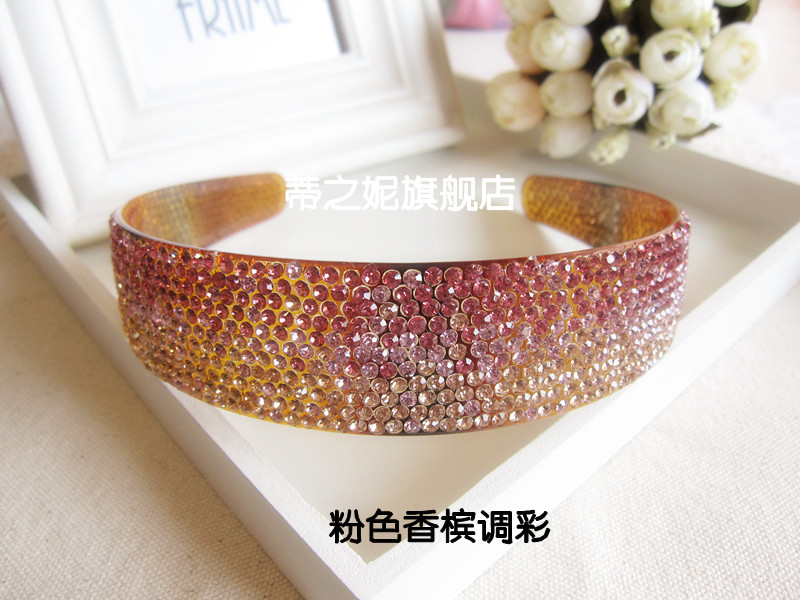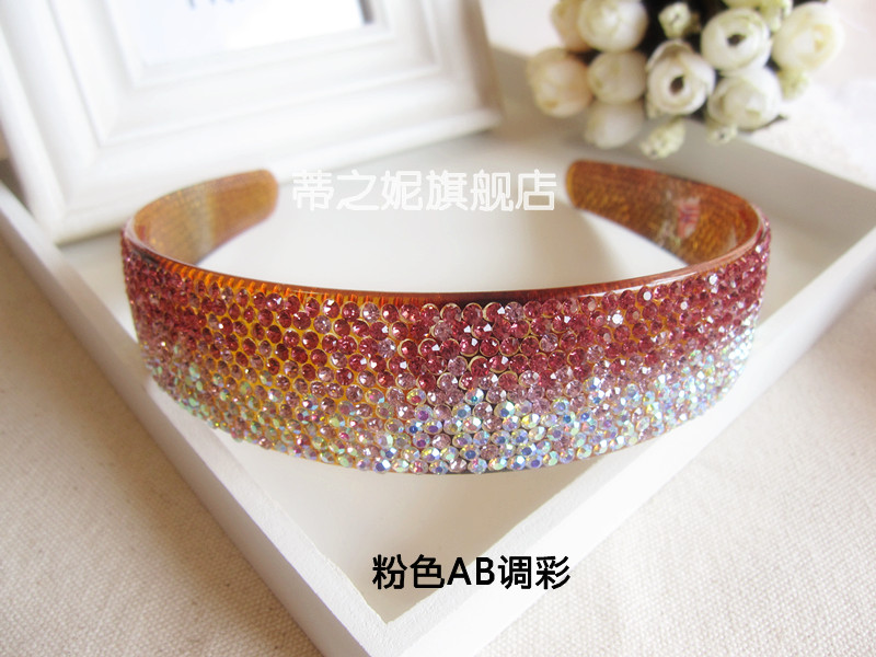 韓國漸變色鑲鉆水鉆貼鉆帶齒發箍寬邊頭箍女發飾頭飾發卡夾水鉆1入