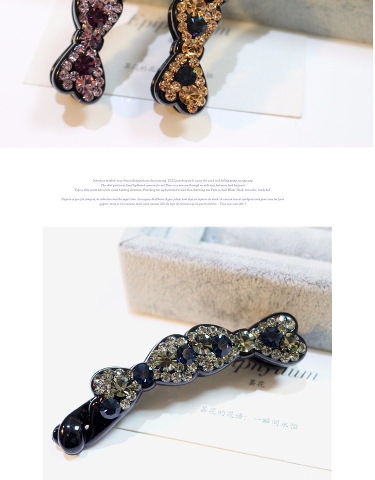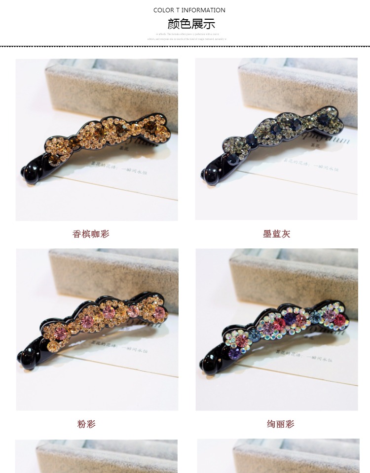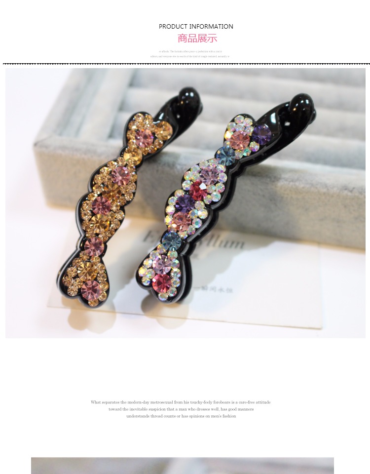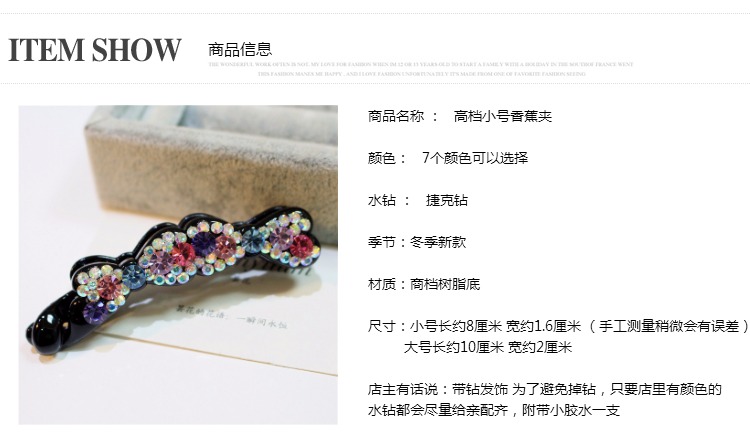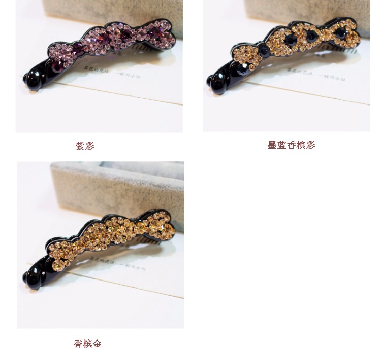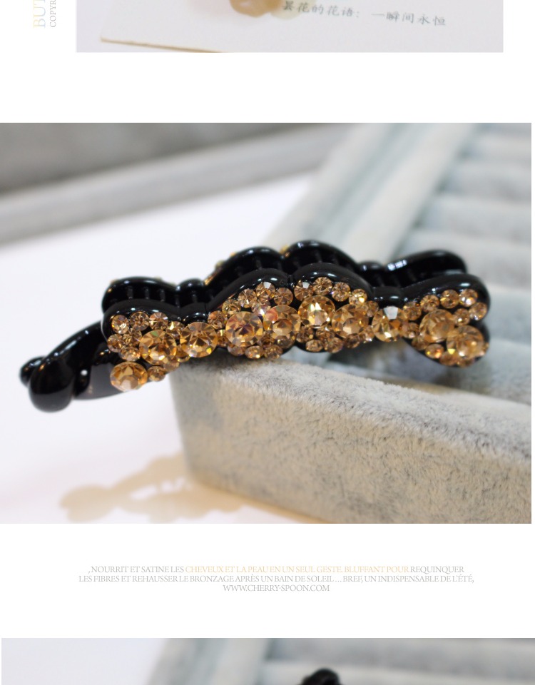 韓版鑲鉆樹脂發飾品韓國正品小號蝴蝶結豎夾香蕉夾捷克鉆女式發夾1入
