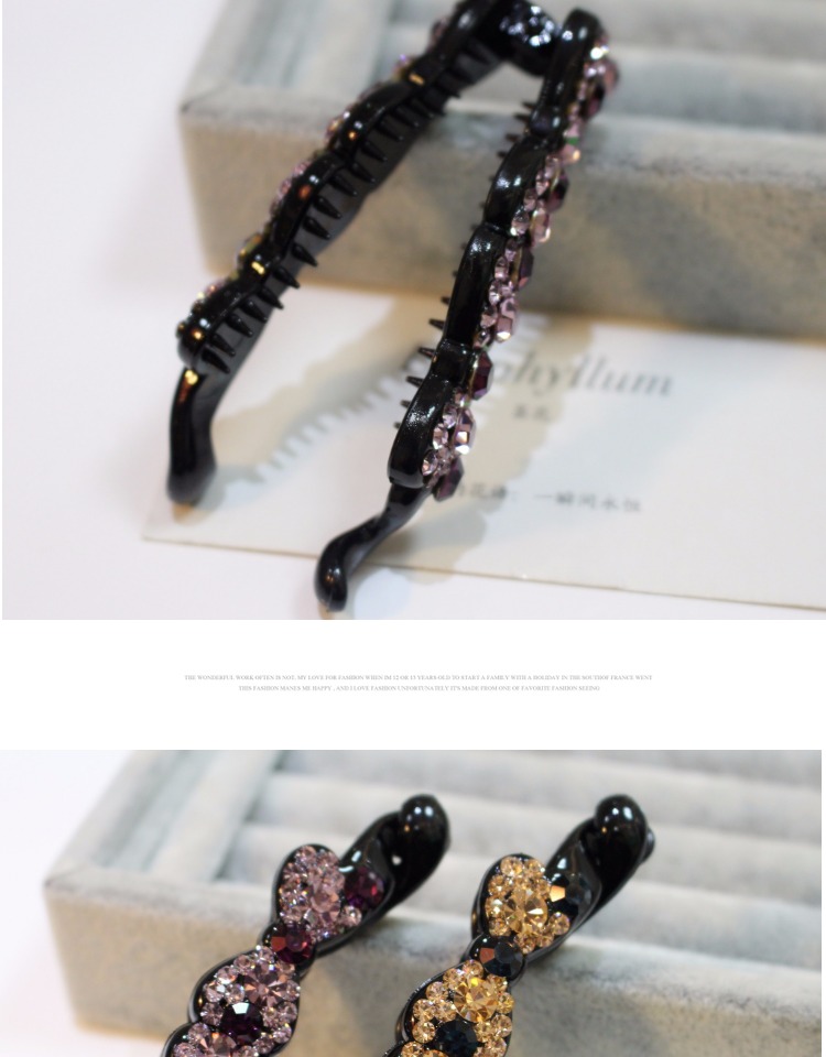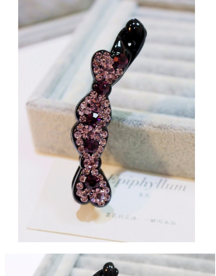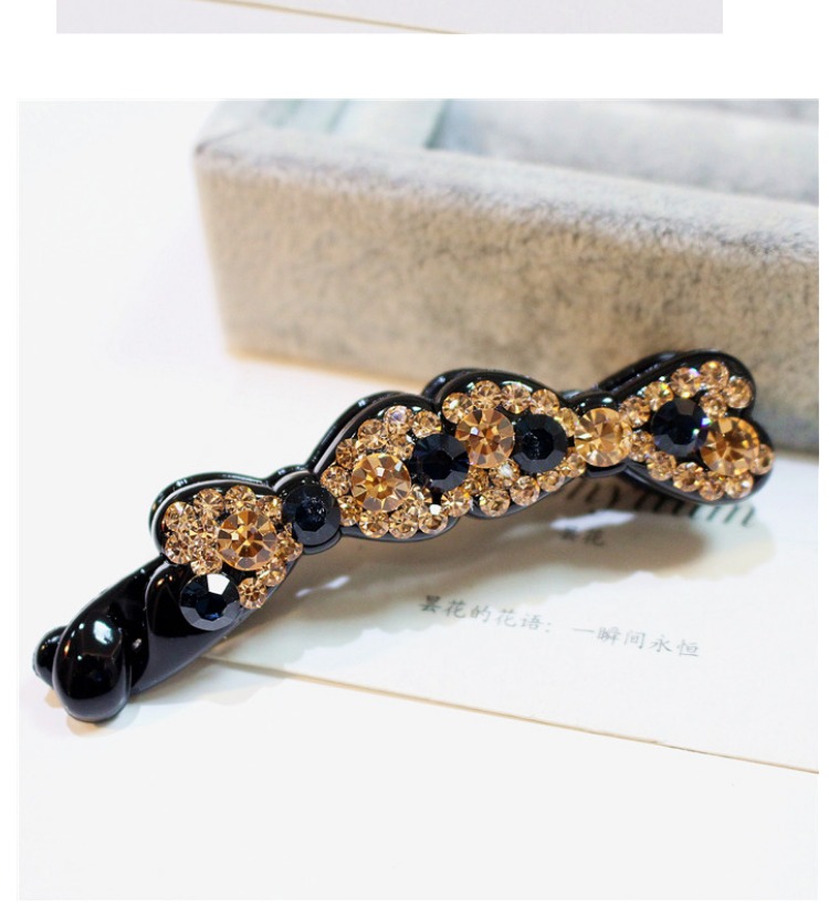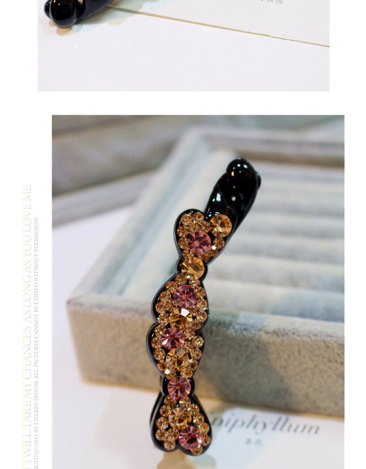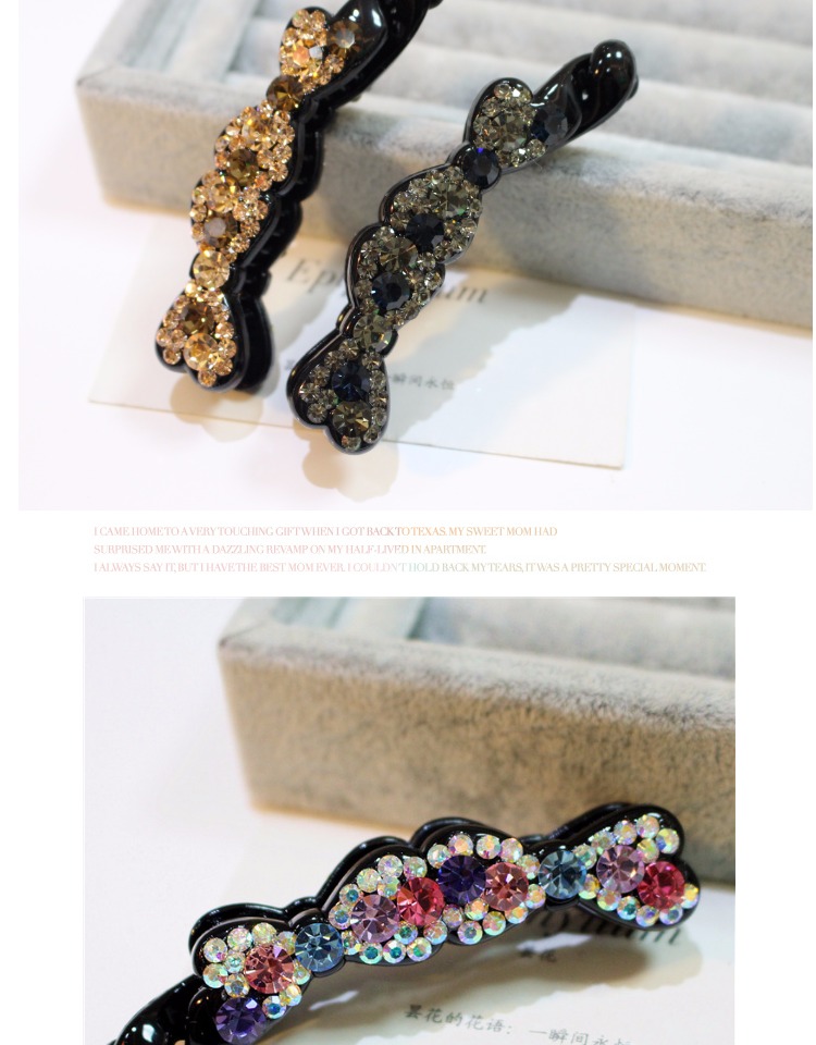 韓版鑲鉆樹脂發飾品韓國正品小號蝴蝶結豎夾香蕉夾捷克鉆女式發夾1入
