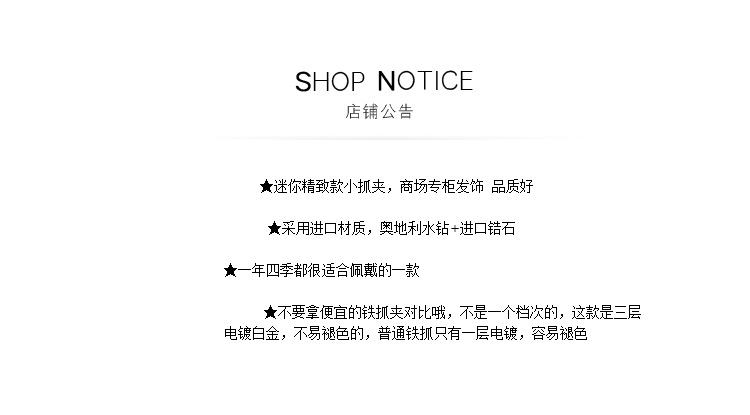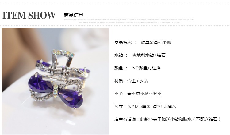 韓國正品發飾品 水鉆鋯石小號抓夾劉海夾水晶鐵發抓精致高檔發夾1入