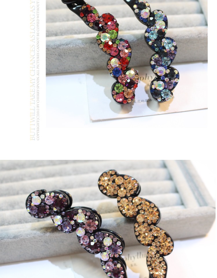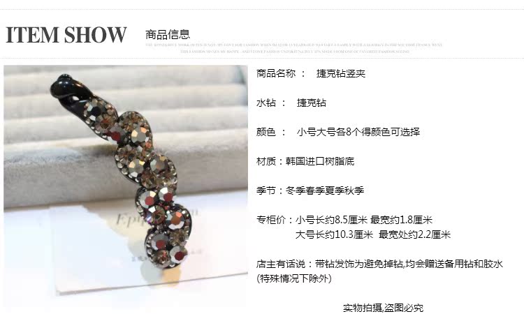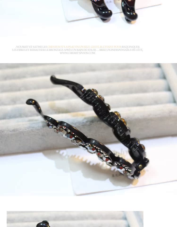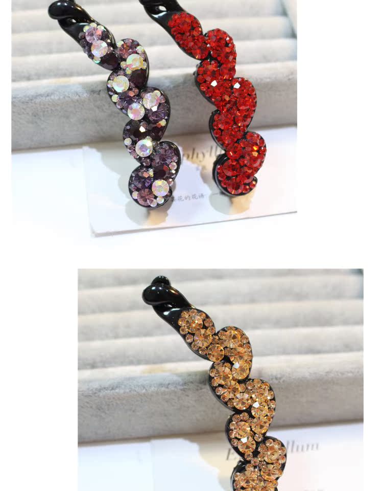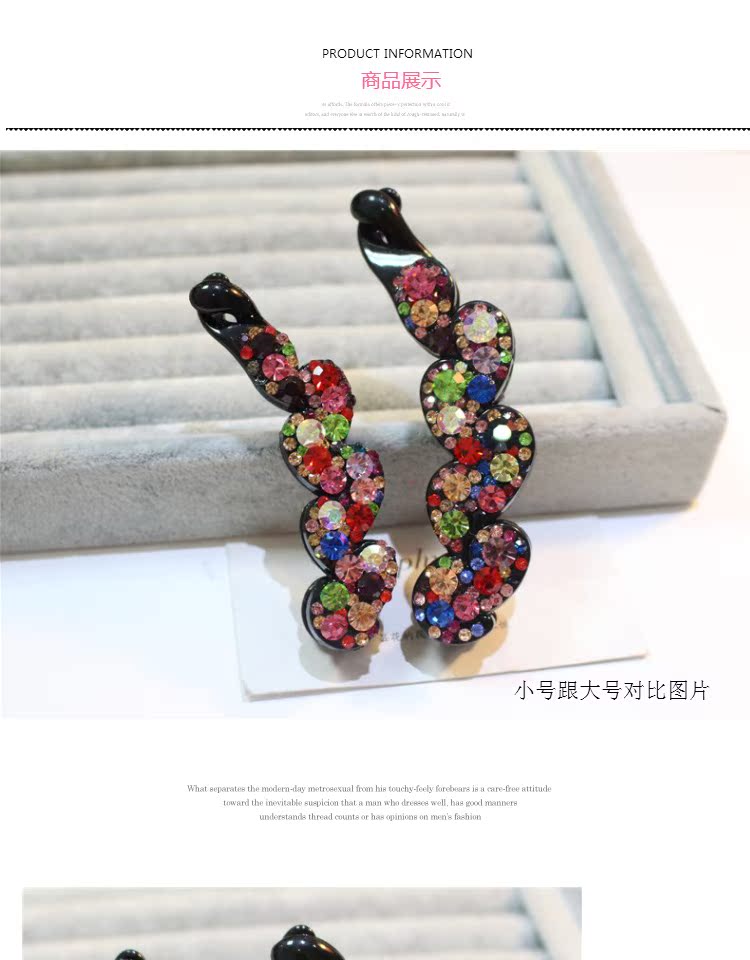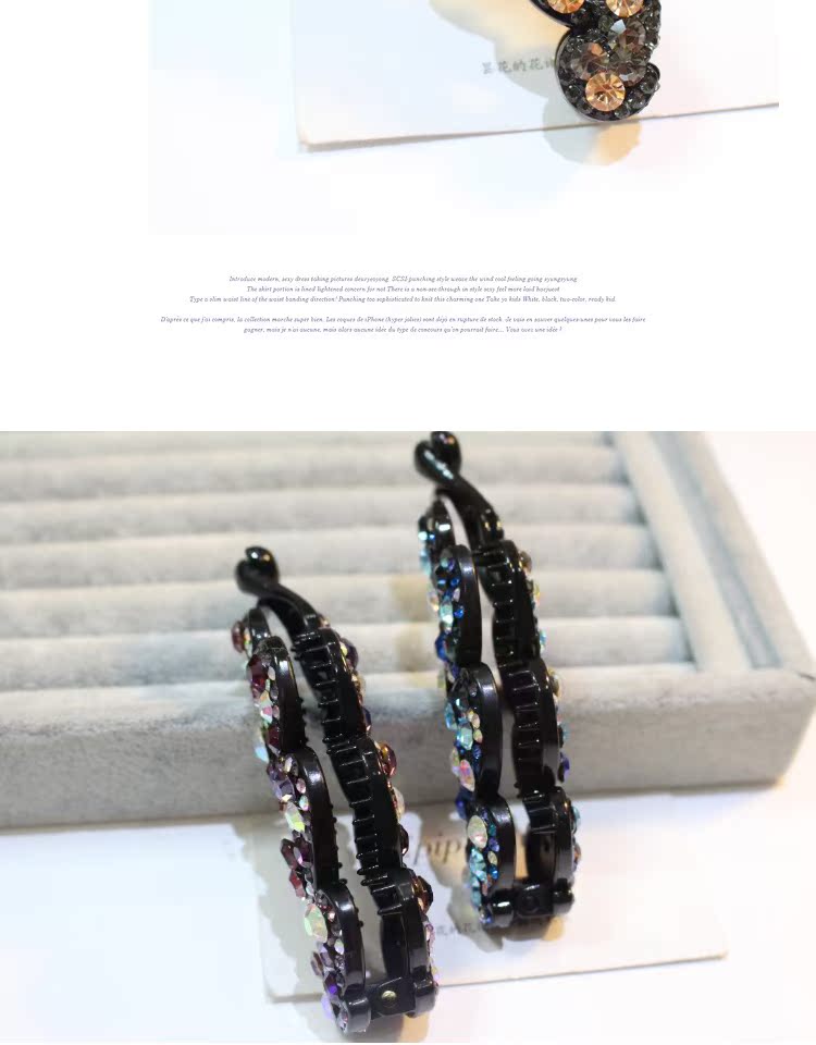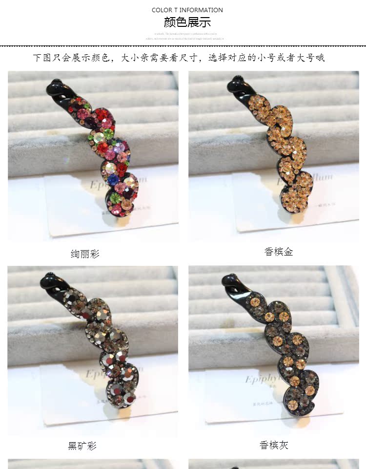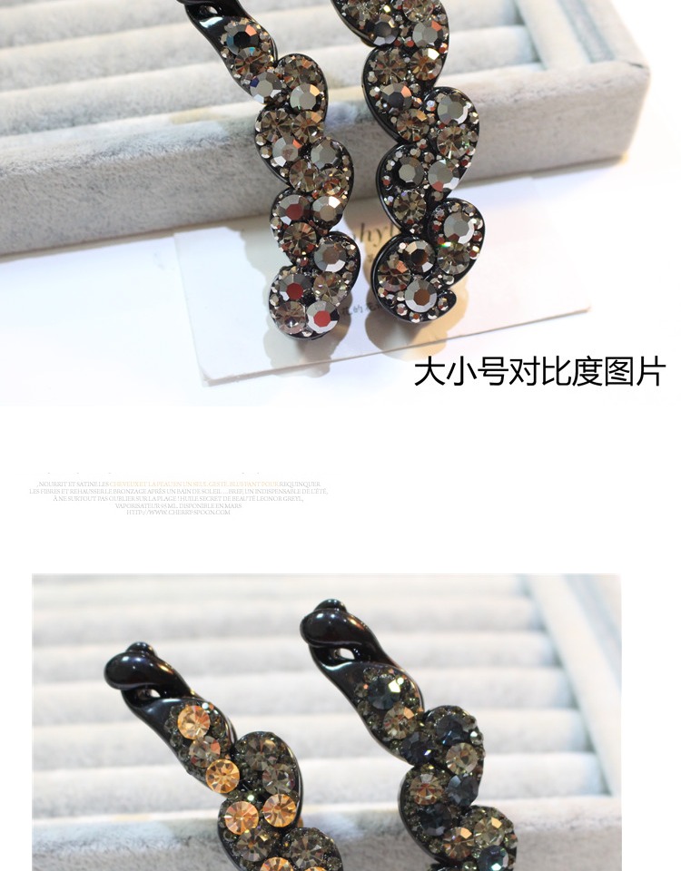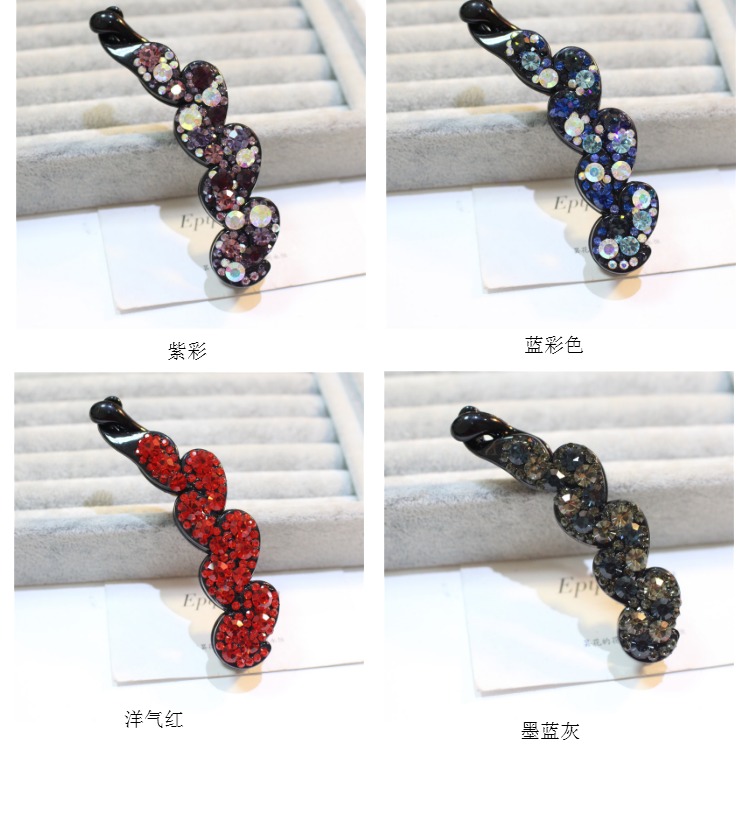 韓國頭飾品 韓版小號水鉆香蕉夾大號水晶豎夾捷克鉆馬尾扣夾發飾1入