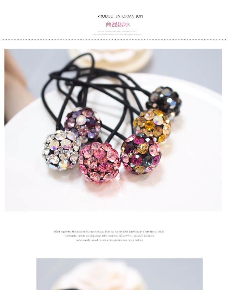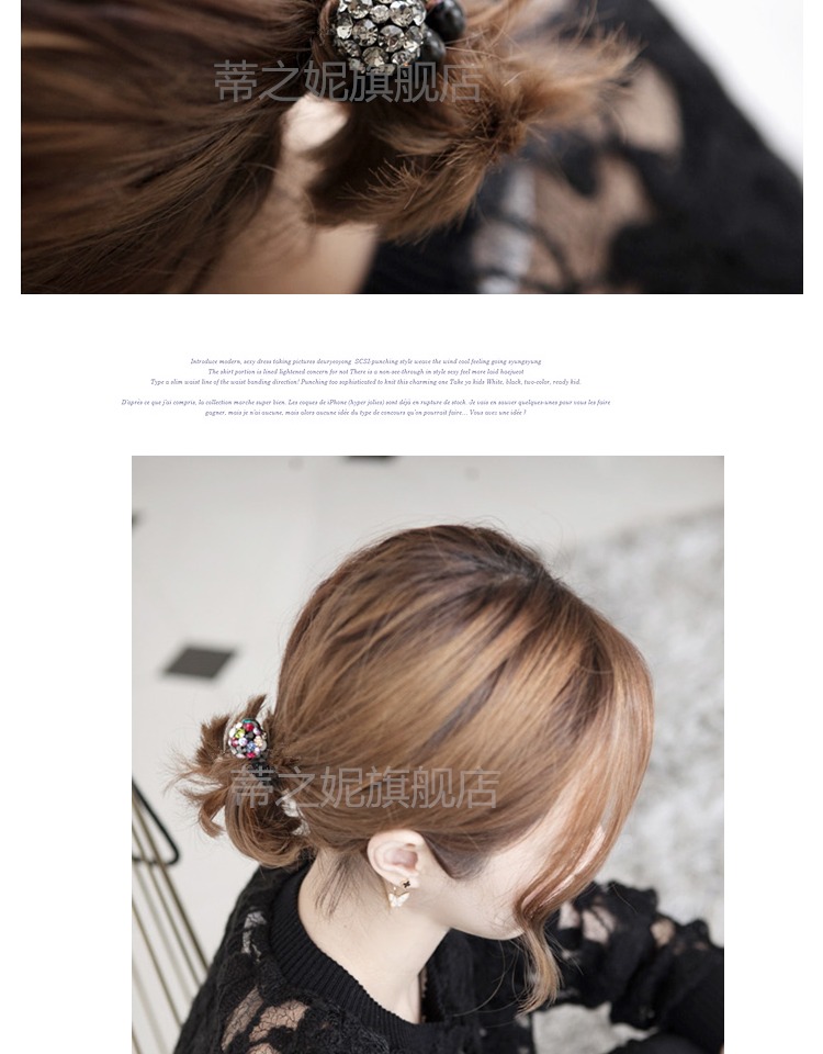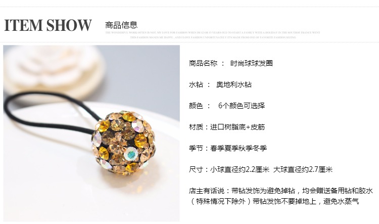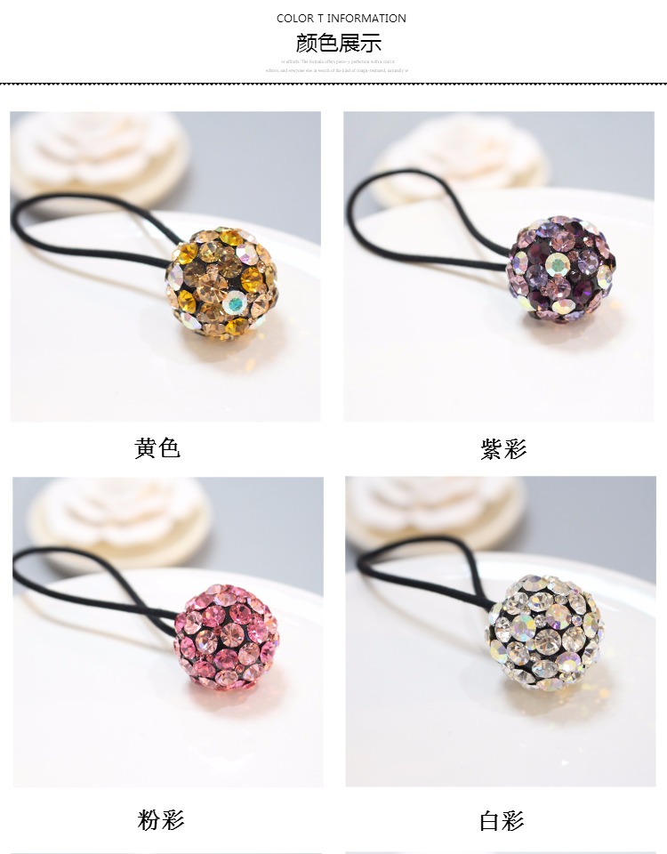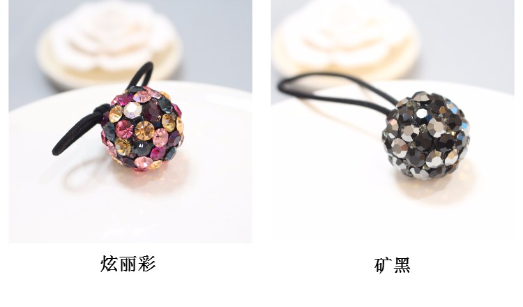 韓國進口頭飾品日韓彩鉆水晶圓球球頭發圈簡約頭繩皮筋丸子頭發飾1入