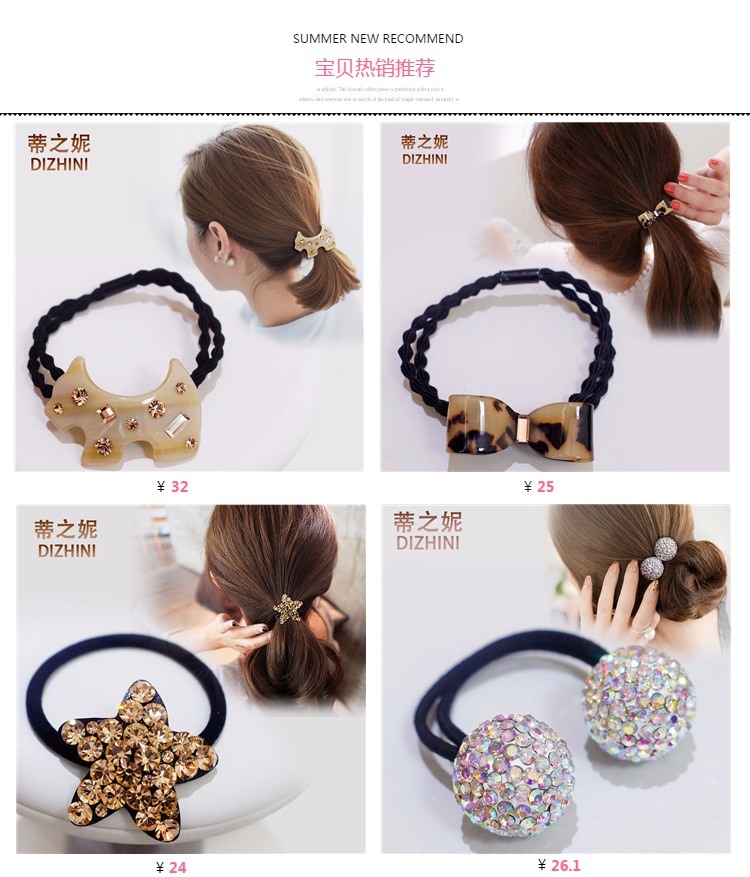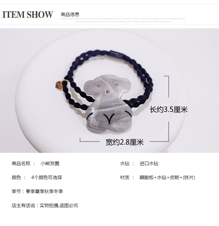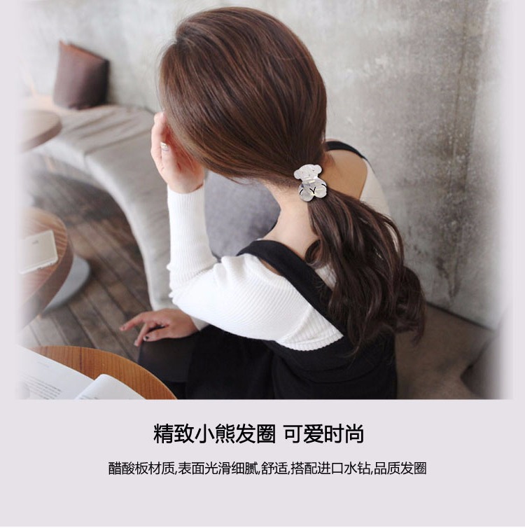 頭繩韓國小清新小熊發圈發繩扎頭發水鉆頭花頭飾皮筋簡約發飾飾品1入