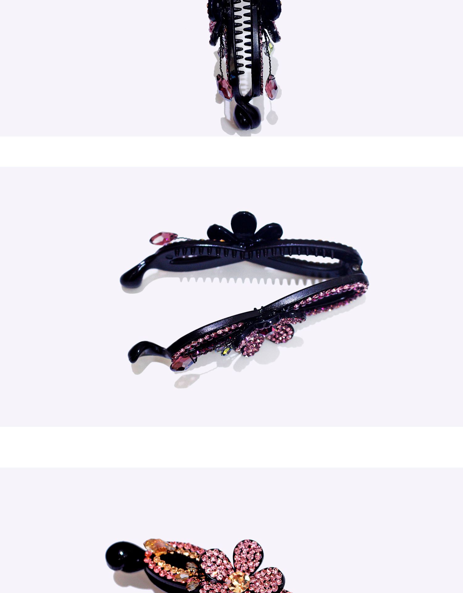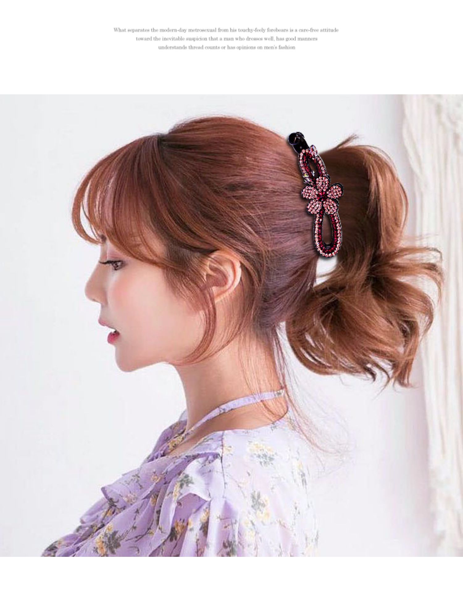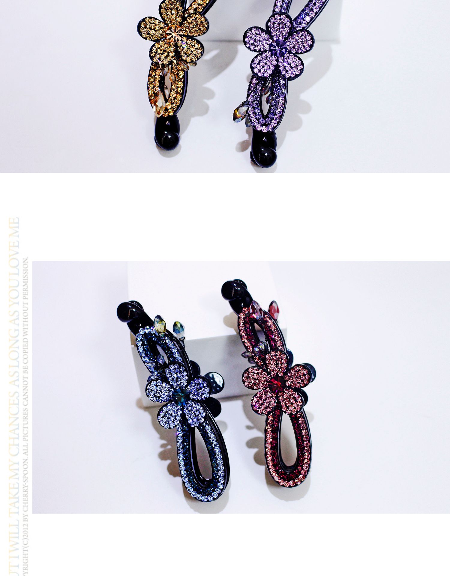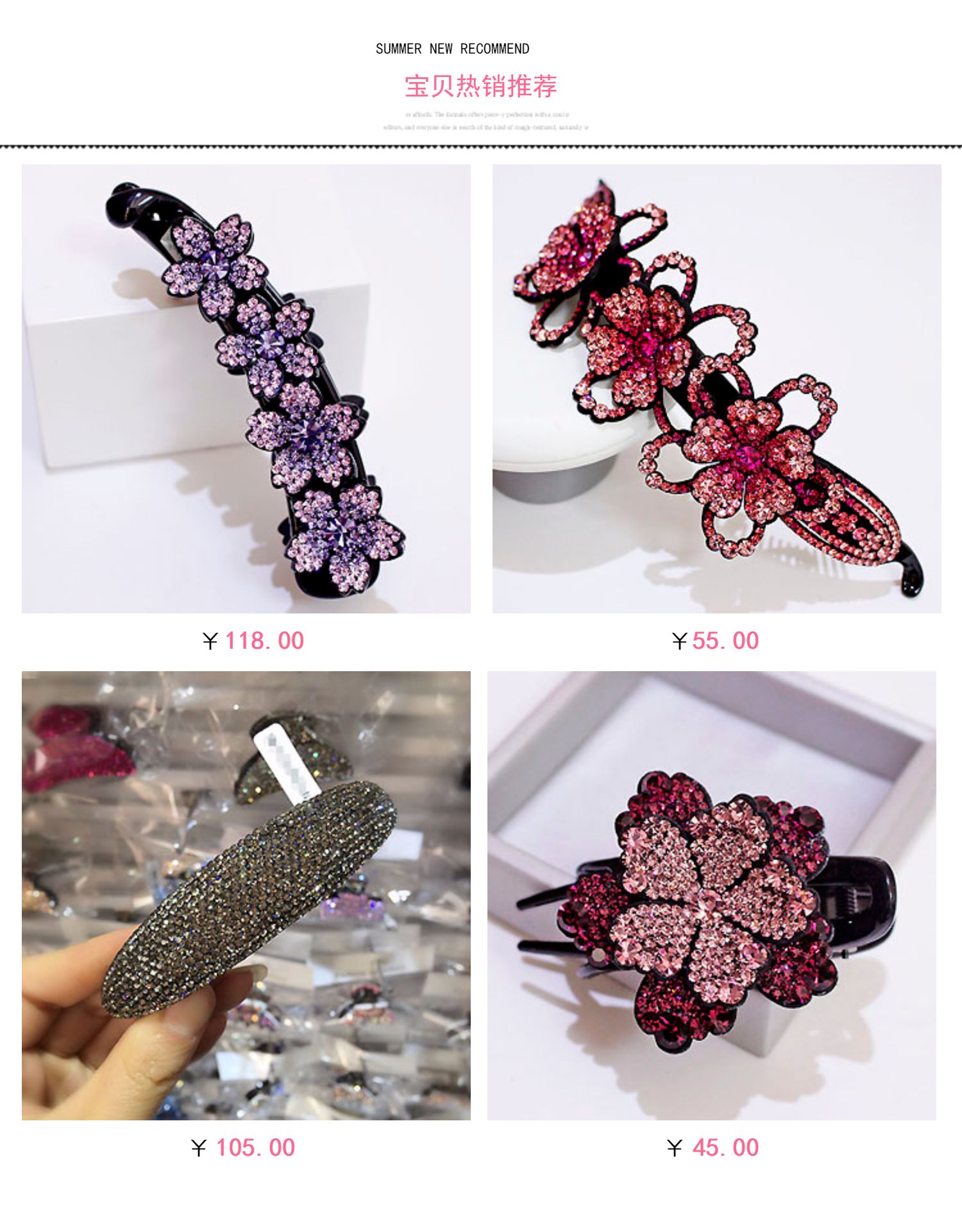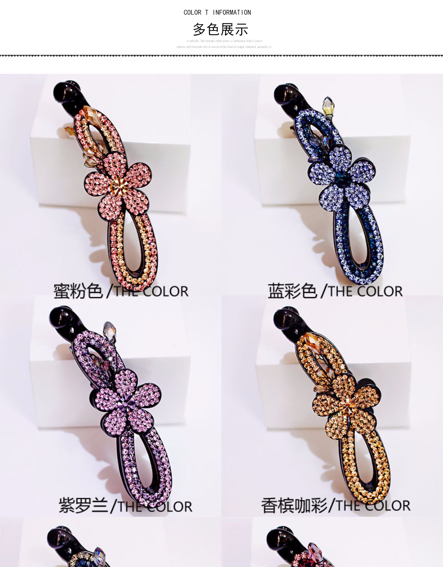 韓國高檔水鉆香蕉夾豎夾馬尾發夾花朵水晶發卡扣夾發飾簡約頭飾品1入