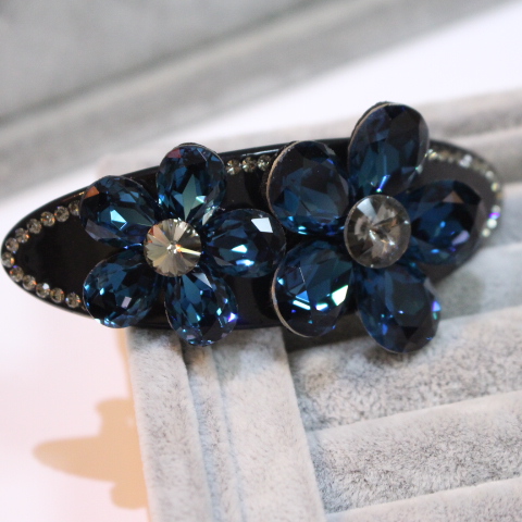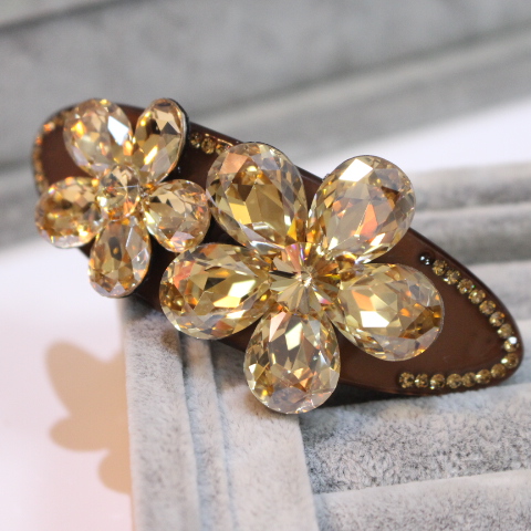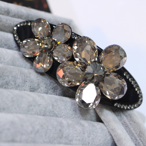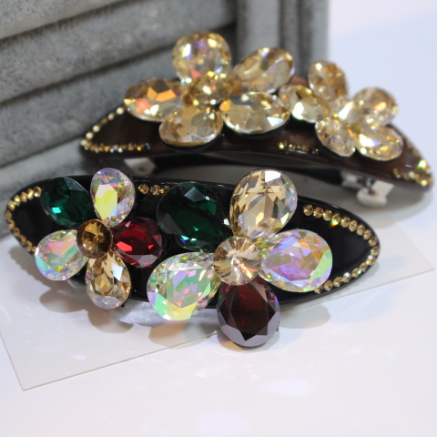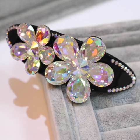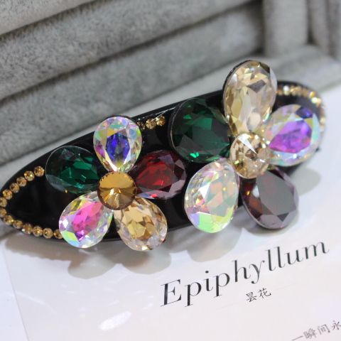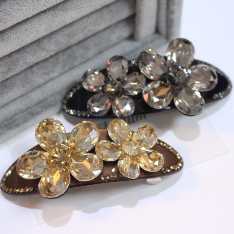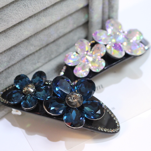 韓國發飾水晶花朵橫夾馬尾彈簧扣夾韓版頂夾水鉆一字夾馬尾扣1入