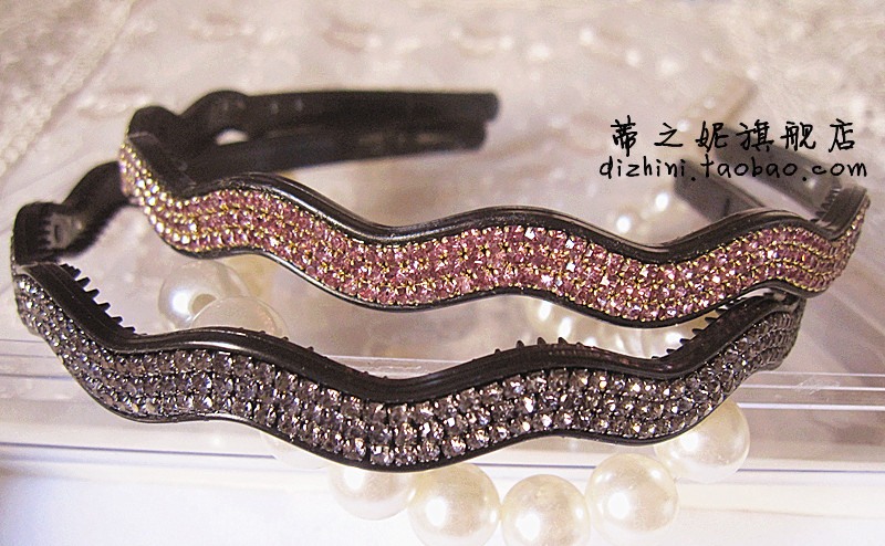 韓版滿鉆彩鉆多色亞克力發箍 三排水鉆直彎發卡正品發飾壓發卡1入