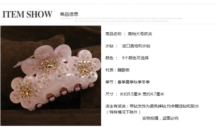 韓國大號發抓馬尾發飾水鉆盤發卡子中號韓版女頭飾品發夾高端抓夾1入