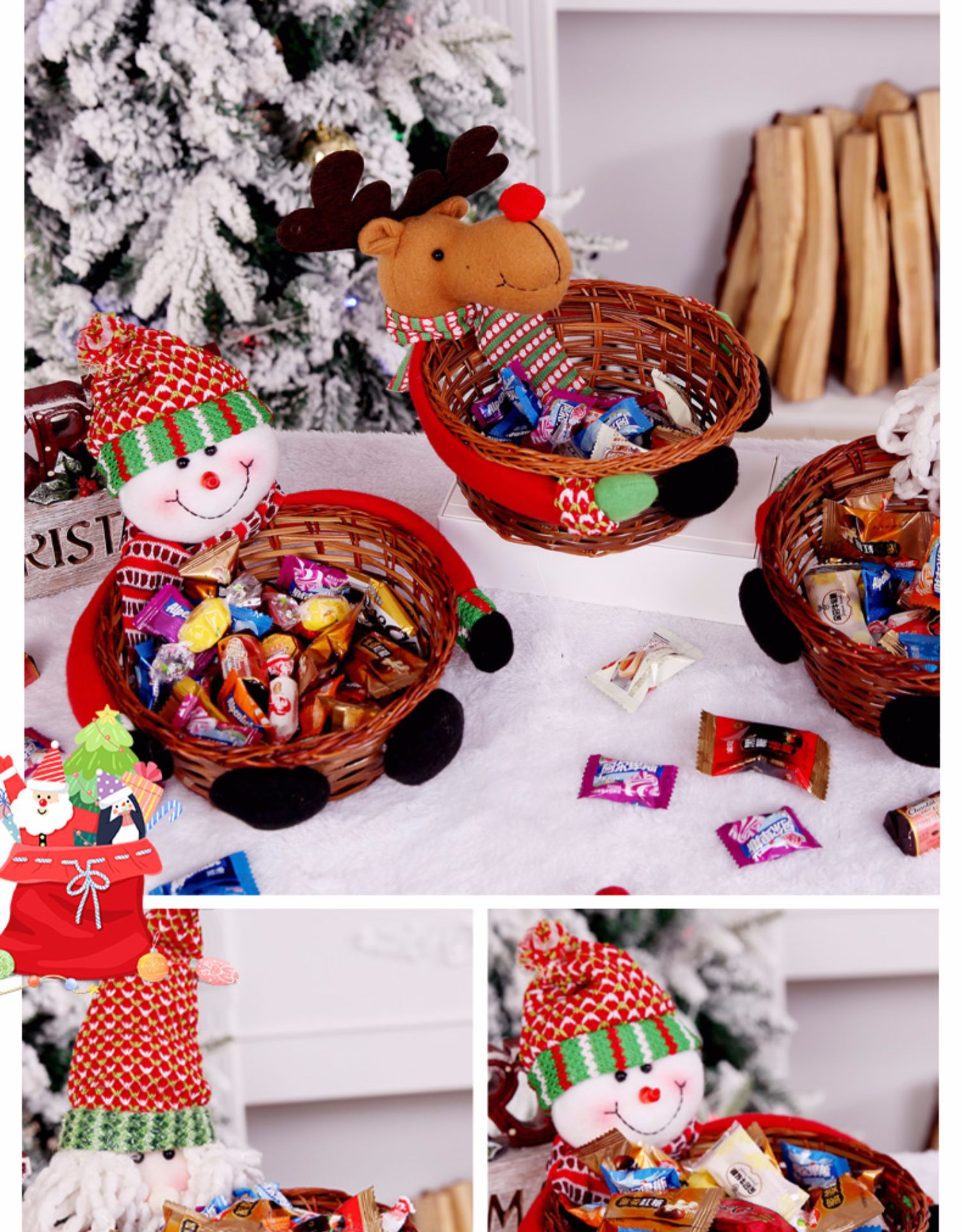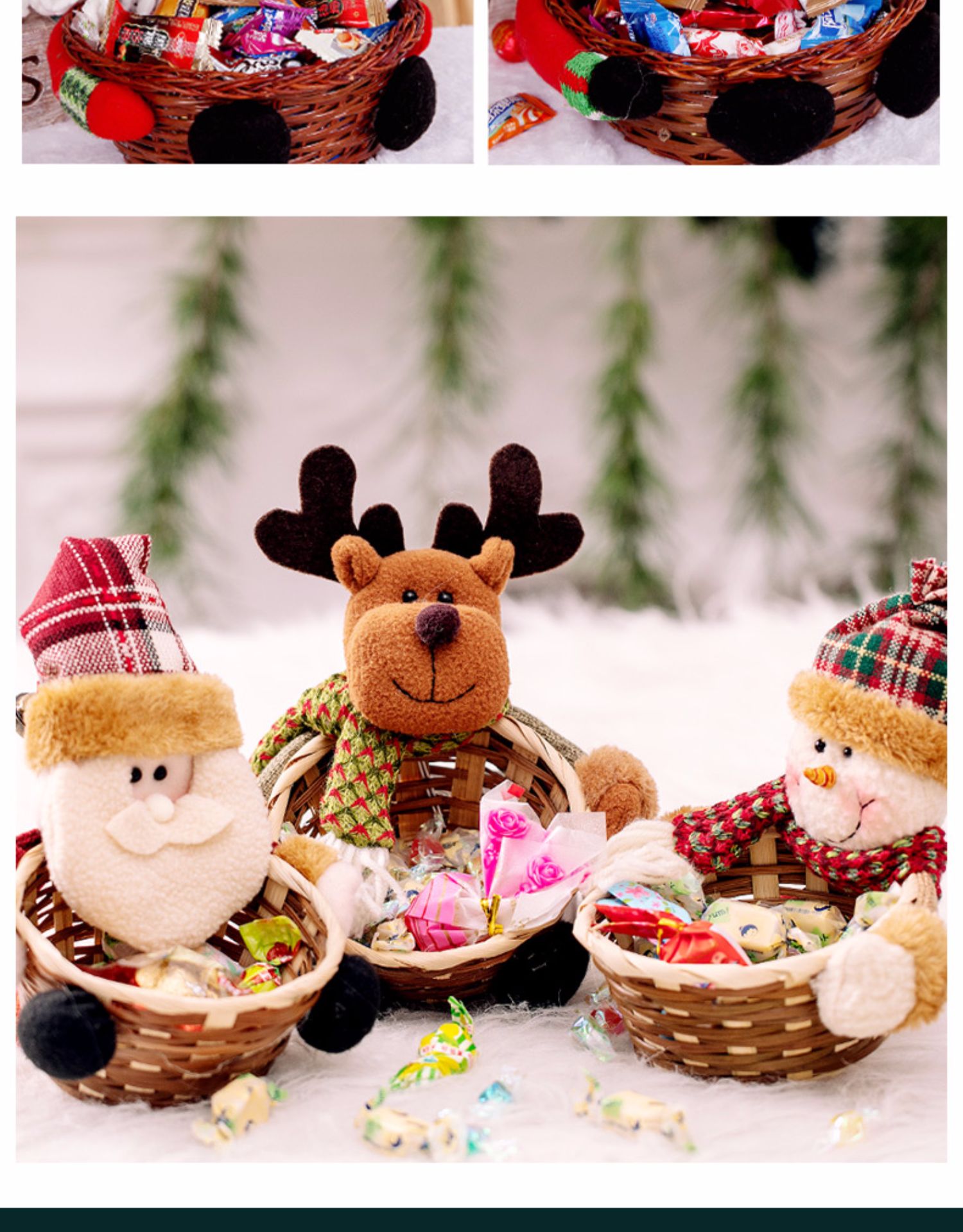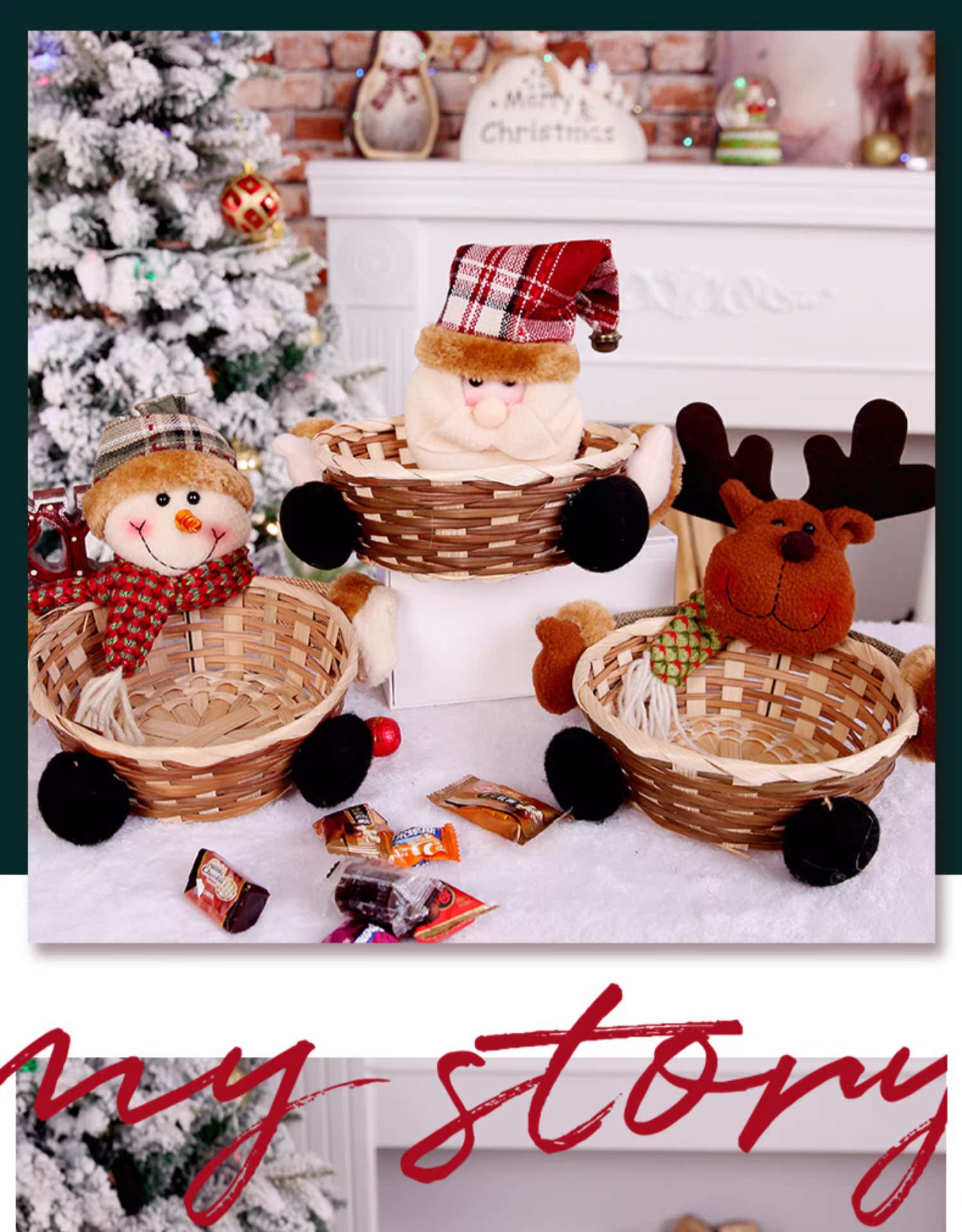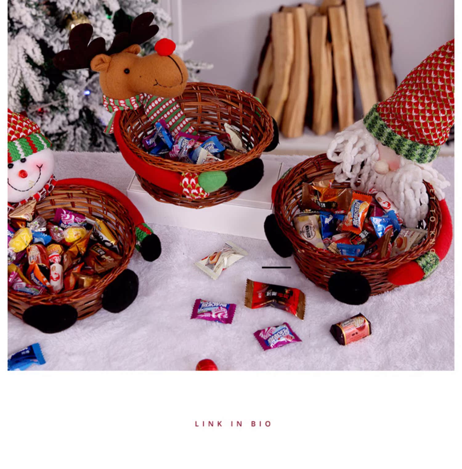 圣誕裝飾品 圣誕糖果筐籃子兒童禮品酒吧商店櫥窗桌面擺件道具裝1入