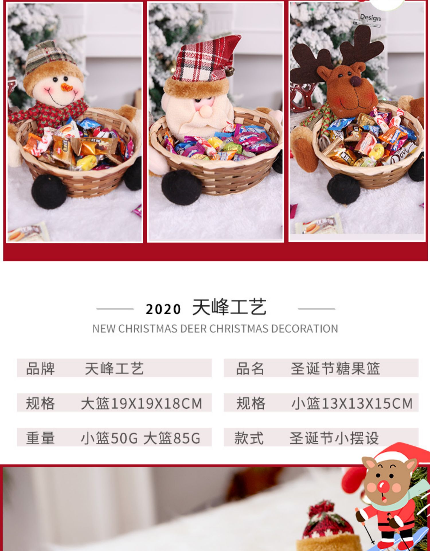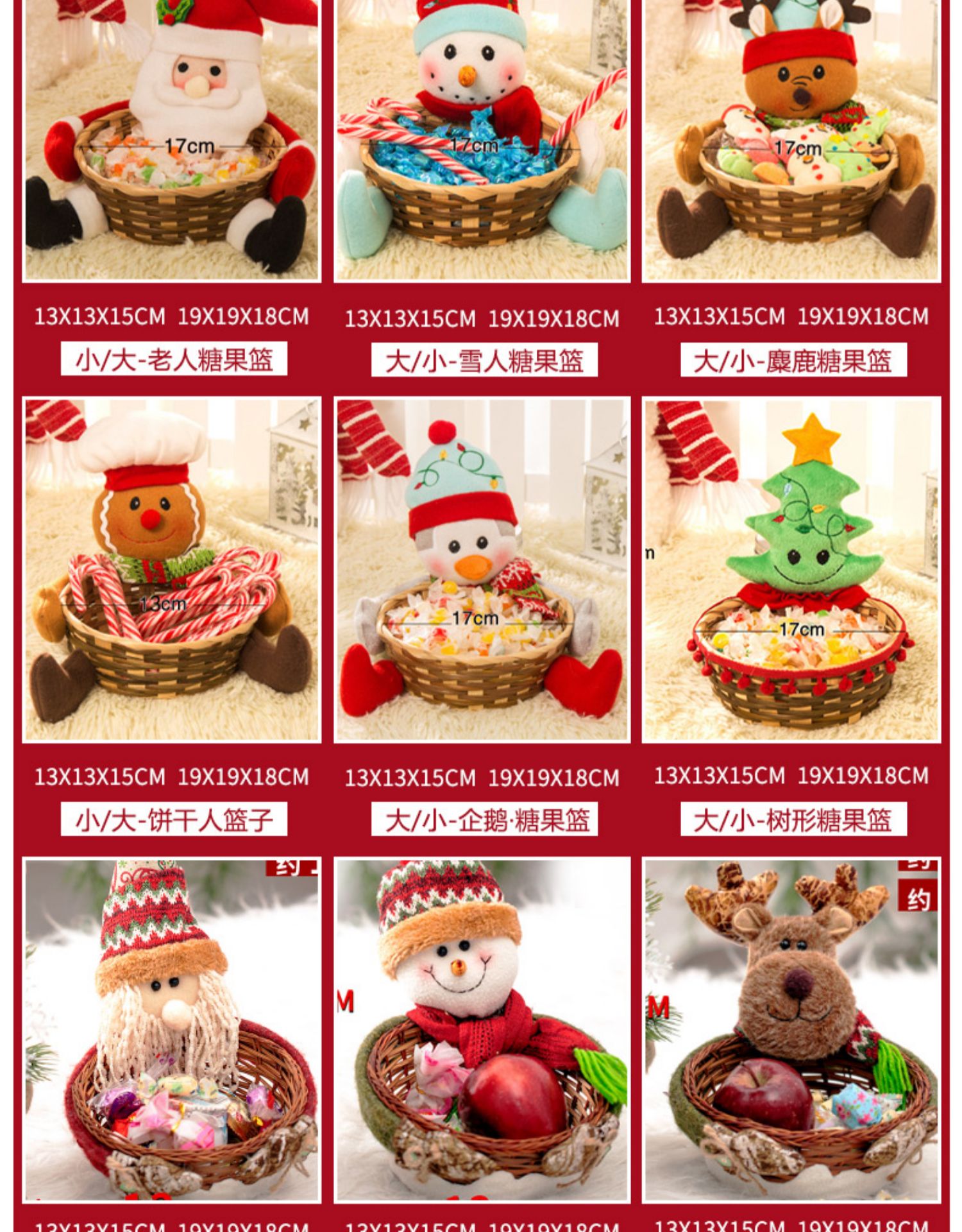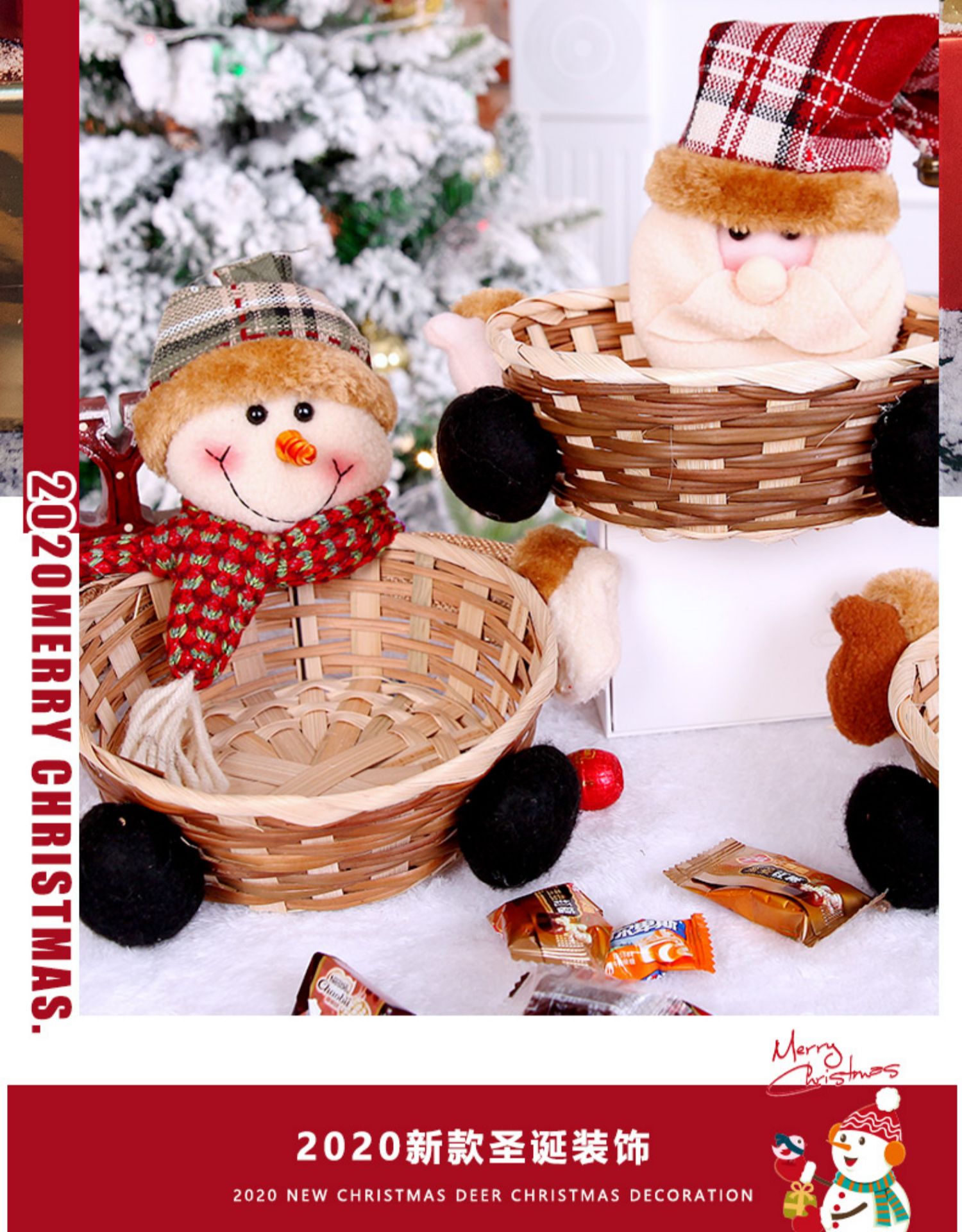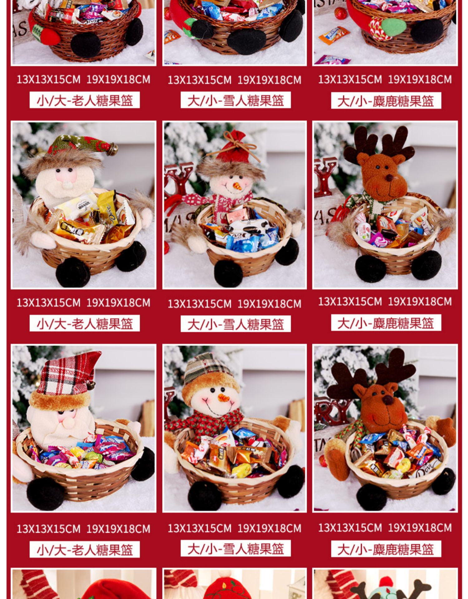 圣誕裝飾品 圣誕糖果筐籃子兒童禮品酒吧商店櫥窗桌面擺件道具裝1入