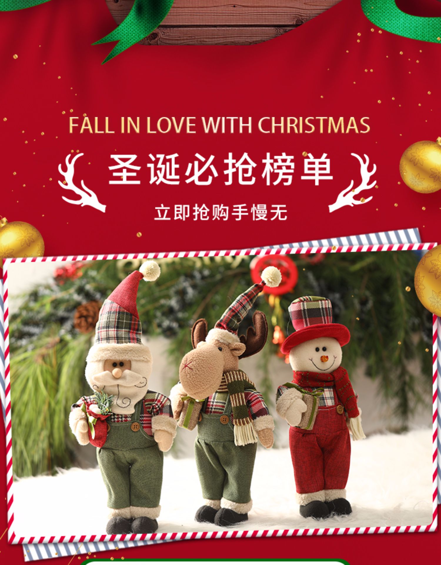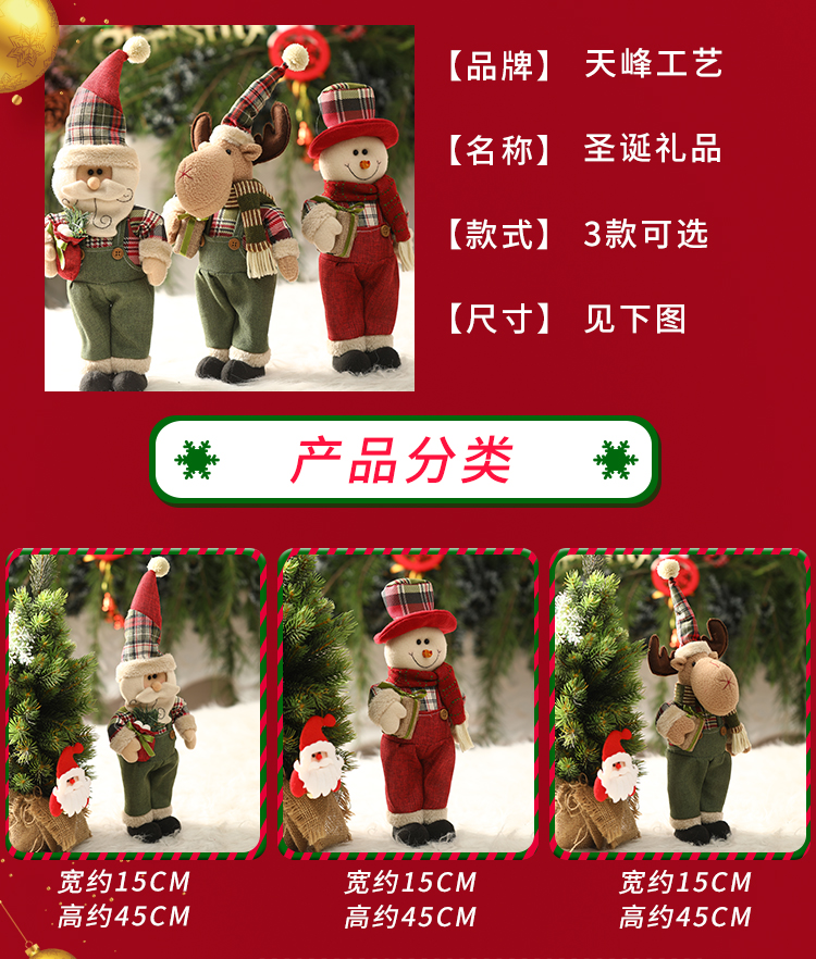 圣誕裝飾圣誕老人雪人麋鹿玩偶公仔圣誕樹周邊擺件兒童圣誕節禮品1入