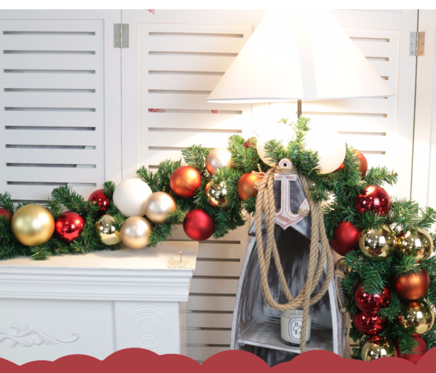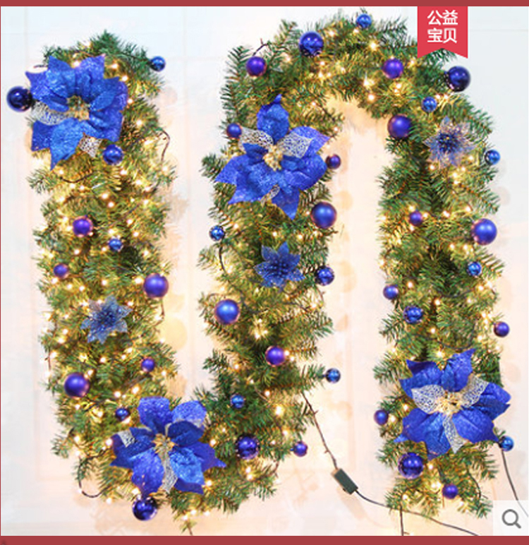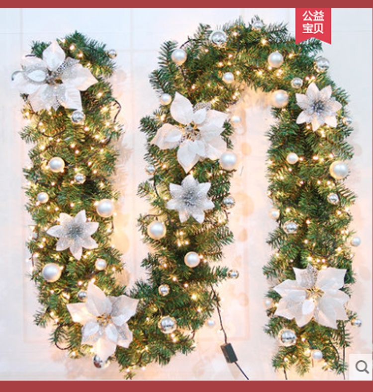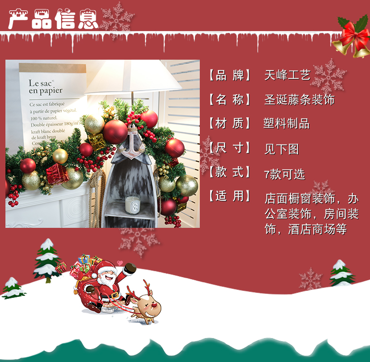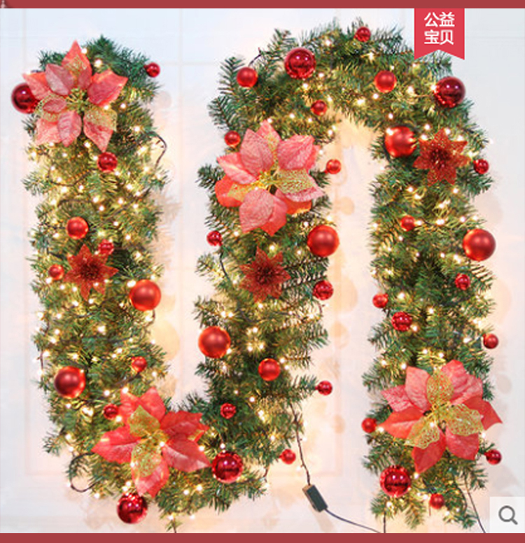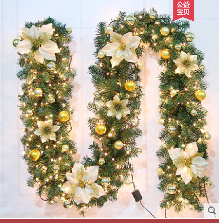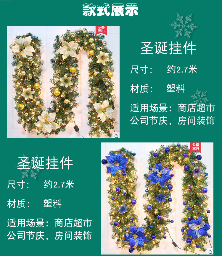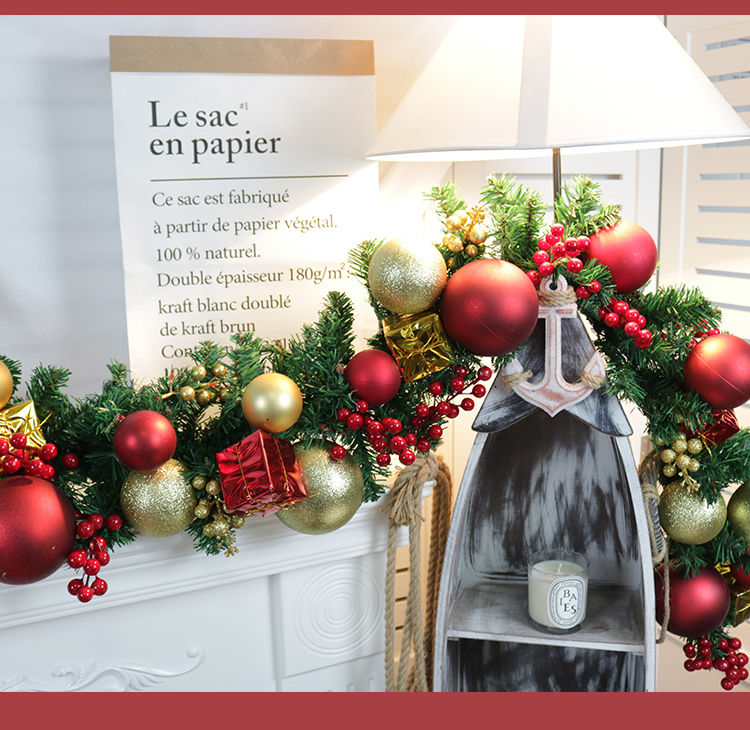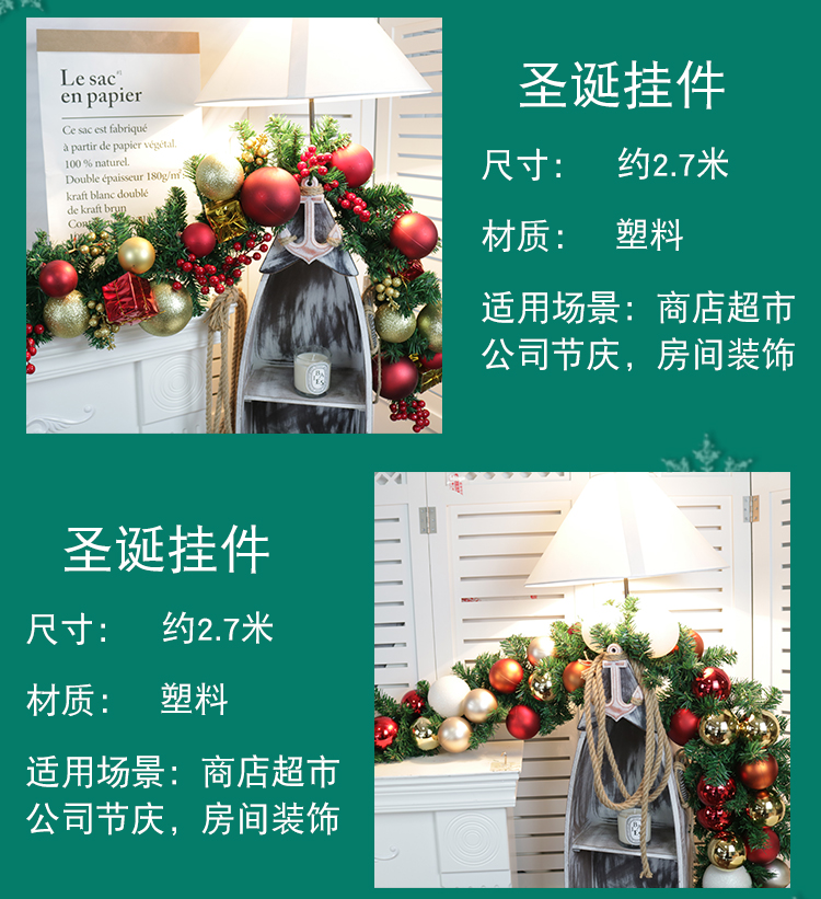 圣誕藤條2.7米加密豪華擺件圣誕樹節裝飾品金紅色花環套餐1入