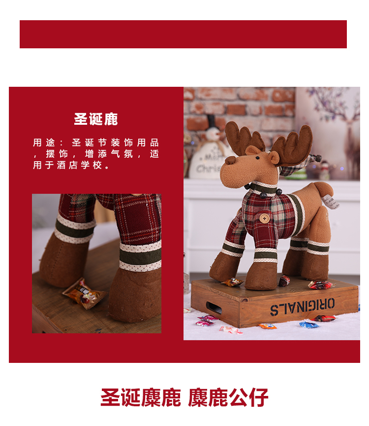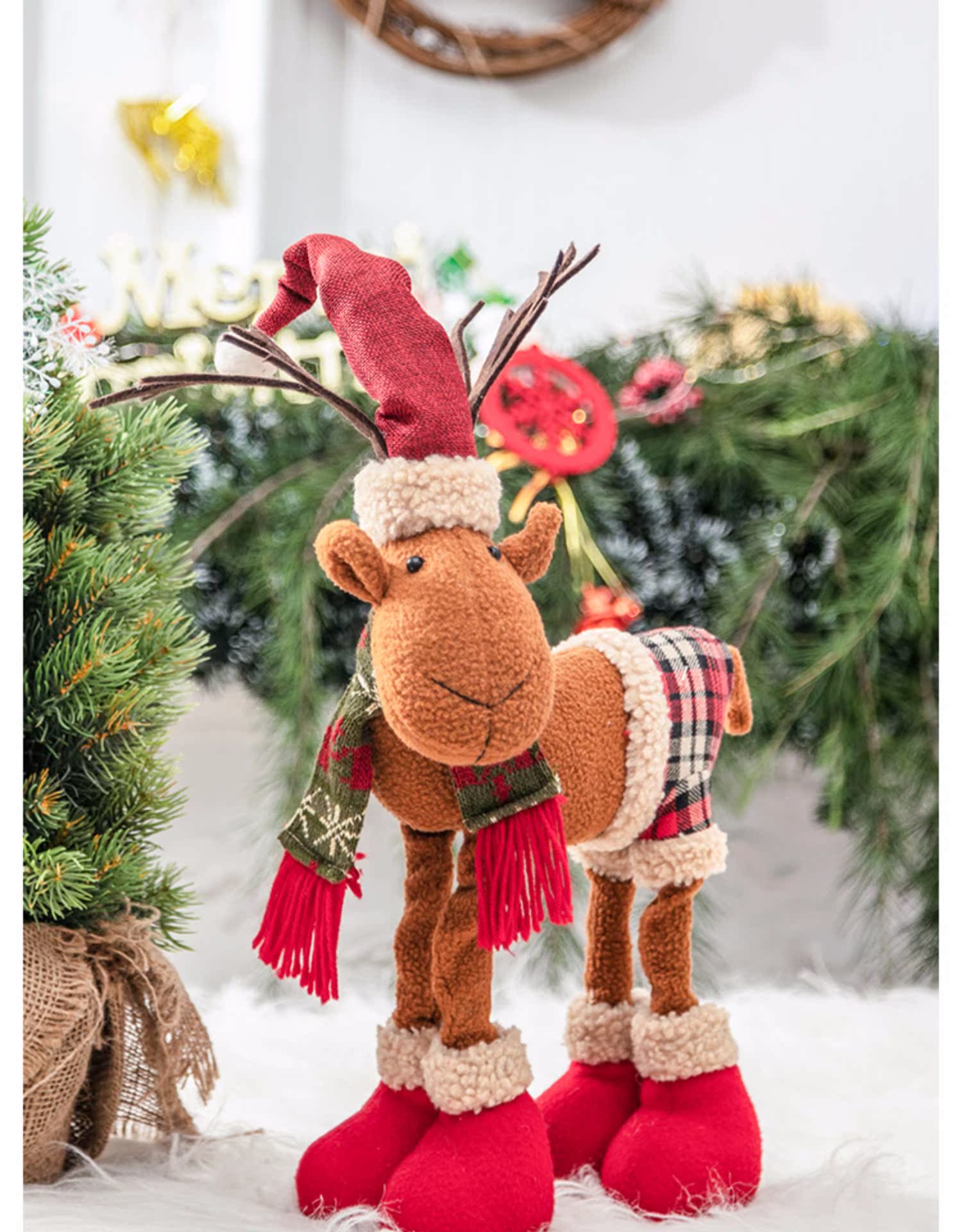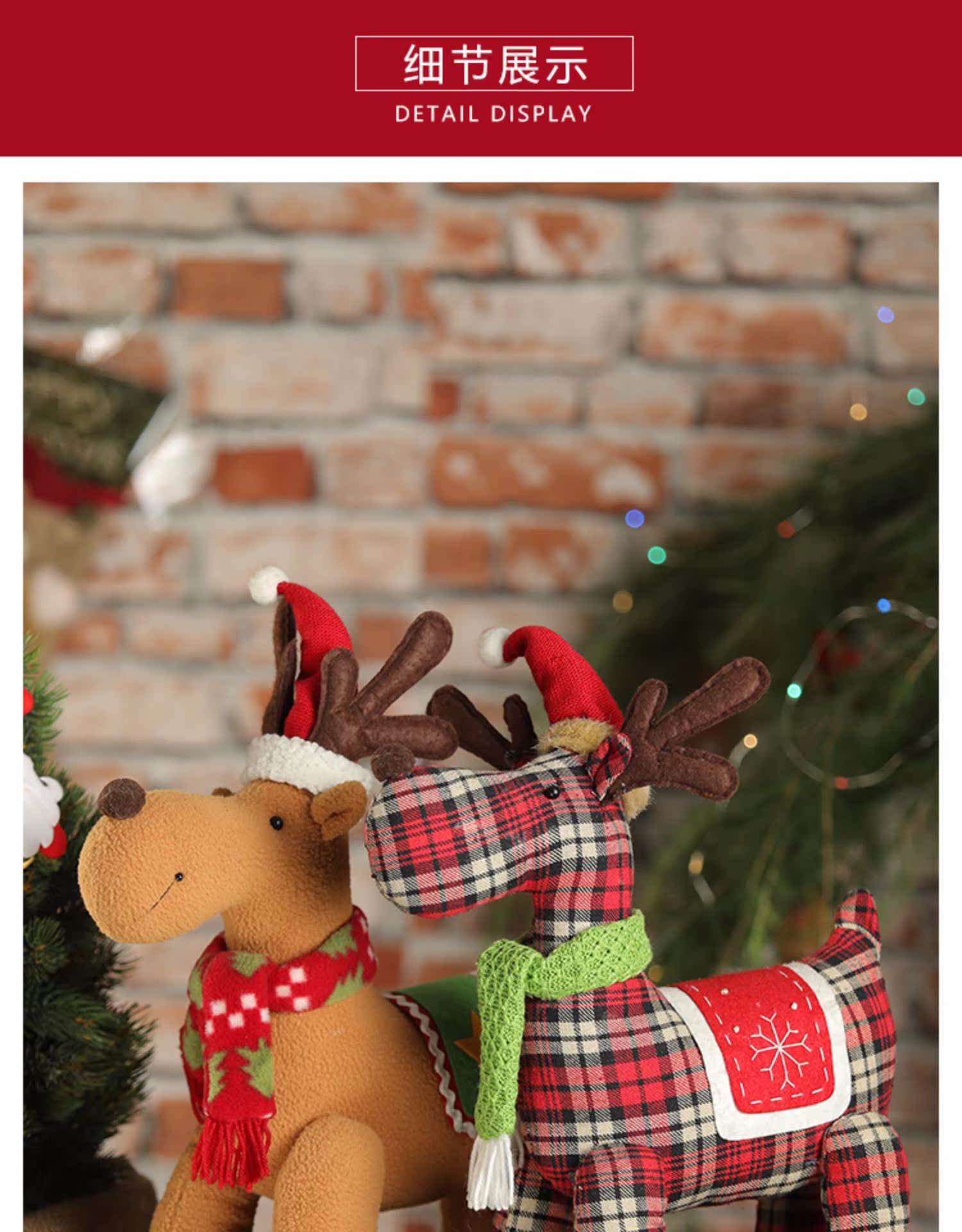 圣誕節布偶滑雪老人雪人圣誕裝飾品鹿公仔桌面裝飾櫥窗商場擺件1入