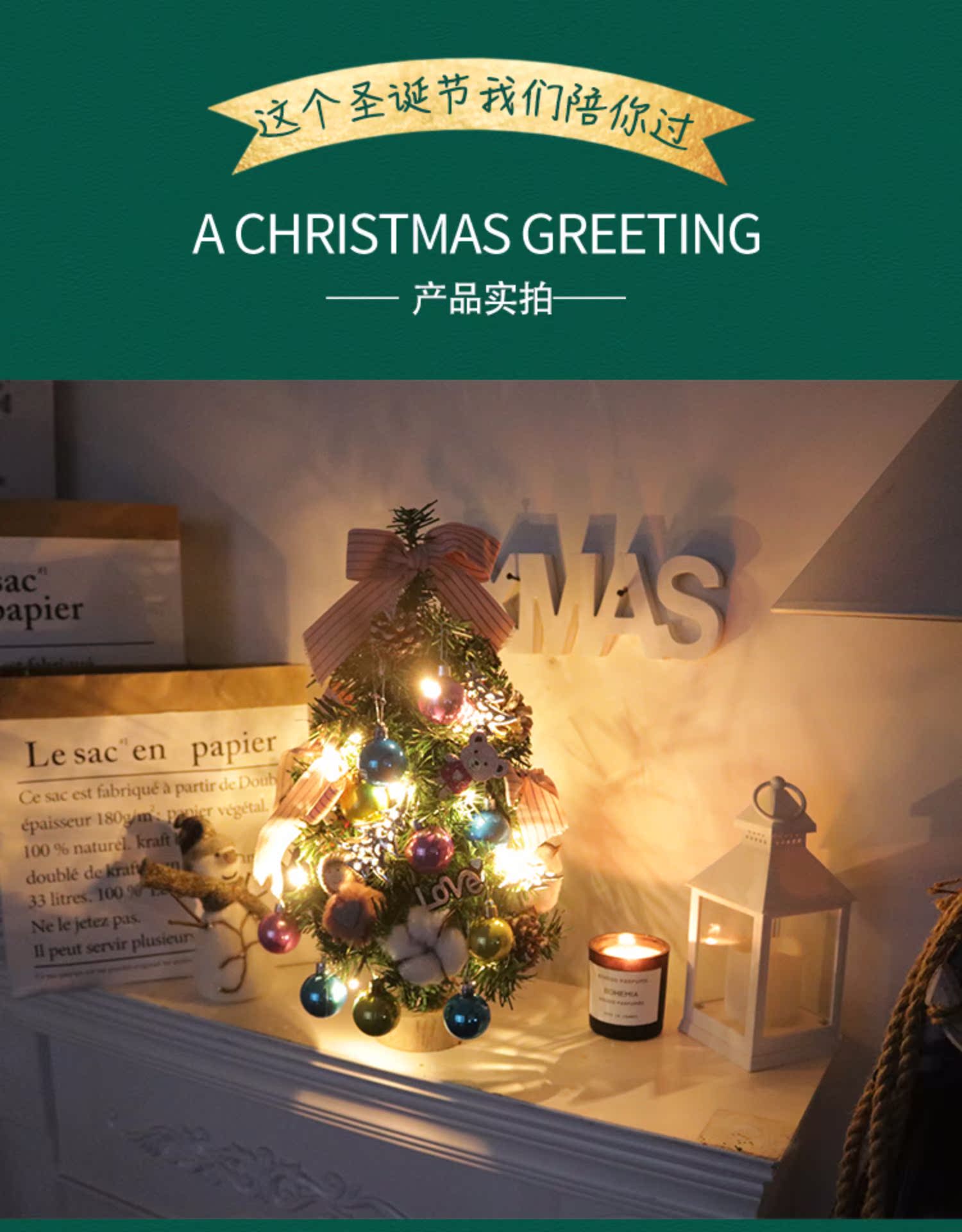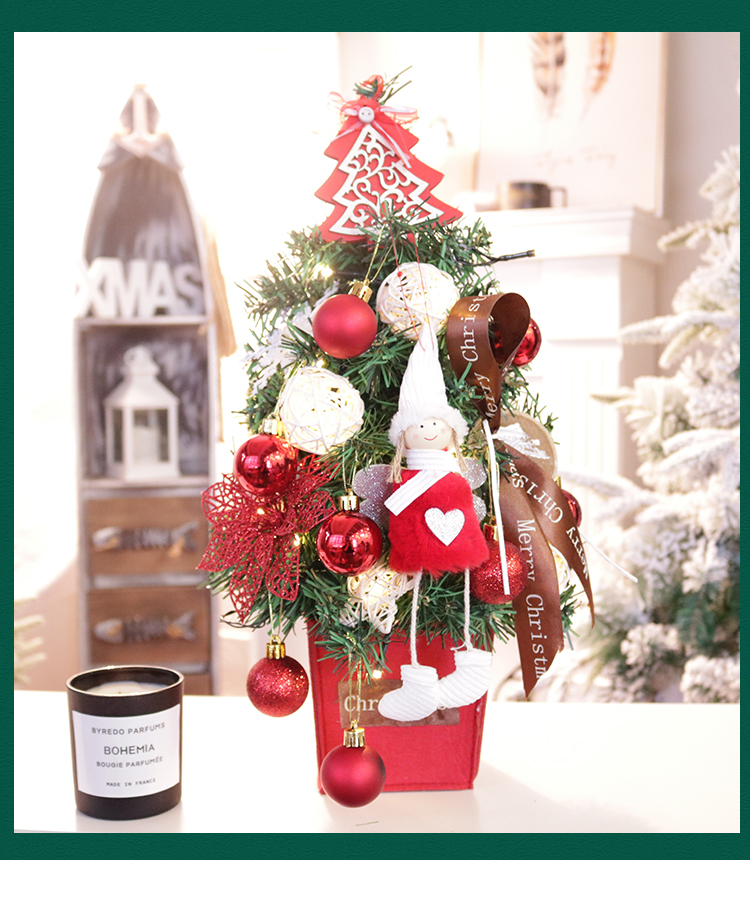 圣誕節小型桌面圣誕樹擺件櫥窗柜臺松針木質迷你圣誕樹裝飾品1入