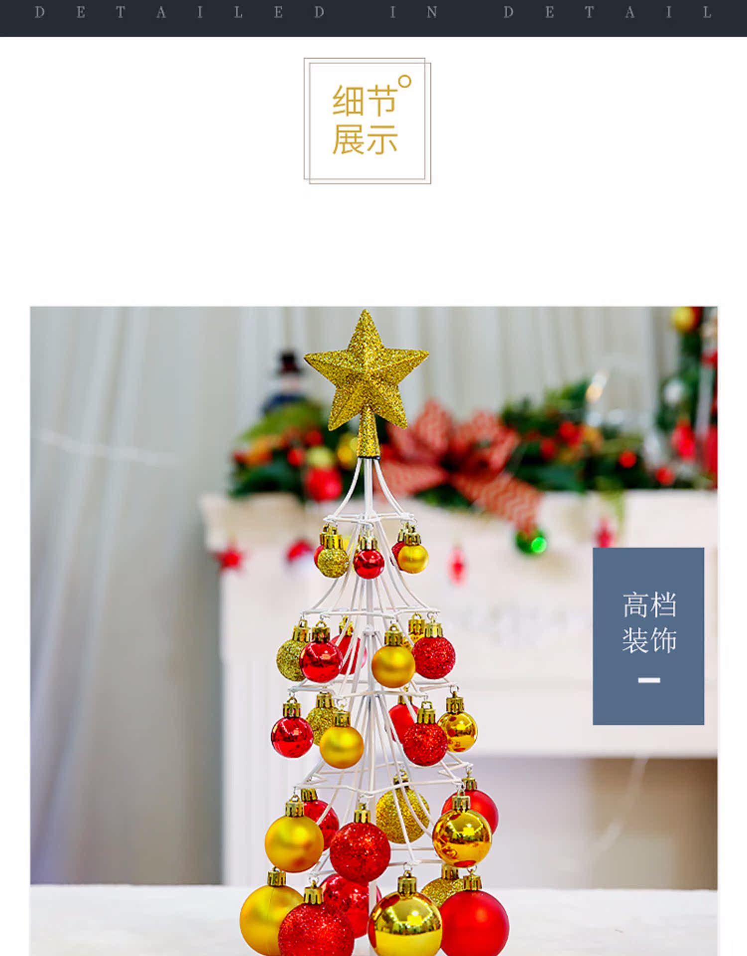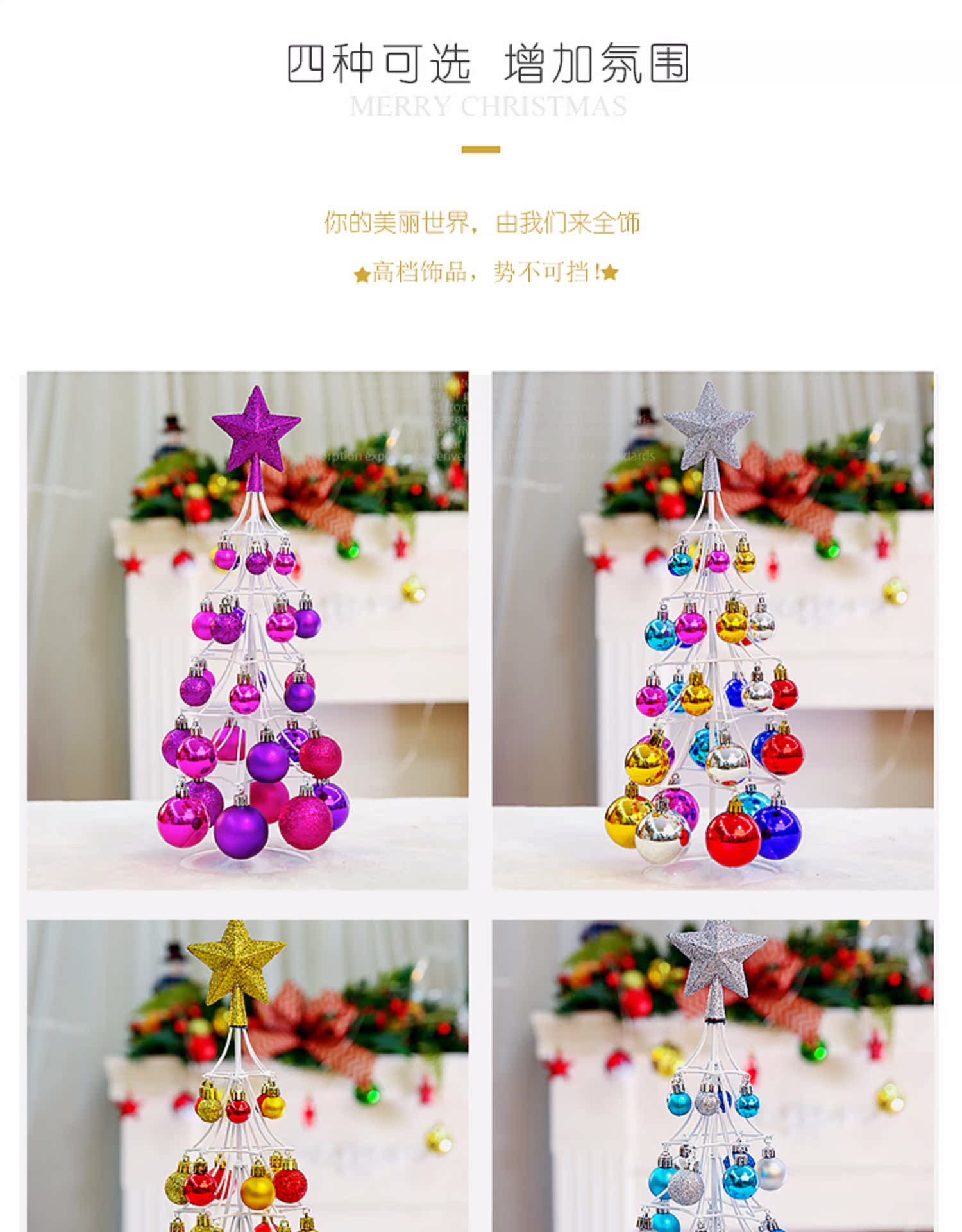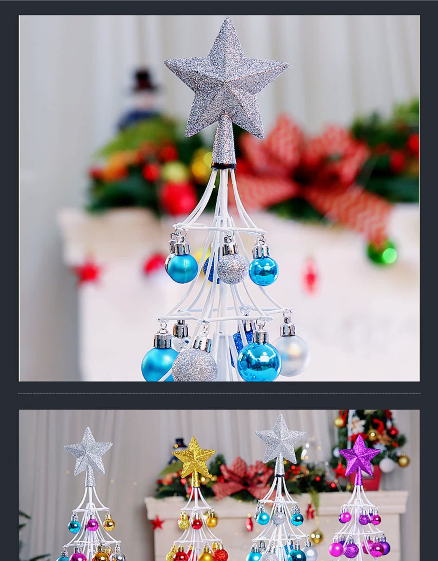 圣誕節裝飾品 桌面迷你圣誕樹鐵藝圣誕球樹 櫥窗道具圣誕裝飾擺件1入