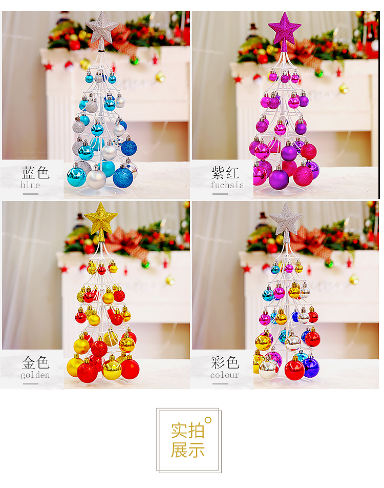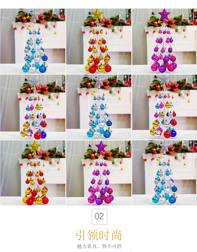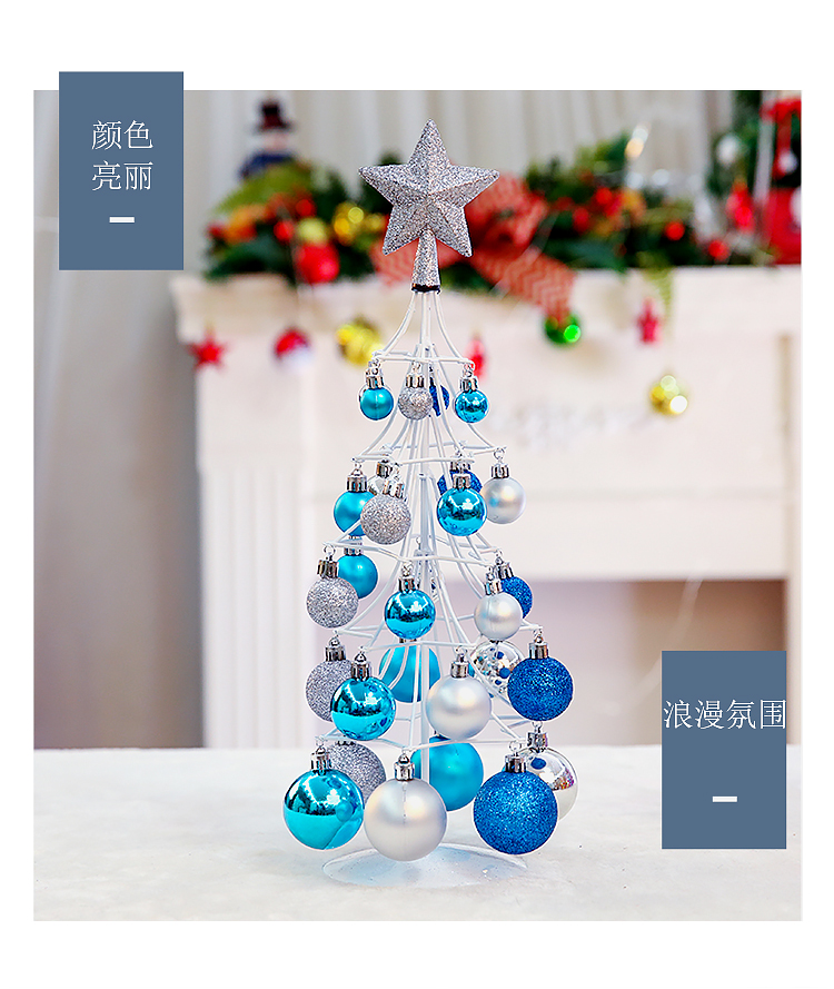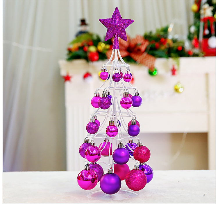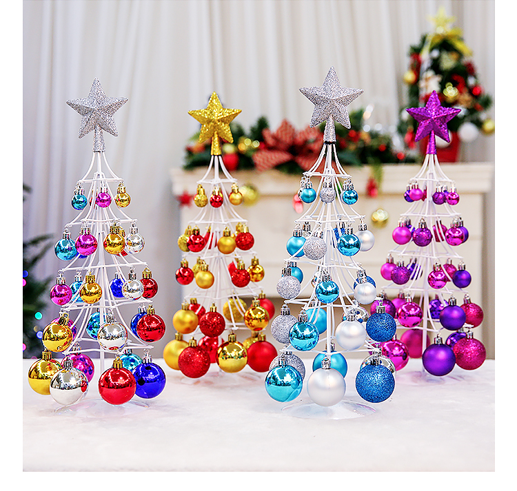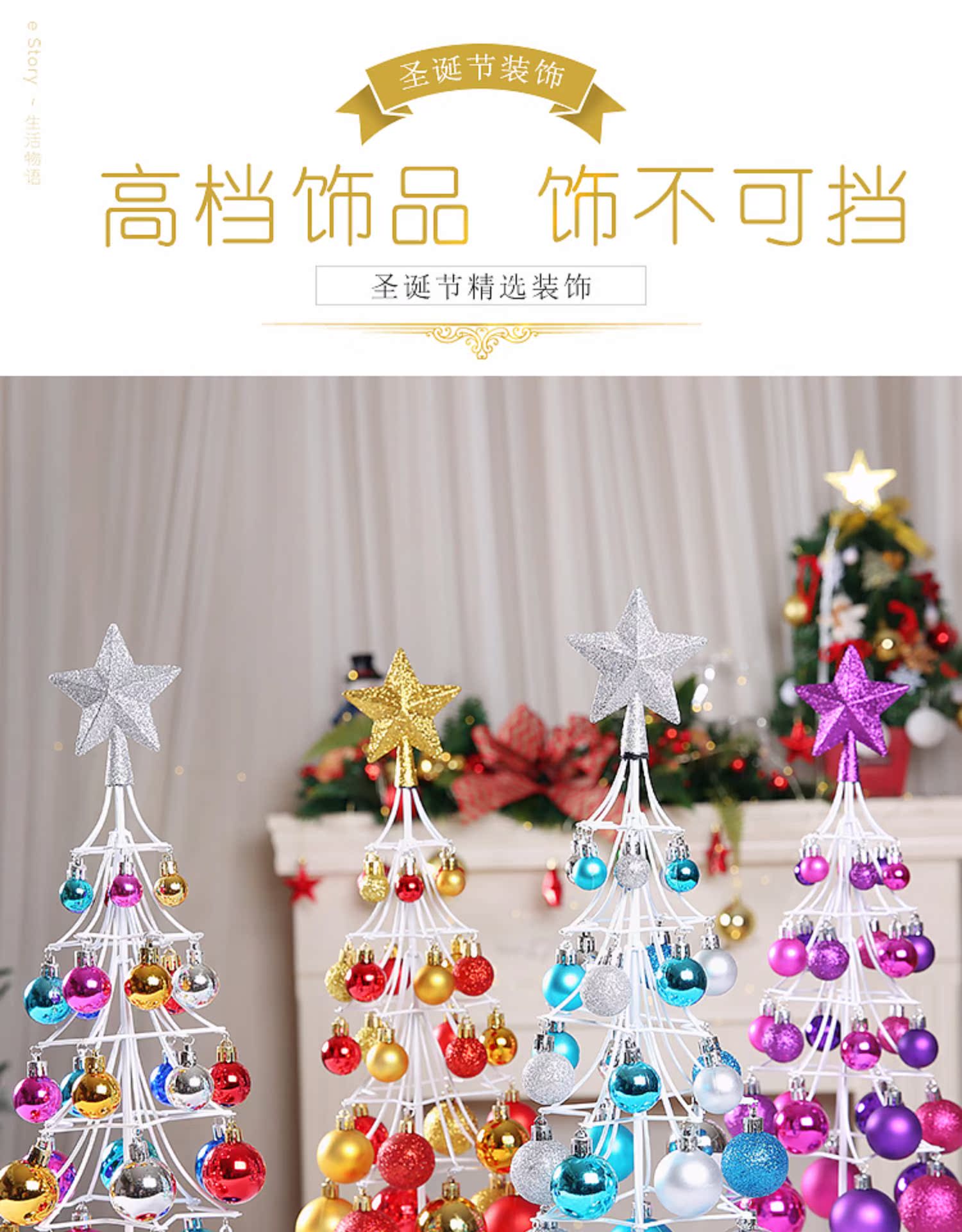 圣誕節裝飾品 桌面迷你圣誕樹鐵藝圣誕球樹 櫥窗道具圣誕裝飾擺件1入