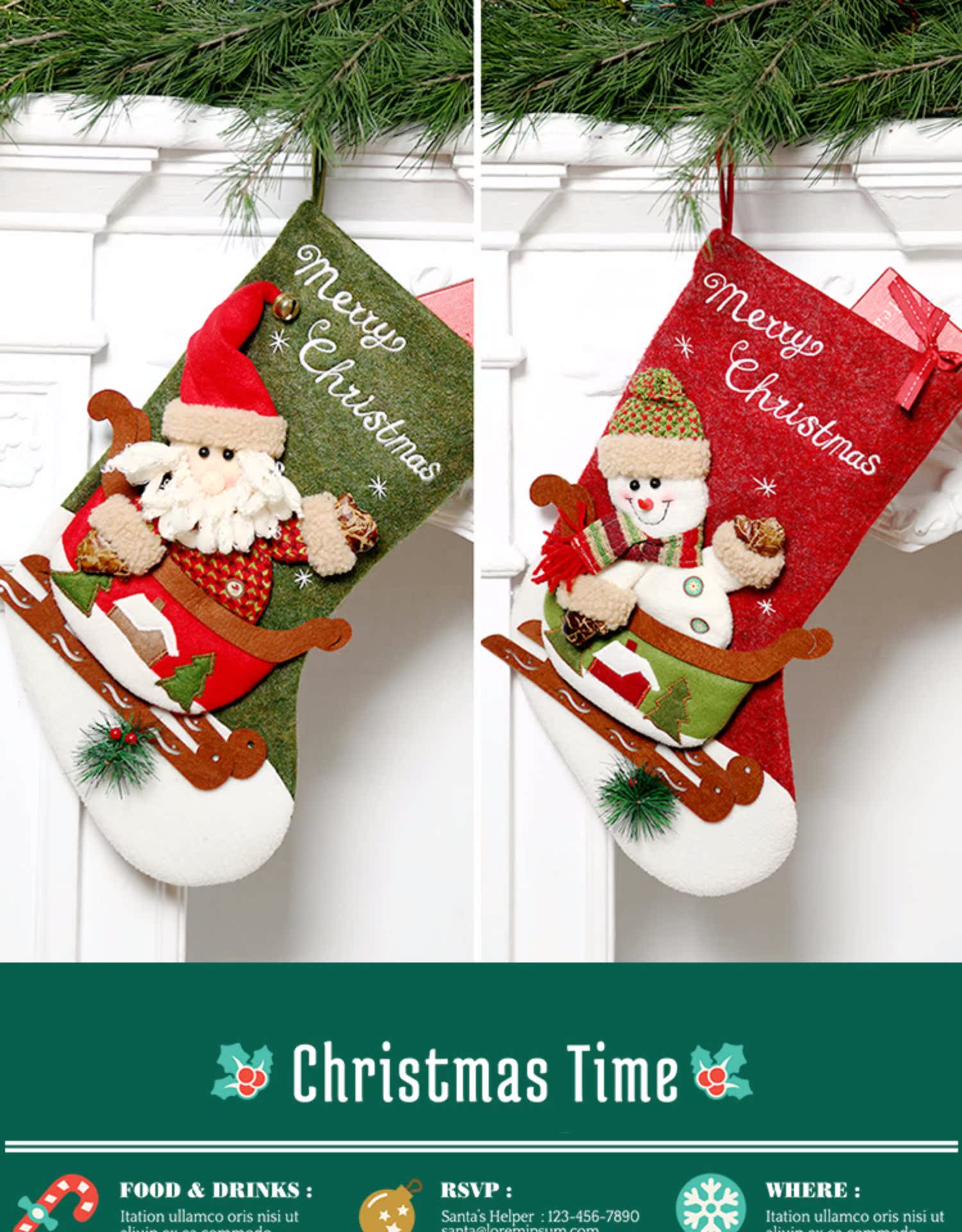 高檔兒童復古大號圣誕襪子禮物袋老人雪人麋鹿個性袋子禮品襪1入