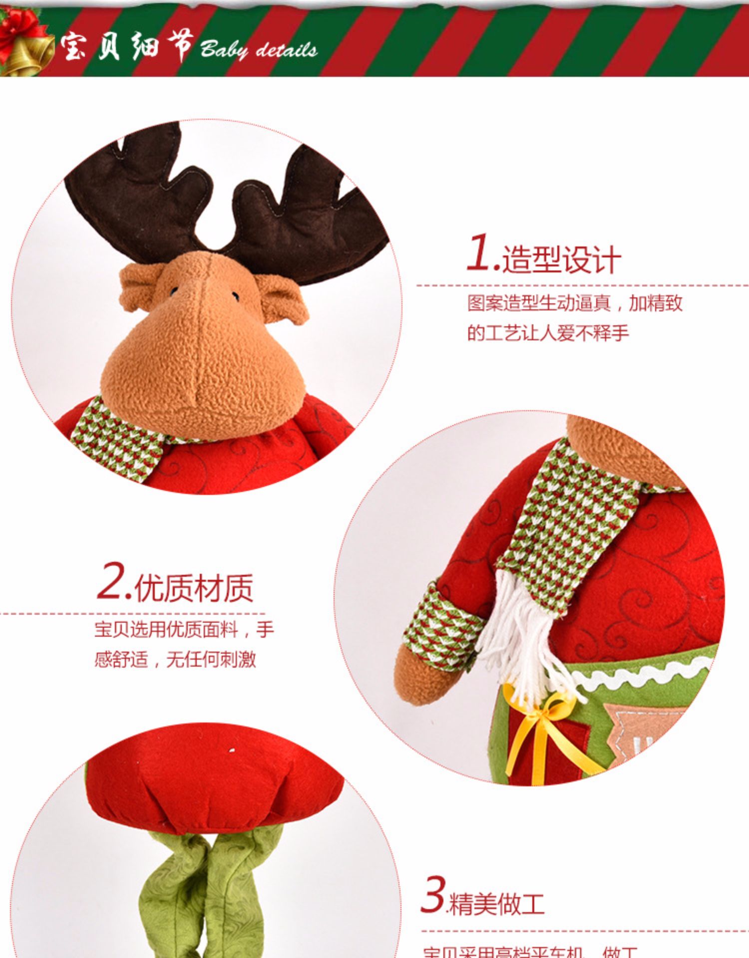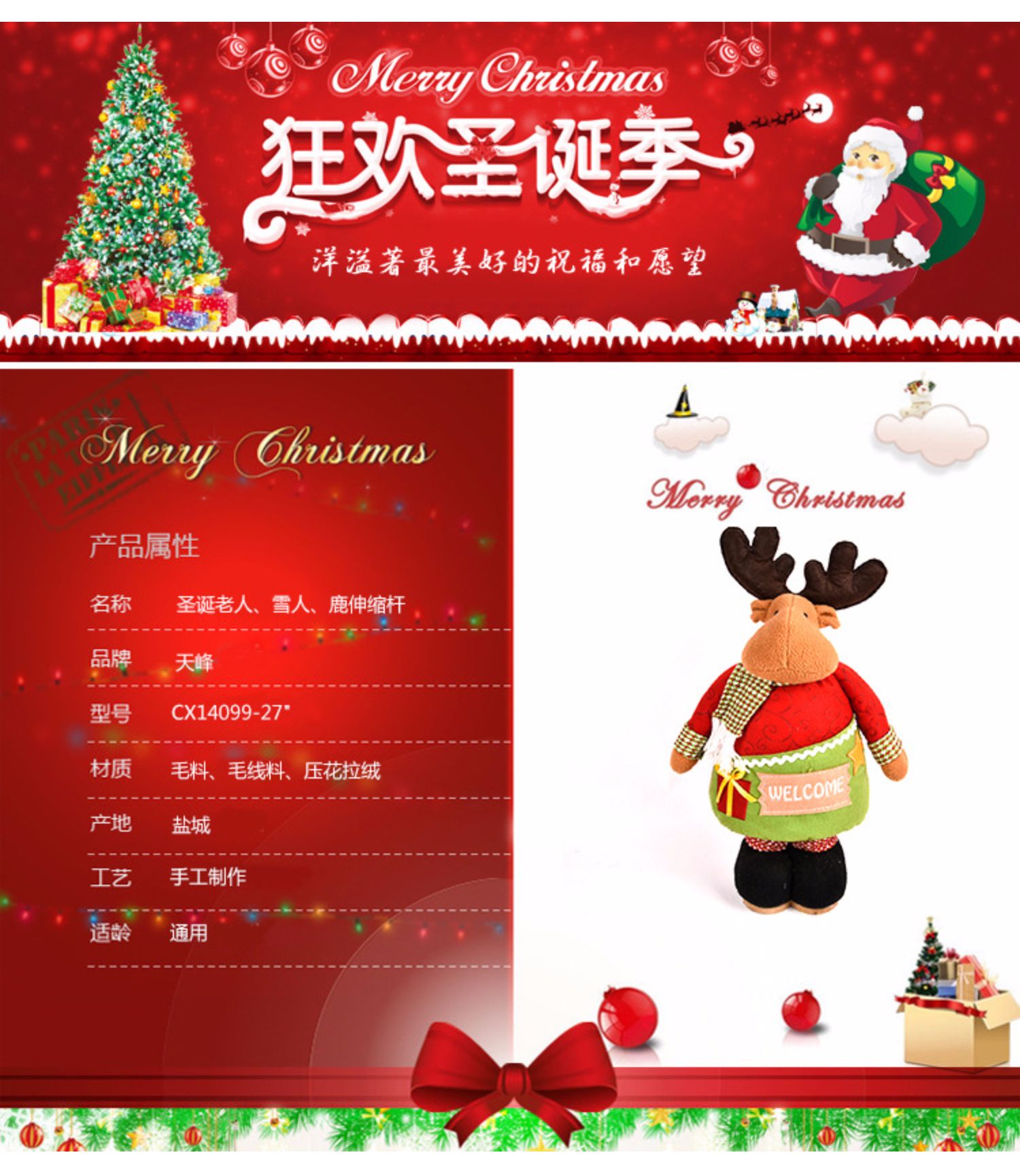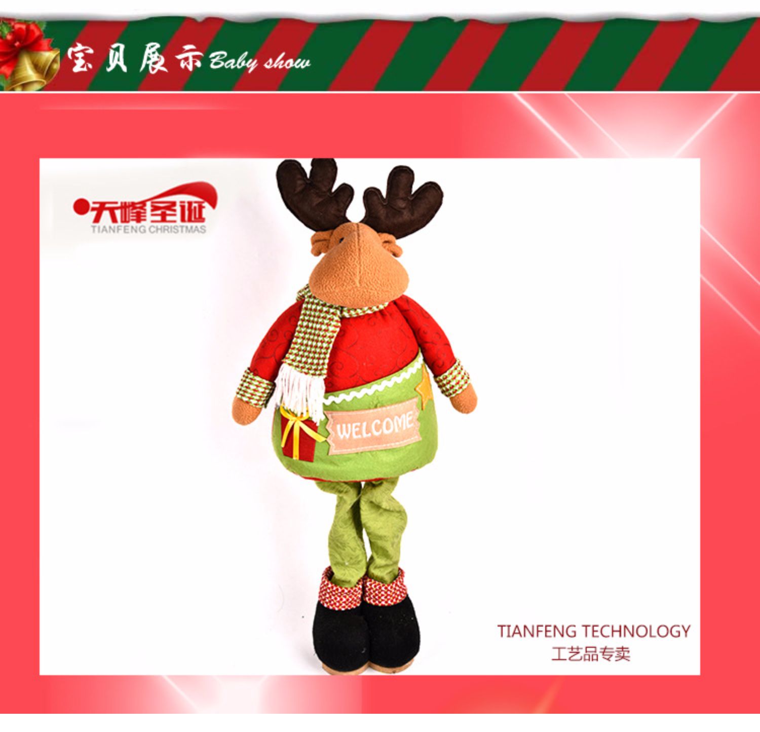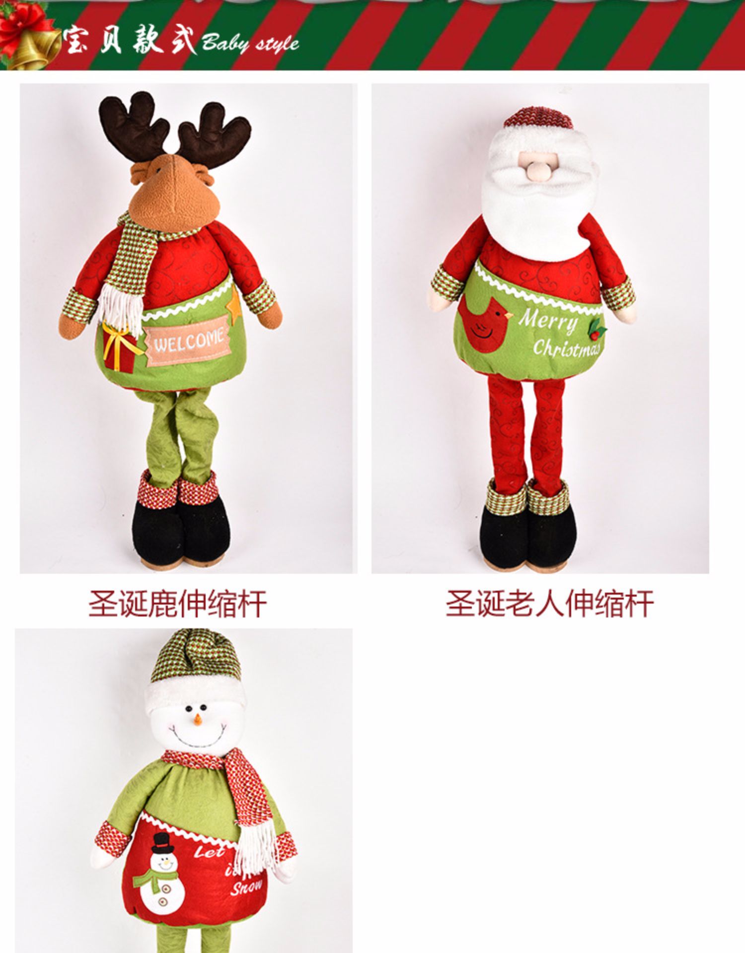 圣誕節圣誕老人雪人鹿伸縮桿圣誕禮物創意擺件1入