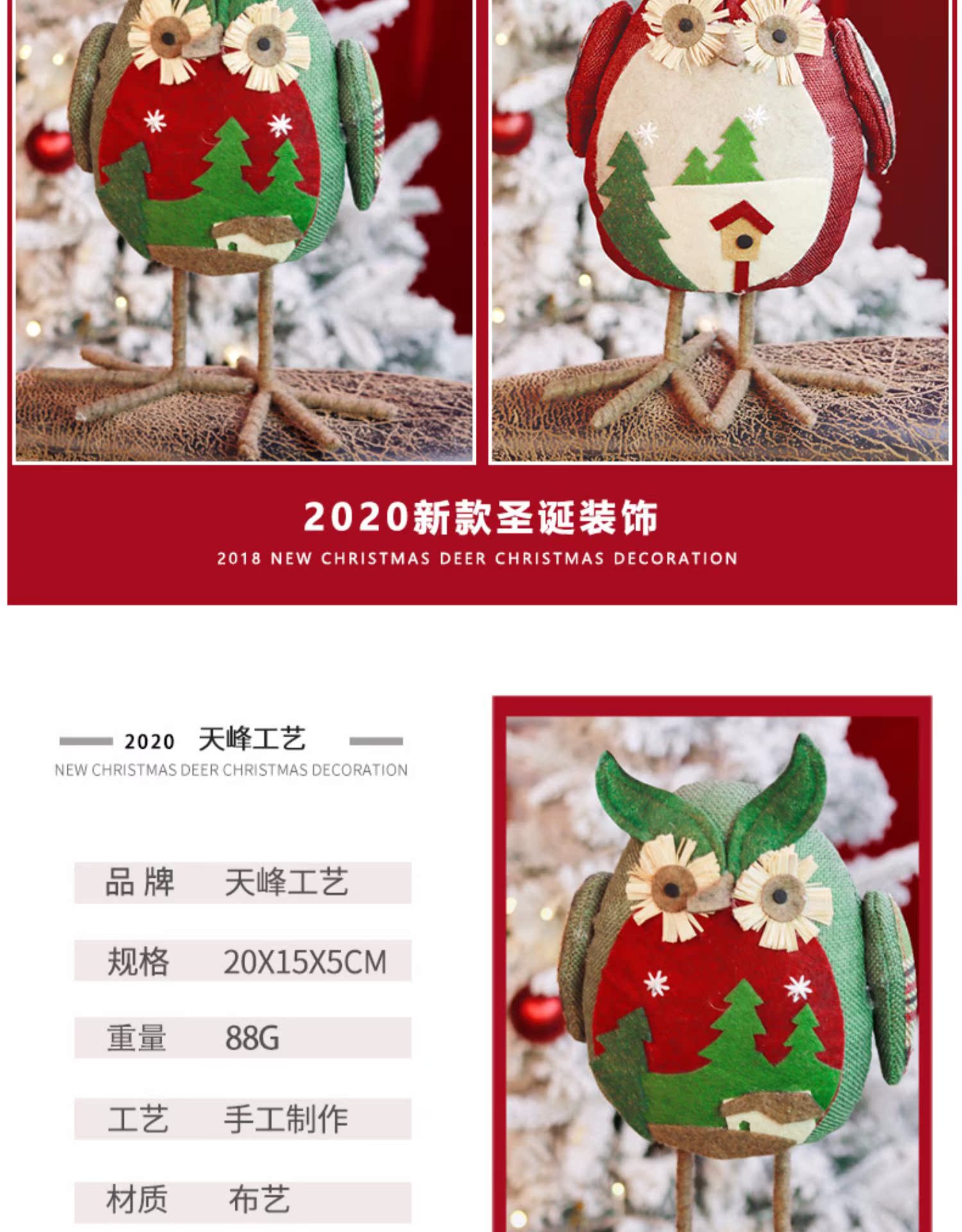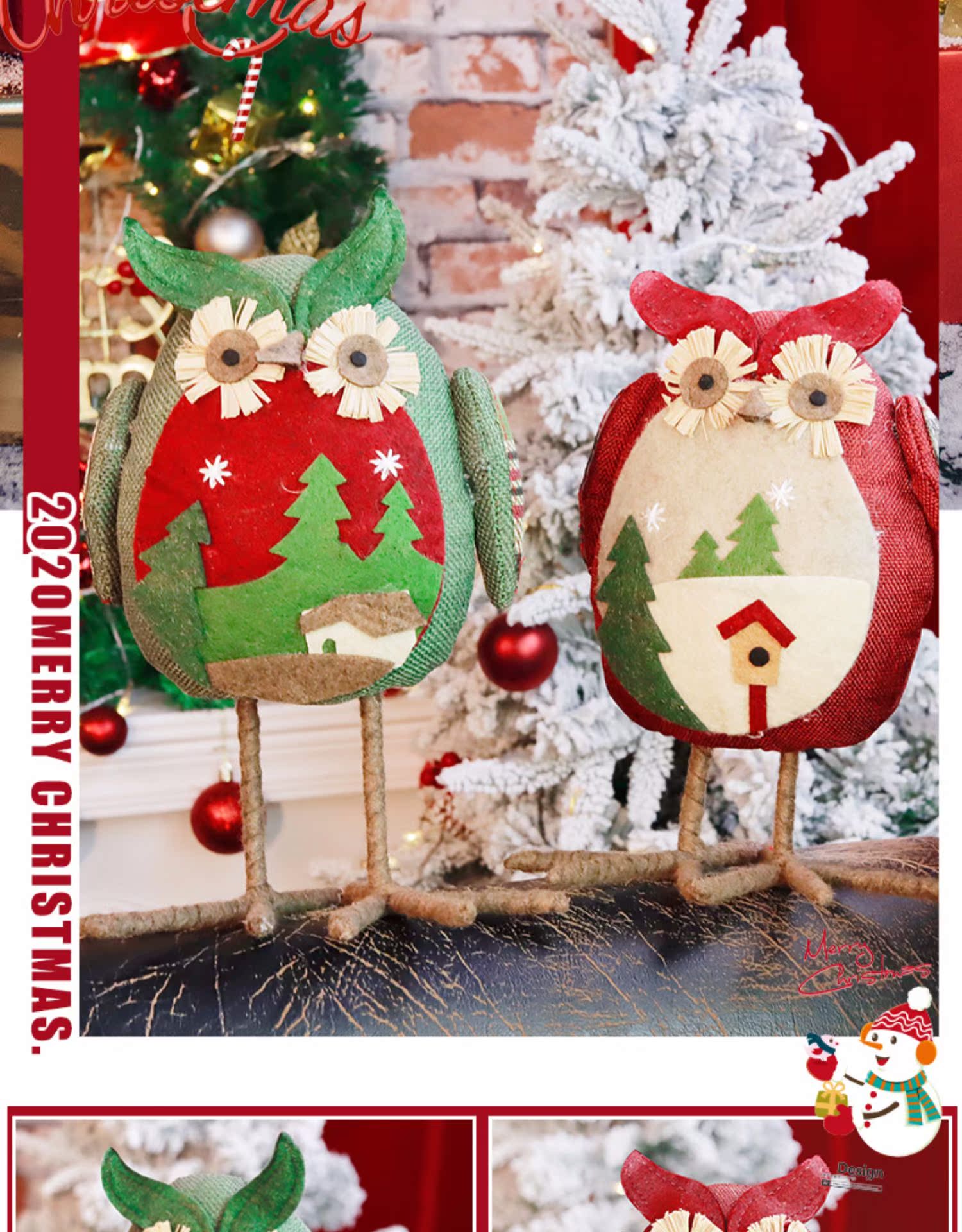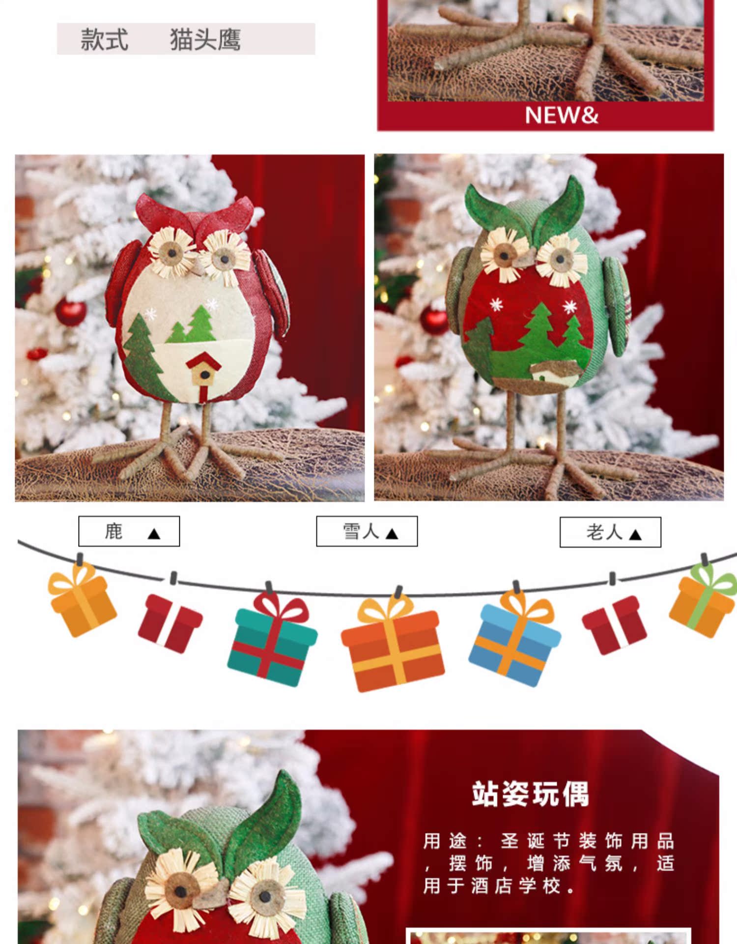 圣誕裝飾禮品貓頭鷹玩偶公仔圣誕樹周邊擺件兒童圣誕節裝飾擺件用1入