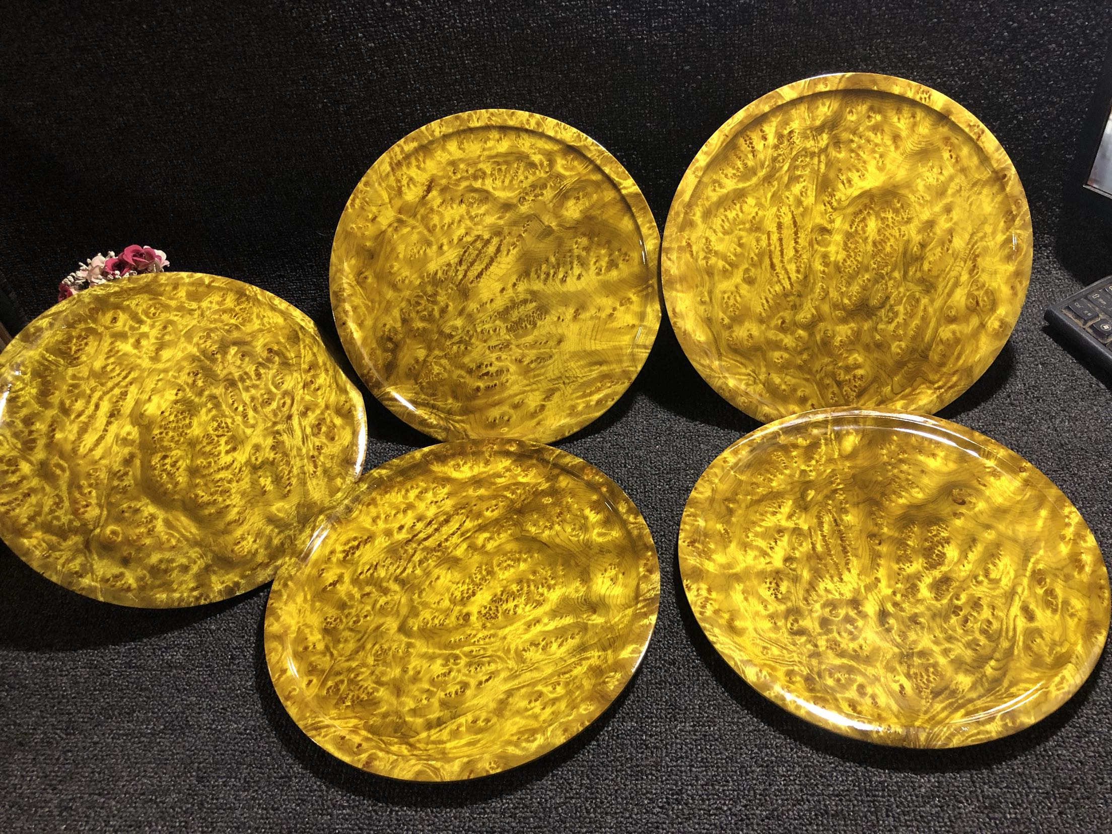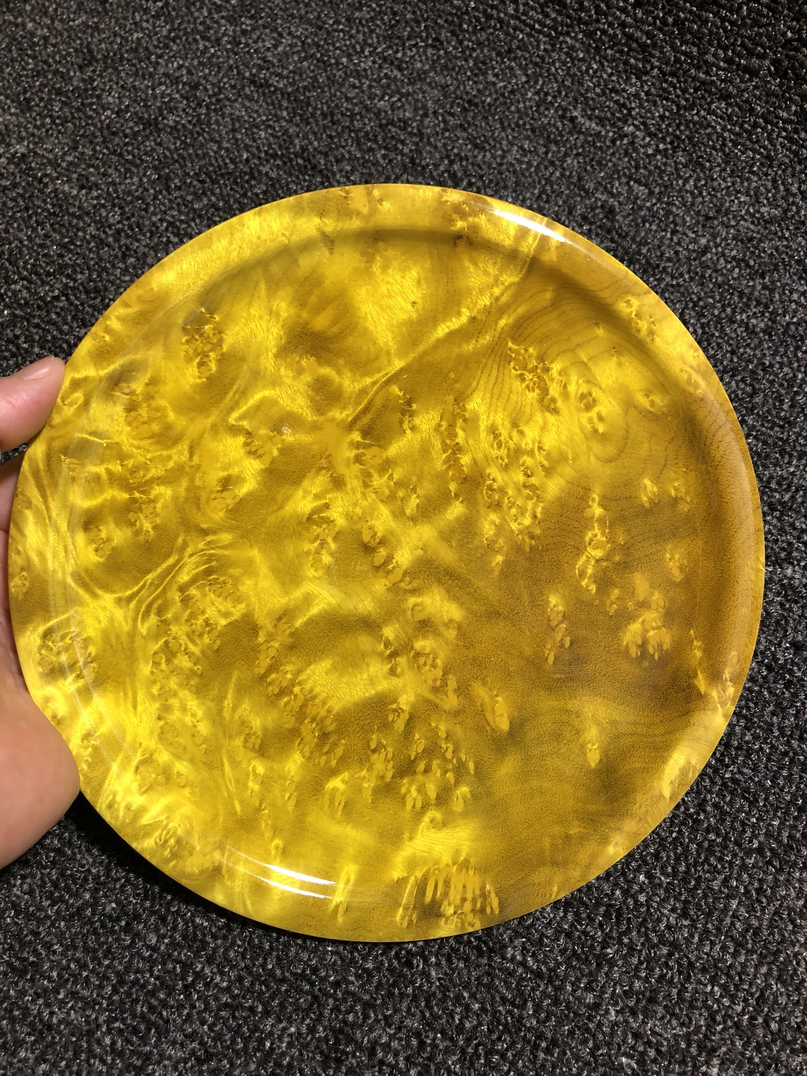 創意中式風格圓形黃金樟實木果盤零食盤家用桌面干果盤零食收納盤1入
