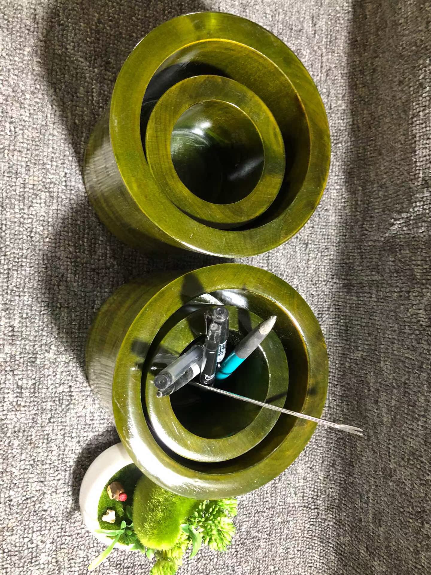 【2號】198一套【品名】筆筒【材料】大葉楠木【規格】尺寸大15/13.5,小10/10【簡介】精品金絲楠大葉楠木筆筒兩件套文房四寶書法用品辦公桌面收納筆筒多功能收納空間后一張為背面圖
