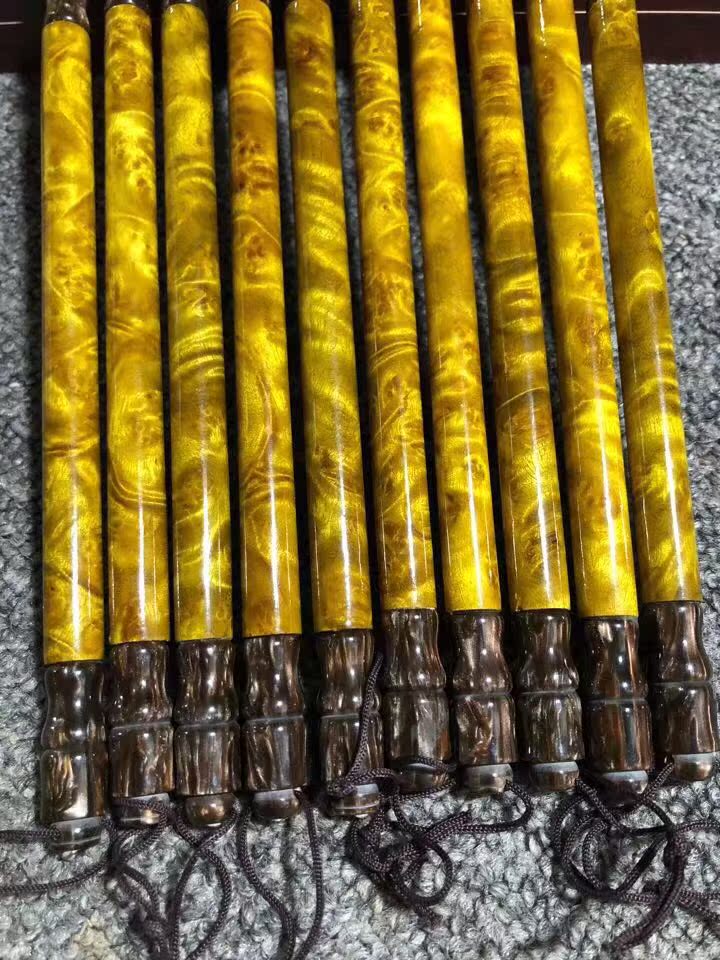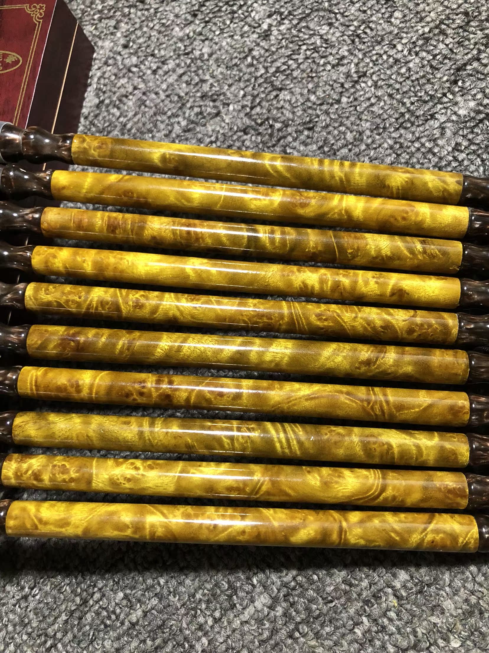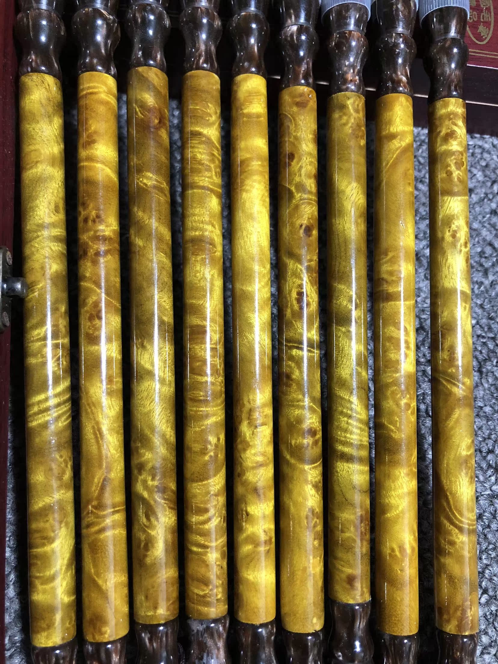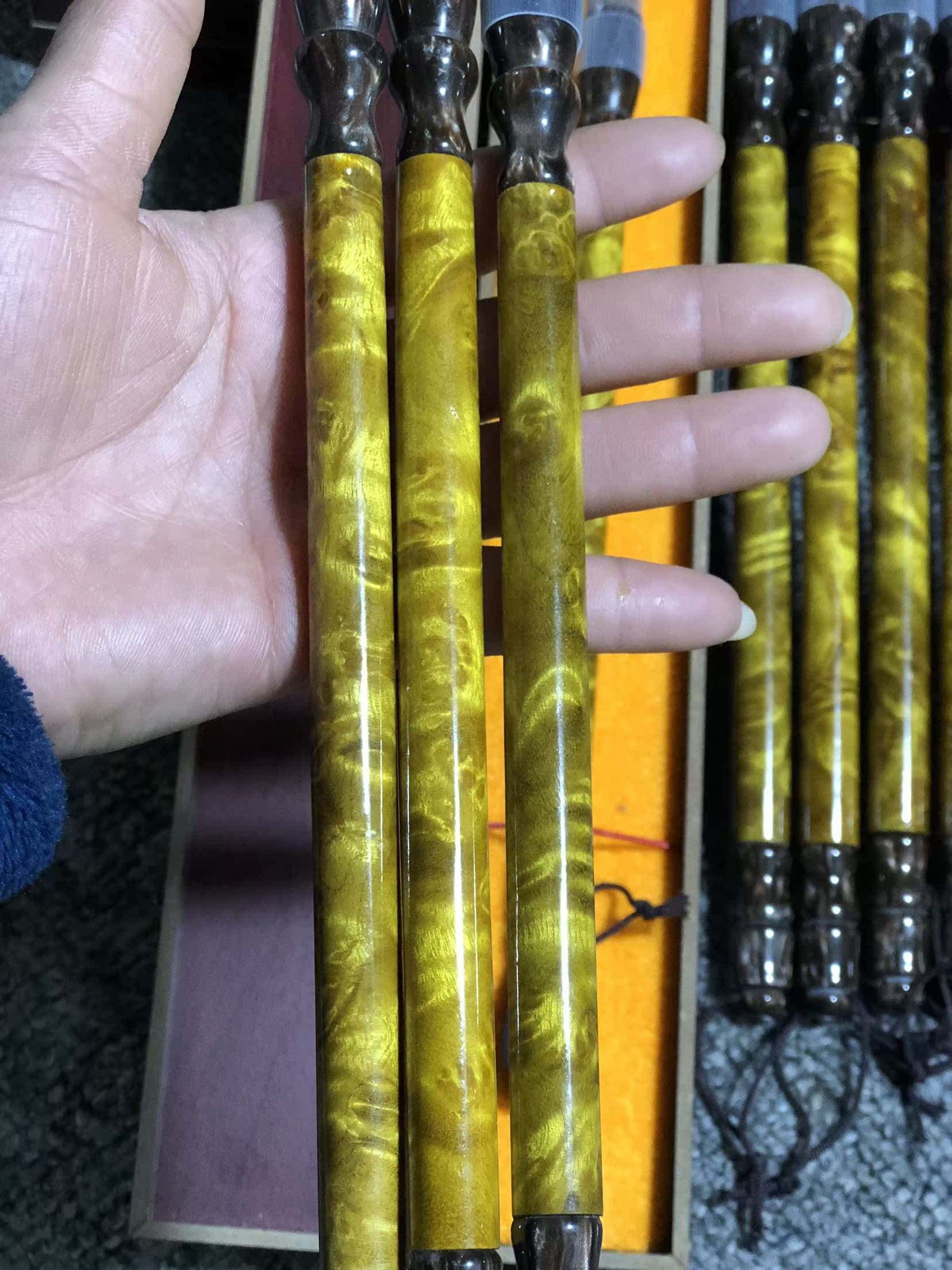黃金樟榴疤大葉楠木水波紋毛筆文房書法用品木雕工藝品禮盒裝1入