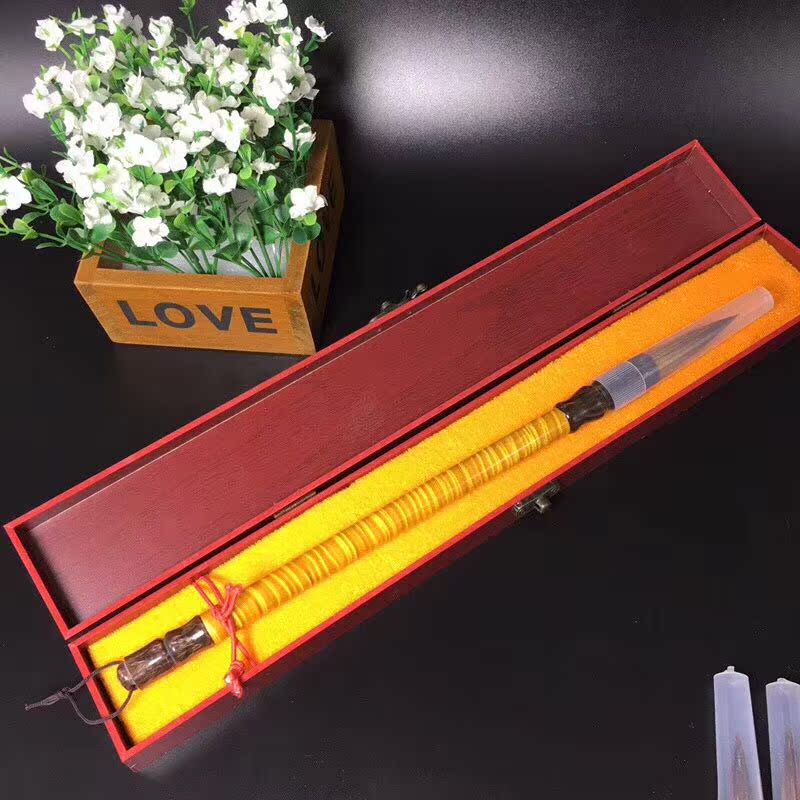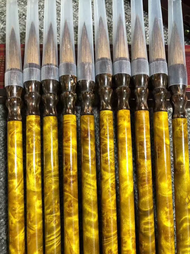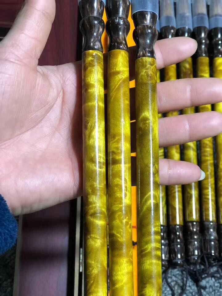 【品名】黃金樟【規格】長28*1.3【簡介】取材有道,做工之精細,黃金樟榴疤毛筆,文房四寶之首毛筆”!帶包裝盒