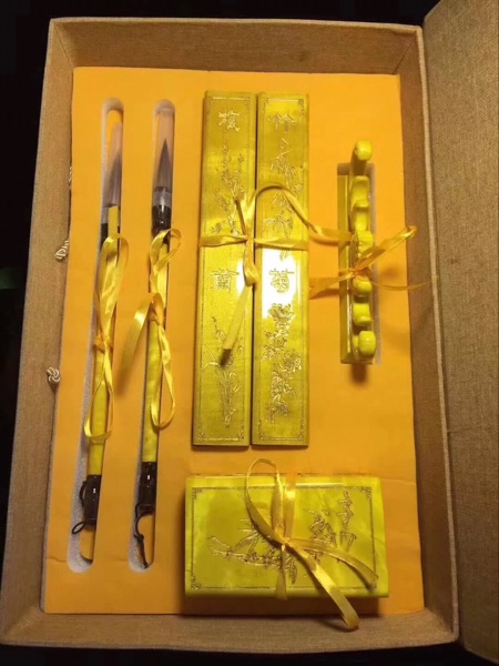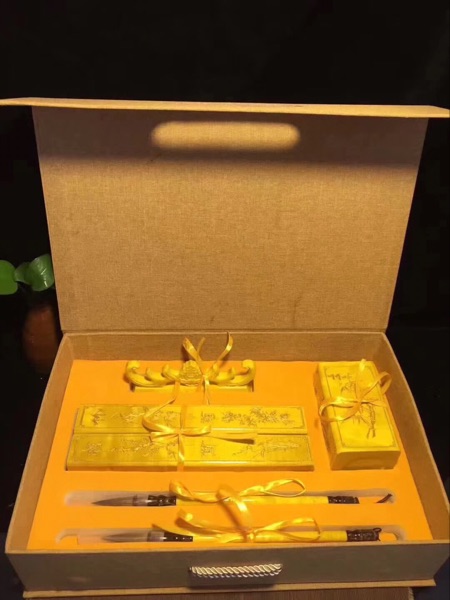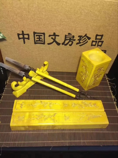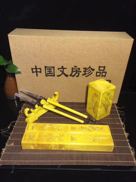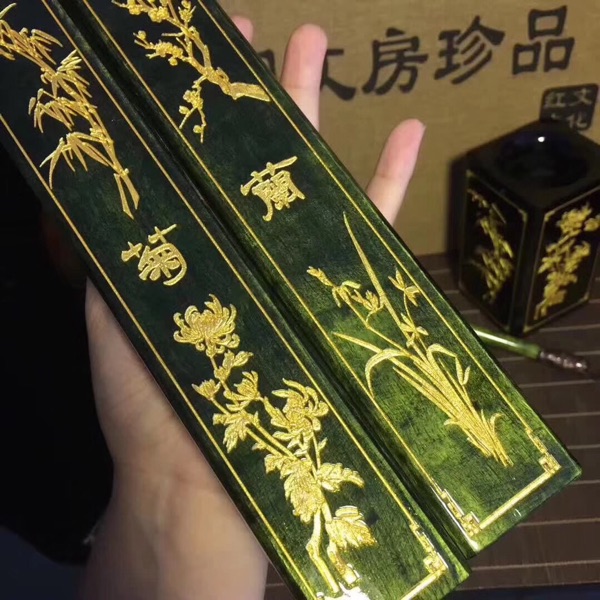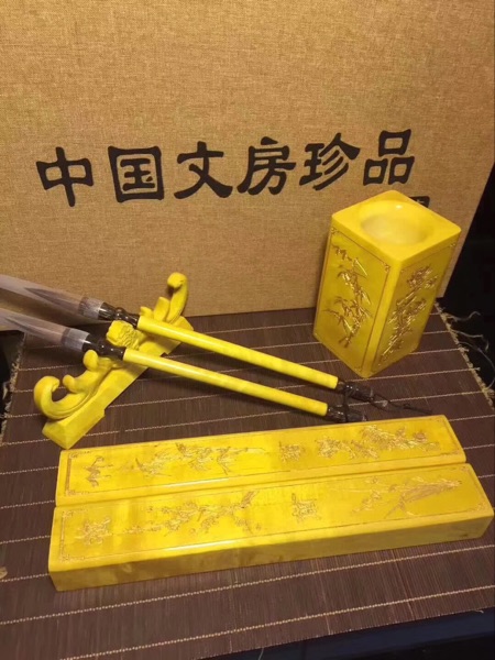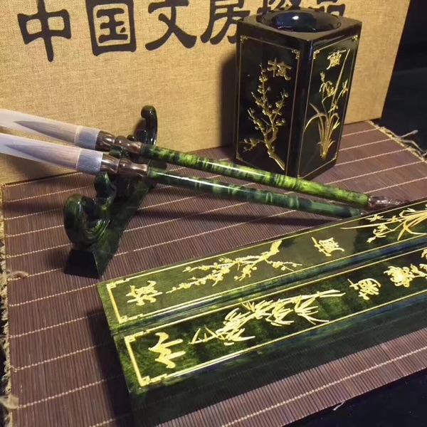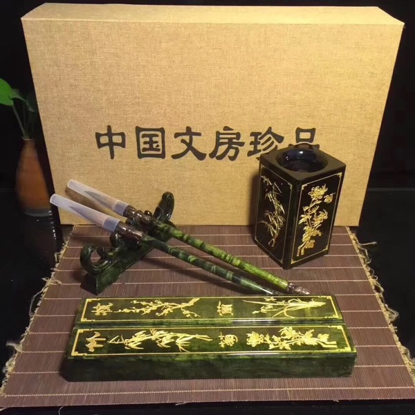 【梅蘭竹菊文房5????件套裝】【材質】大葉楠金絲楠木,送禮自用,【規格】分別為鎮尺長28cm*寬4cm*高3cm,筆筒高13cm*直徑7.5,筆架長16.5cm*3cm*高6cm,毛筆長30/1.0【工藝】雕刻描金,不掉金不掉色,筆架為雙面雕刻[玫瑰],更加立體飽滿——