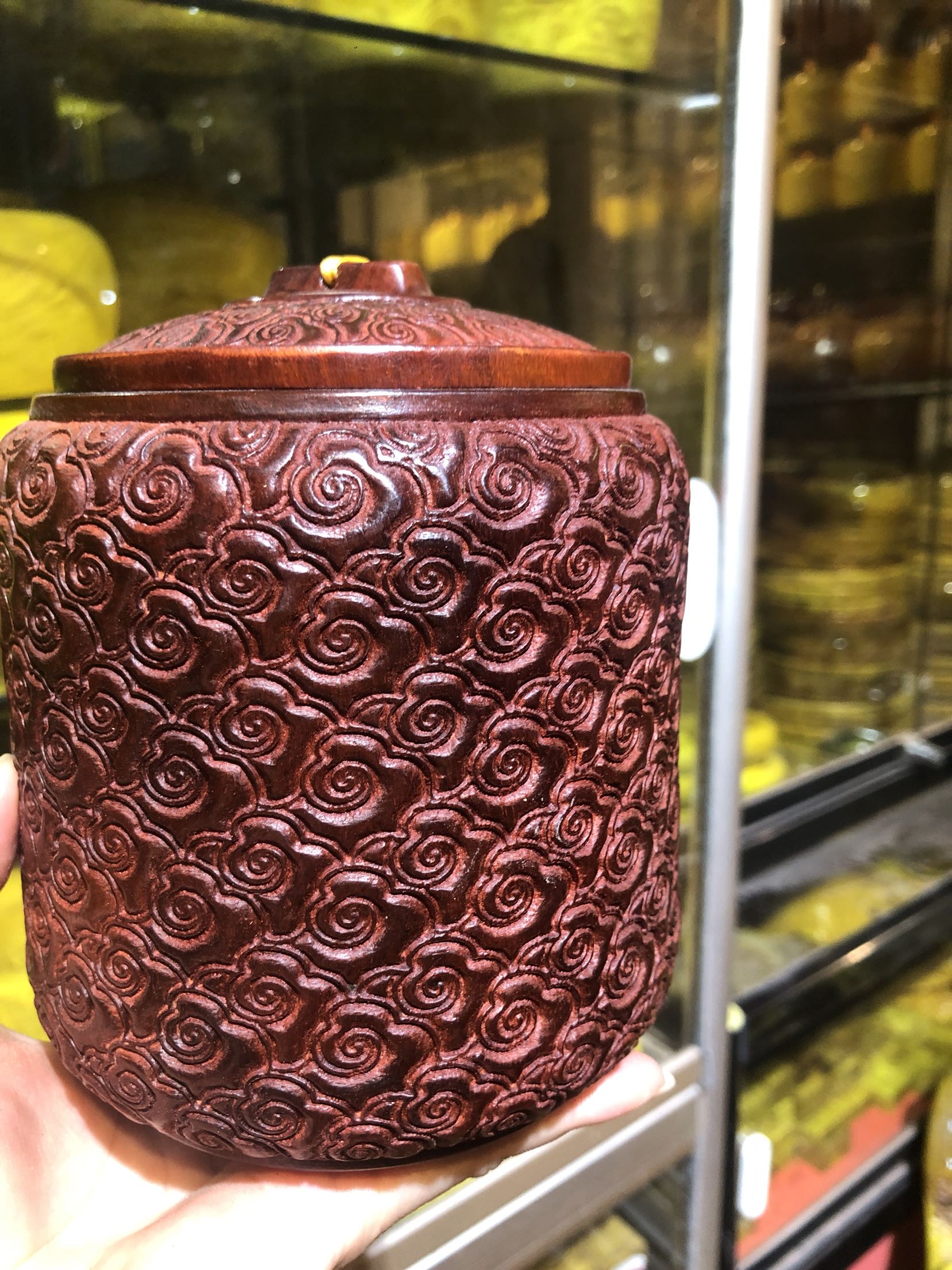 [3]中式紅木贊比亞血檀復古小號茶葉盒儲存普洱茶罐子便攜式家用木質1入