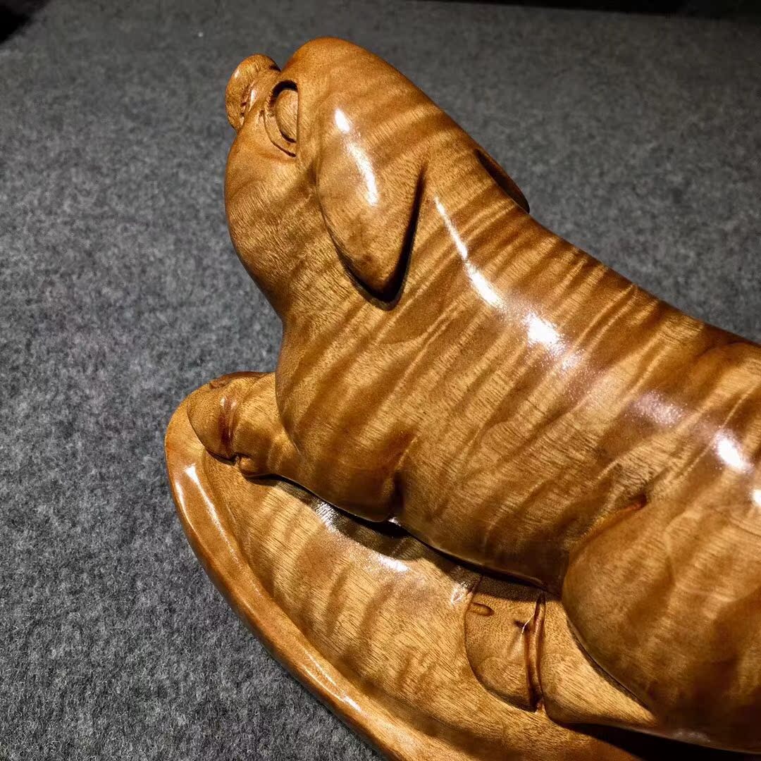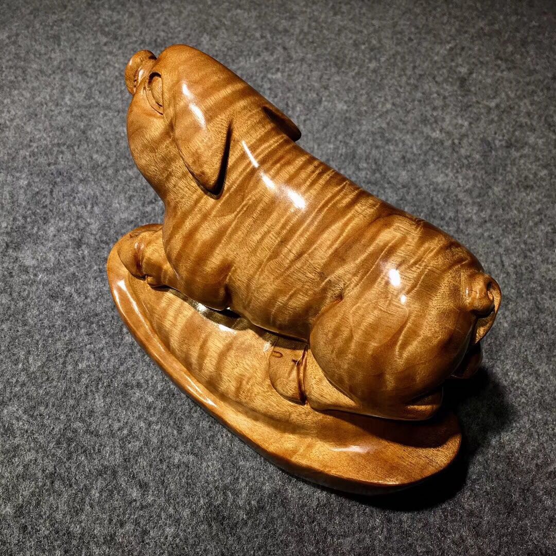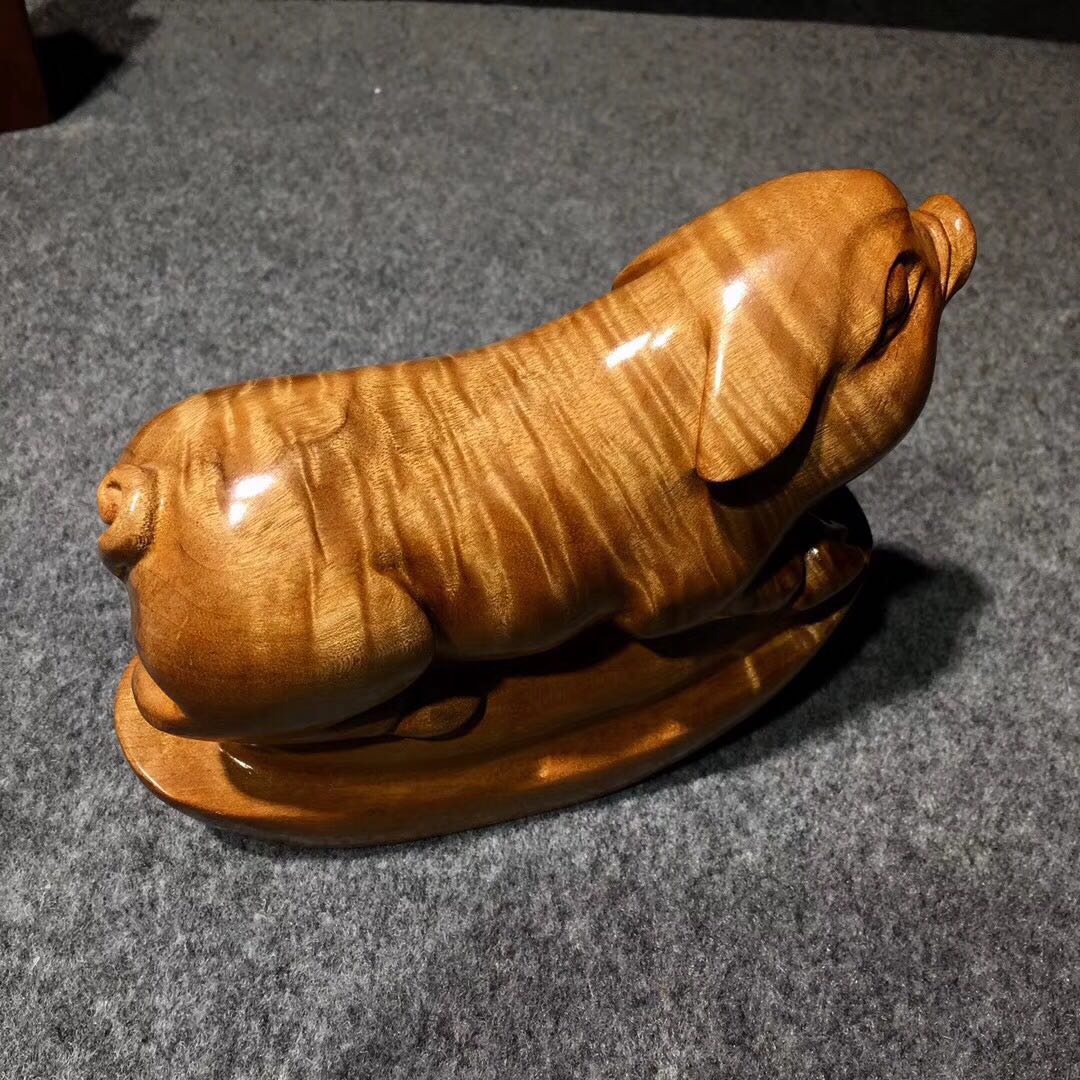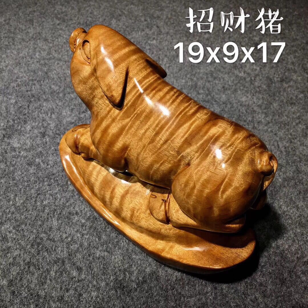 招財豬”金絲楠木材質,爆滿水波紋紋,全品無瑕疵,尺寸19/9/17公分