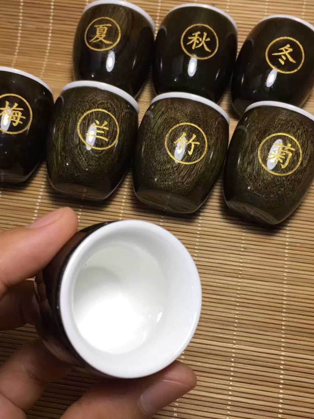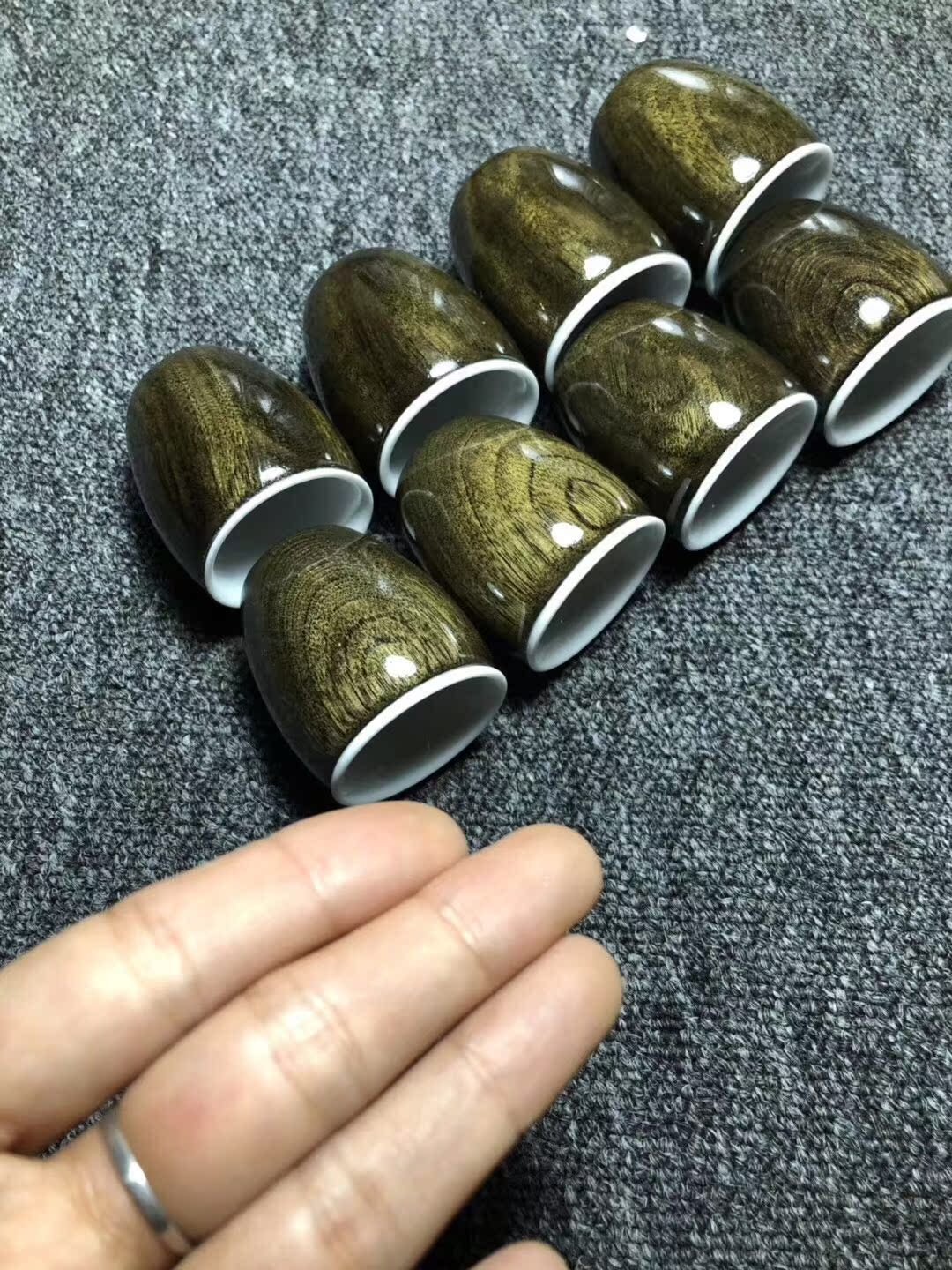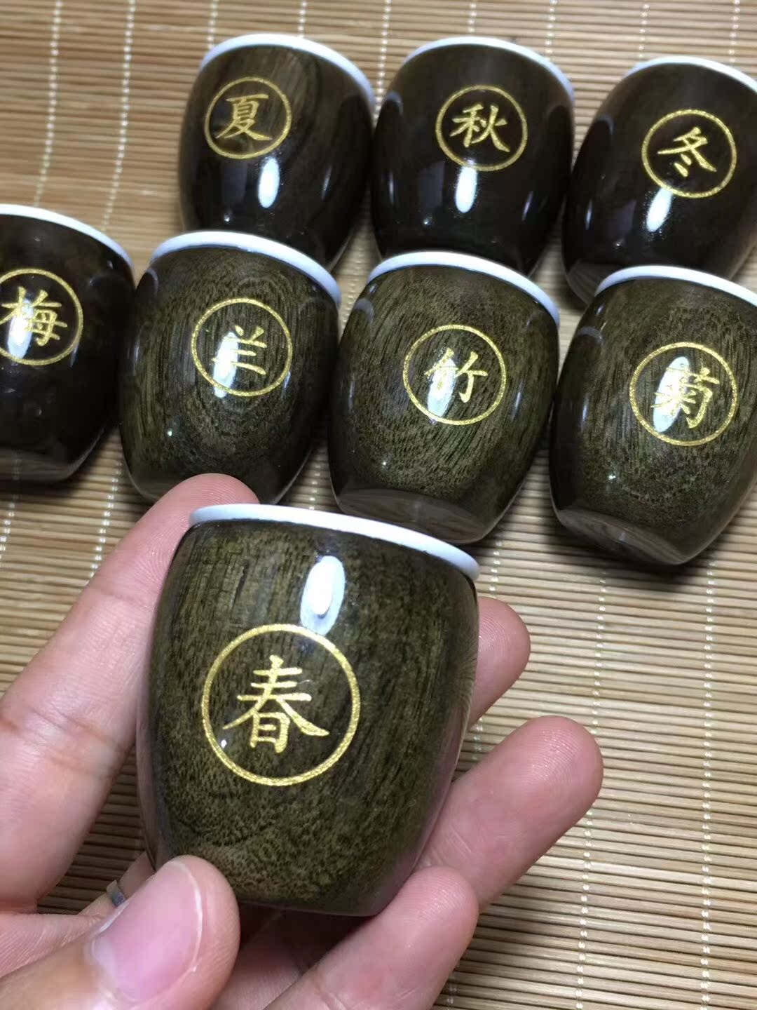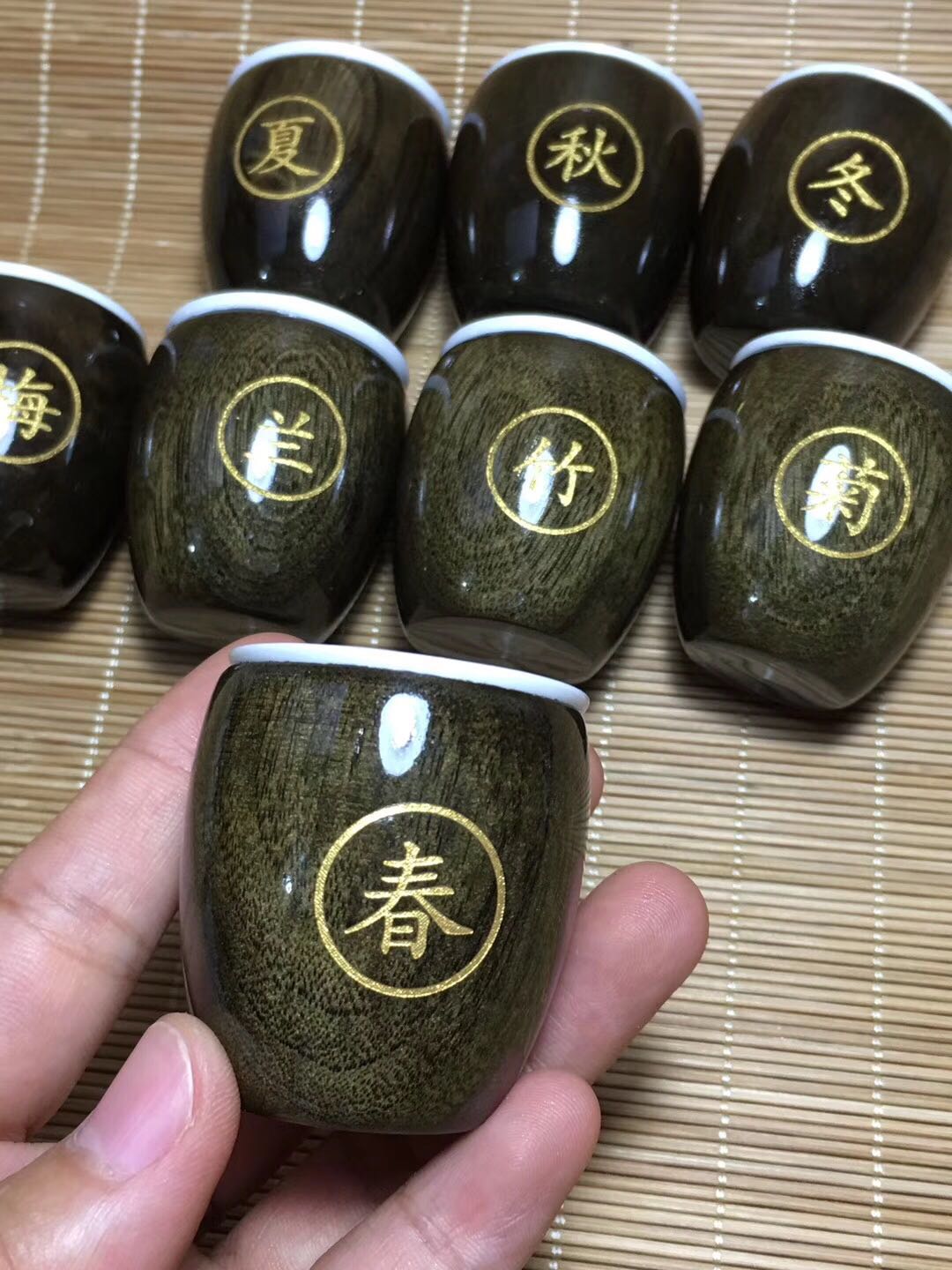 金絲楠烏木陰沉金絲楠木功夫茶杯酒杯陶瓷杯紅木茶道茶具送禮佳品1入