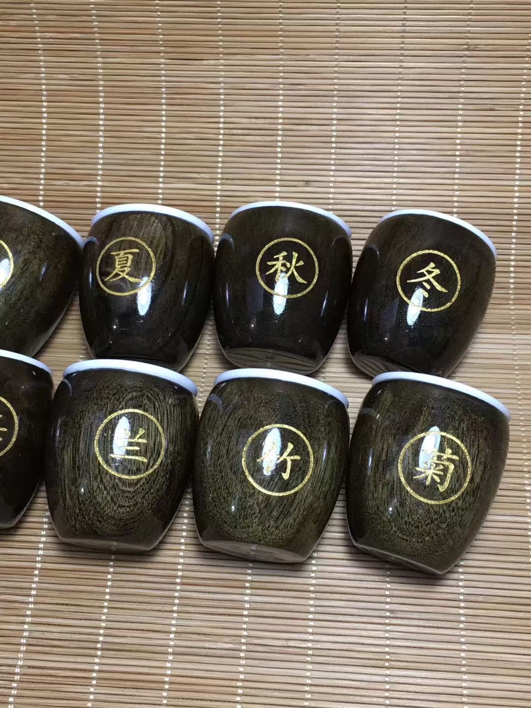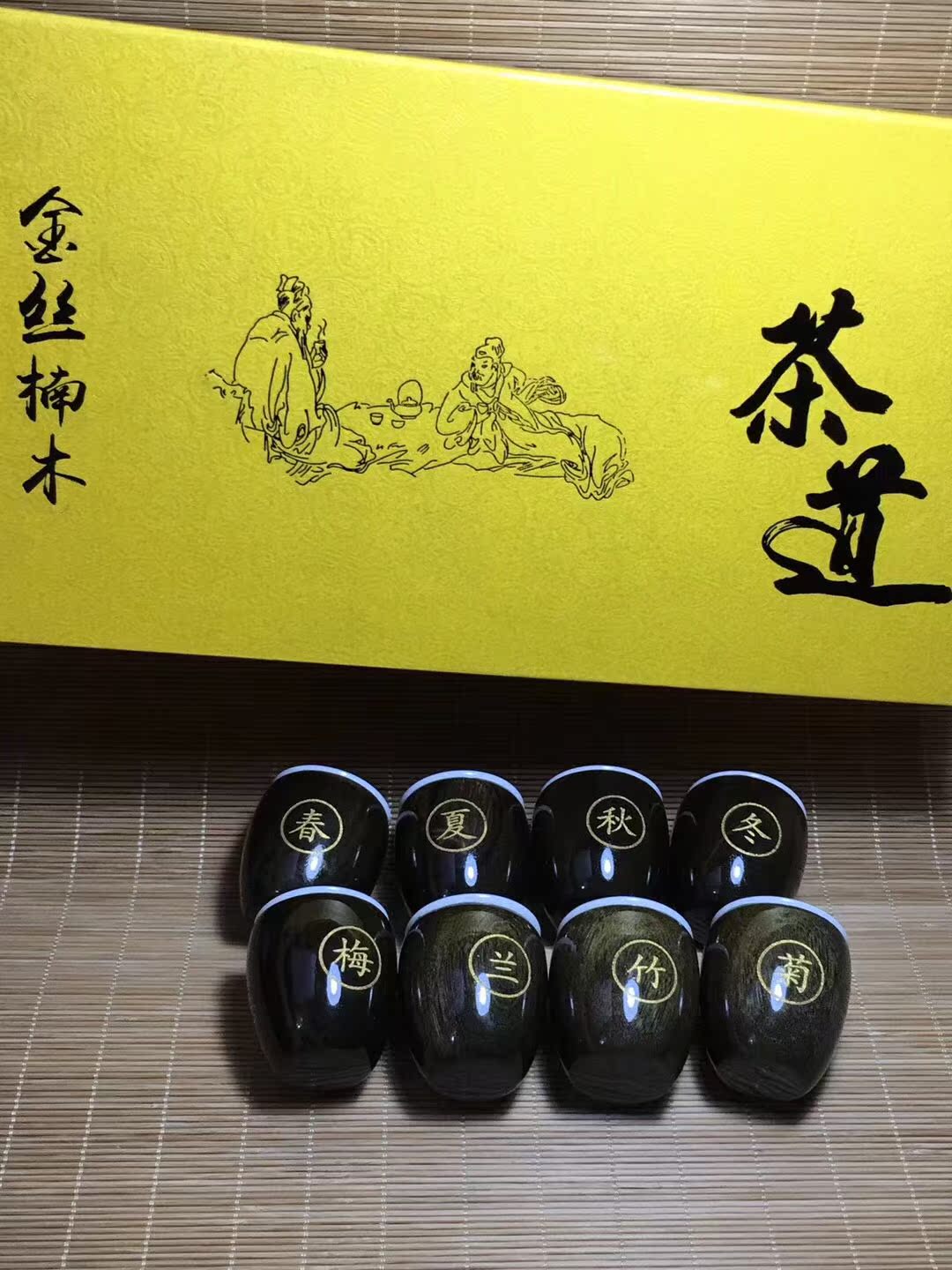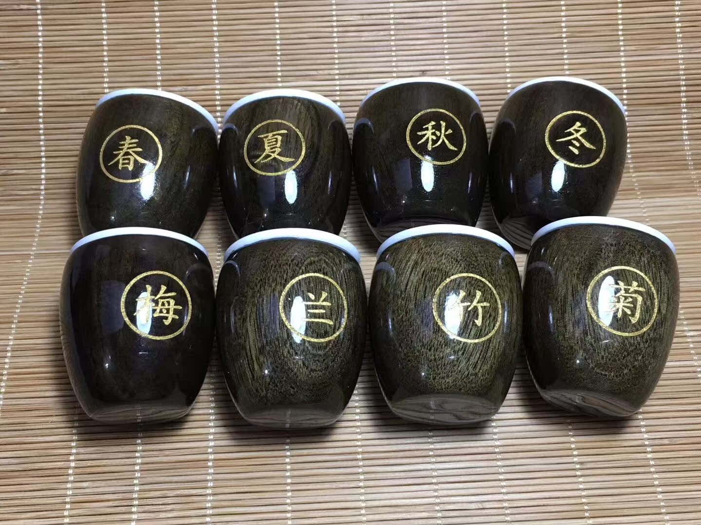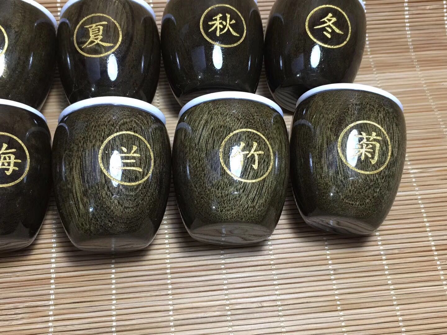 金絲楠烏木陰沉金絲楠木功夫茶杯酒杯陶瓷杯紅木茶道茶具送禮佳品1入