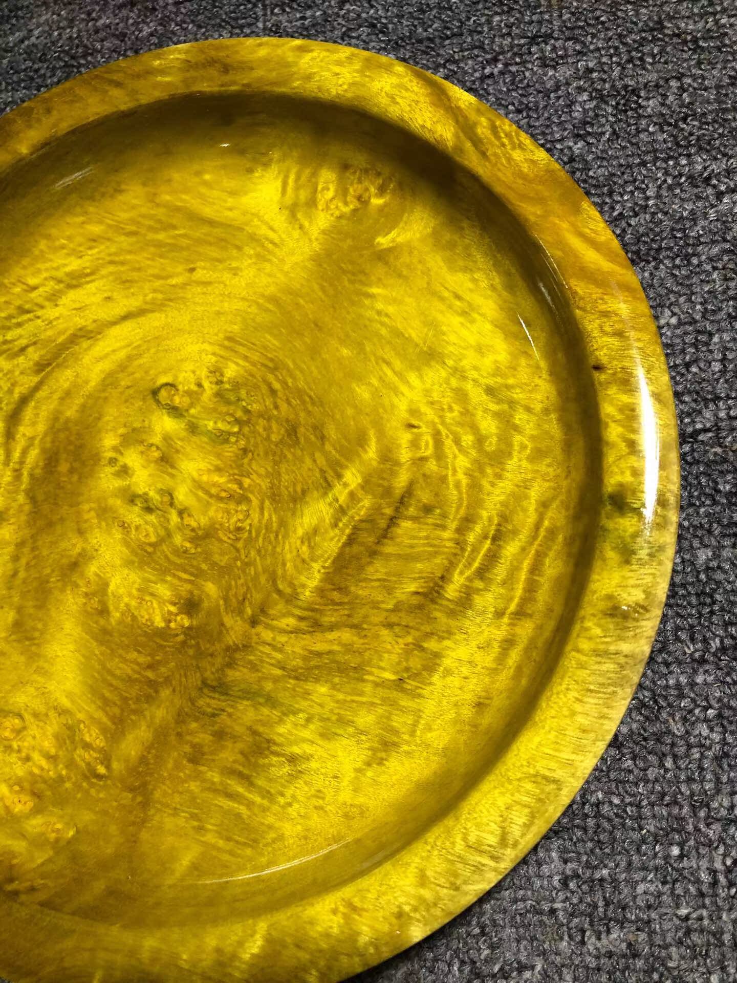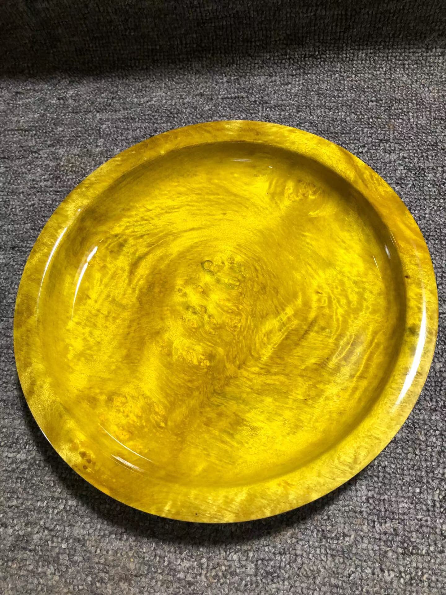 創意中式風格圓形黃金樟實木果盤零食盤家用桌面干果盤零食收納盤1入