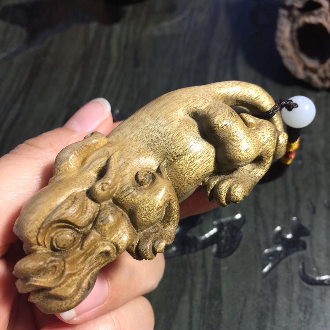 金絲楠木貔貅手把件 掛件3.5*7.8*2.8cm