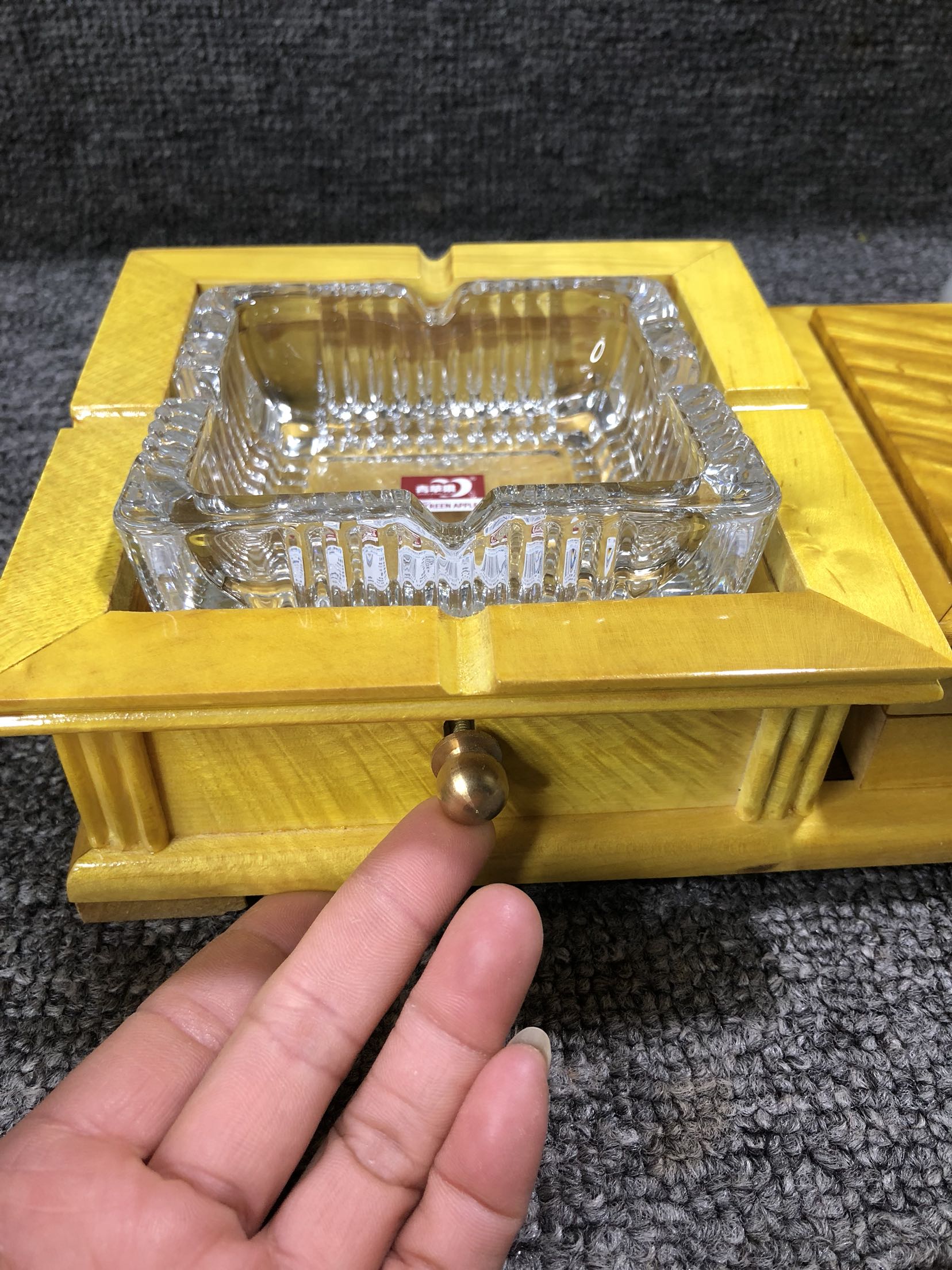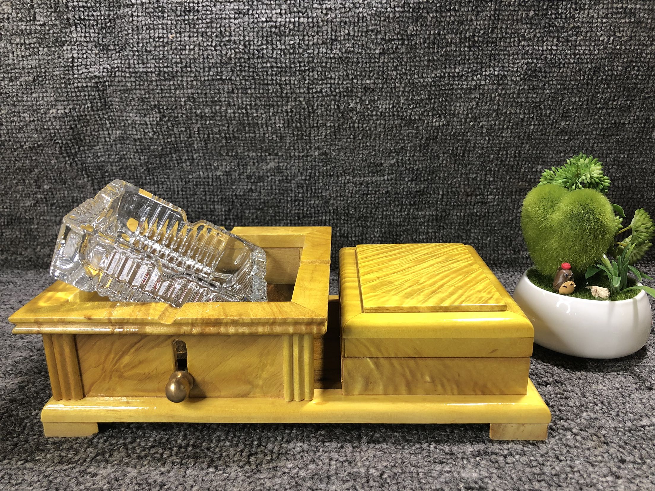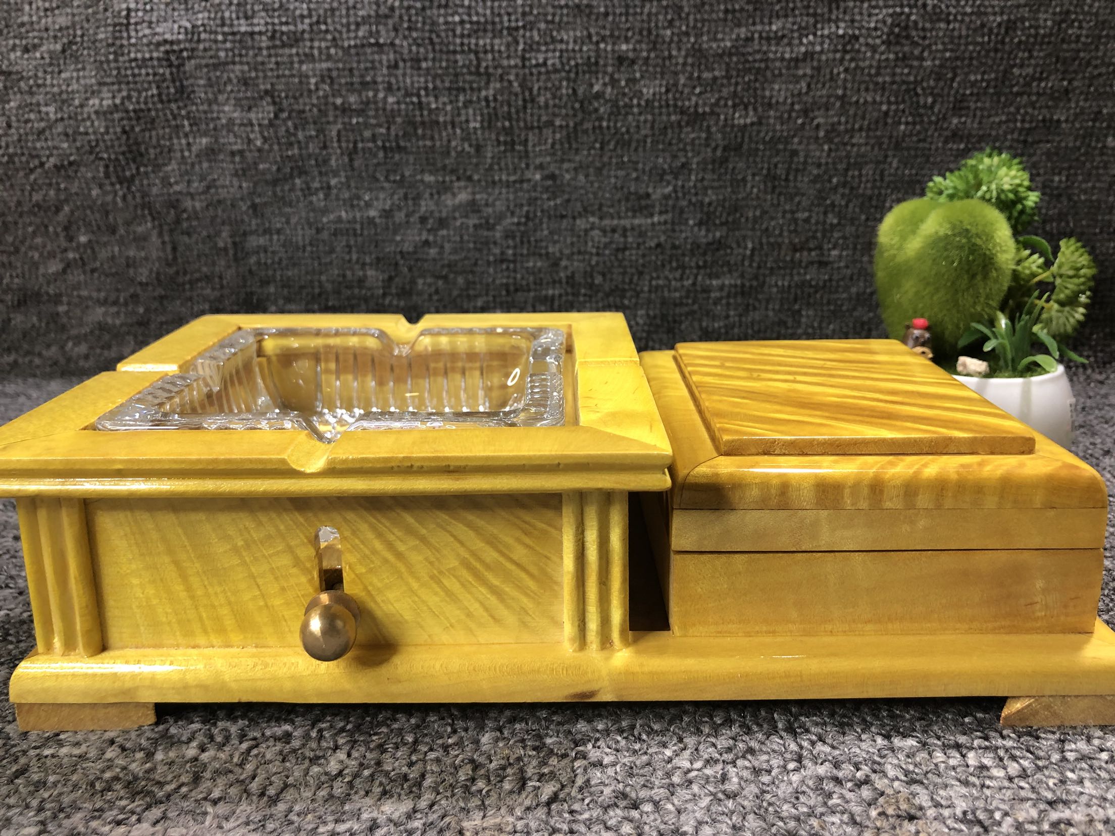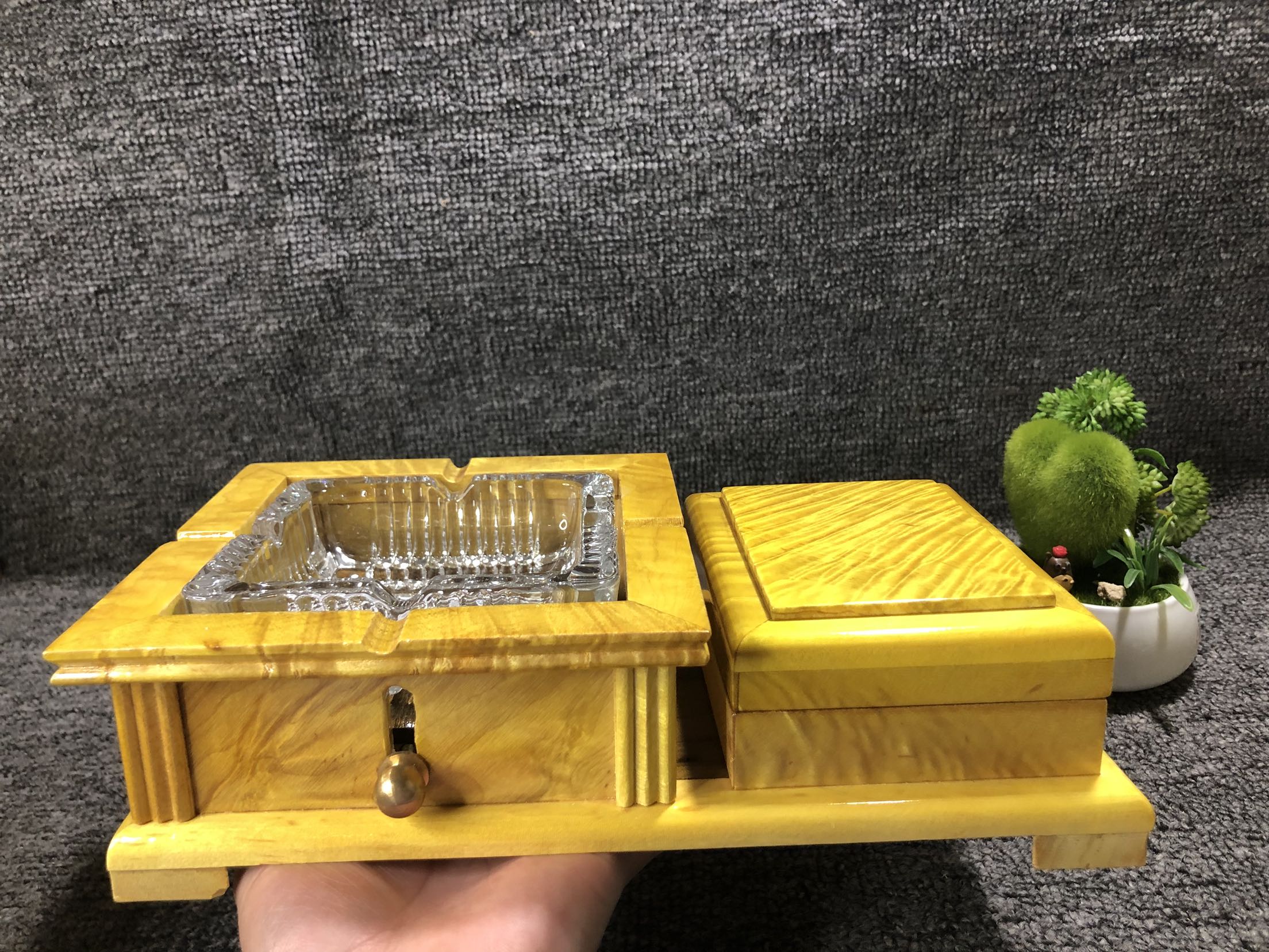 【品名】煙灰缸個個都是漂亮貨【尺寸】25.5*14.5*7經典款 大葉金絲楠翻蓋式煙灰缸 煙盒二合一 復古家居擺件 ,分體玻璃煙灰缸,便于清洗,禮盒裝,店里大量現貨 歡迎選購,煙灰缸上面都是大葉楠木帶水波紋木料,底部都是為普通木料