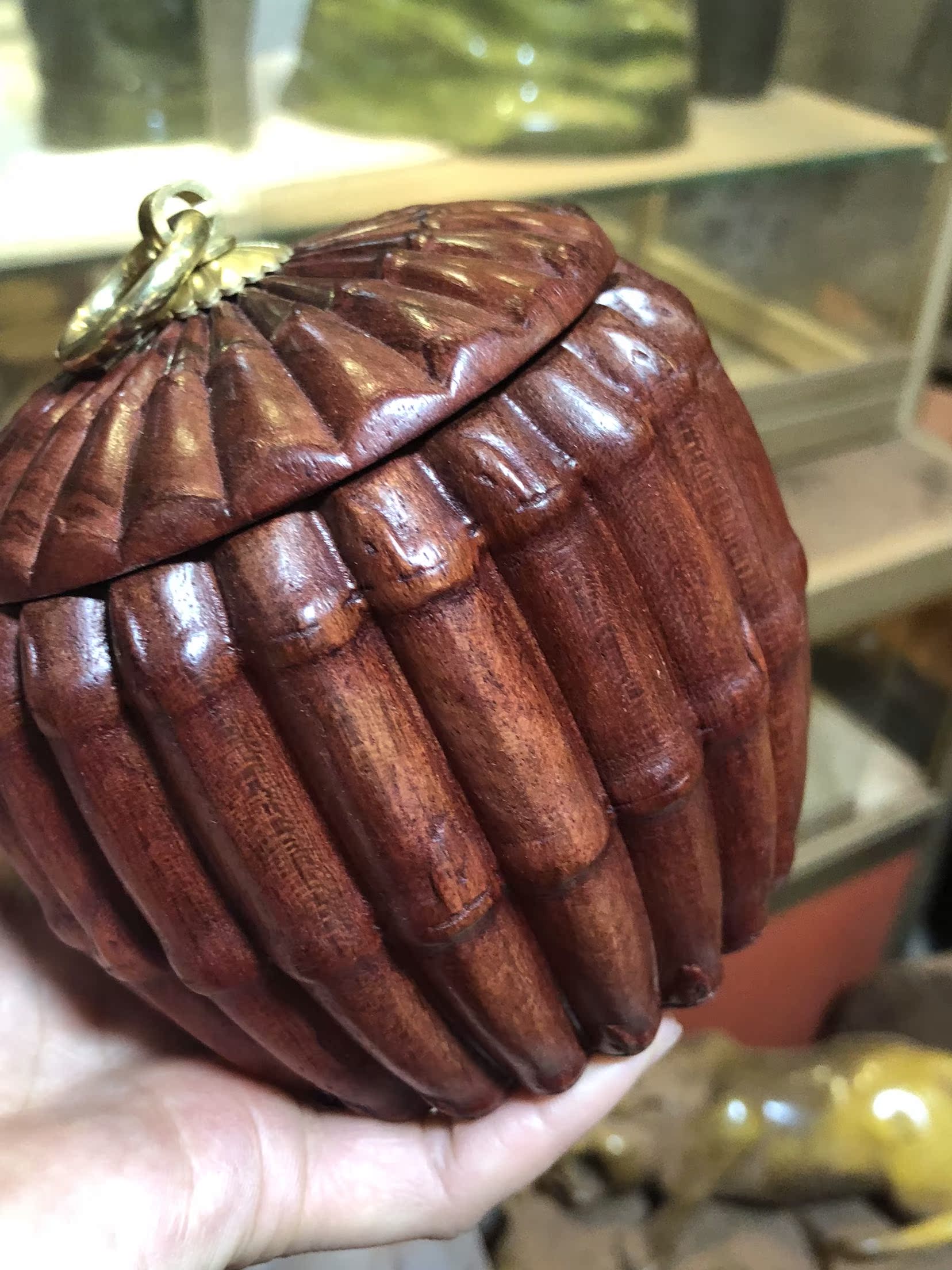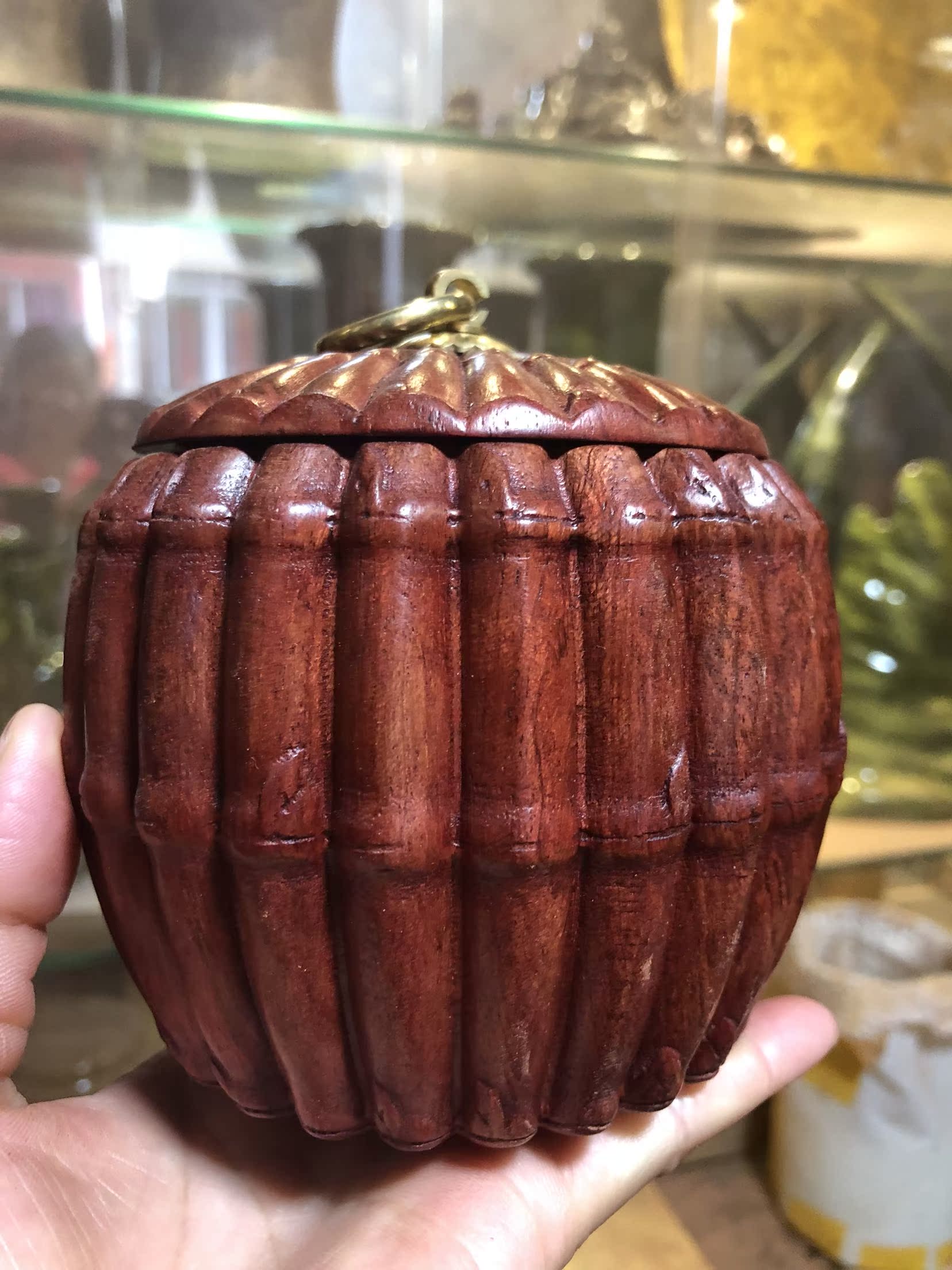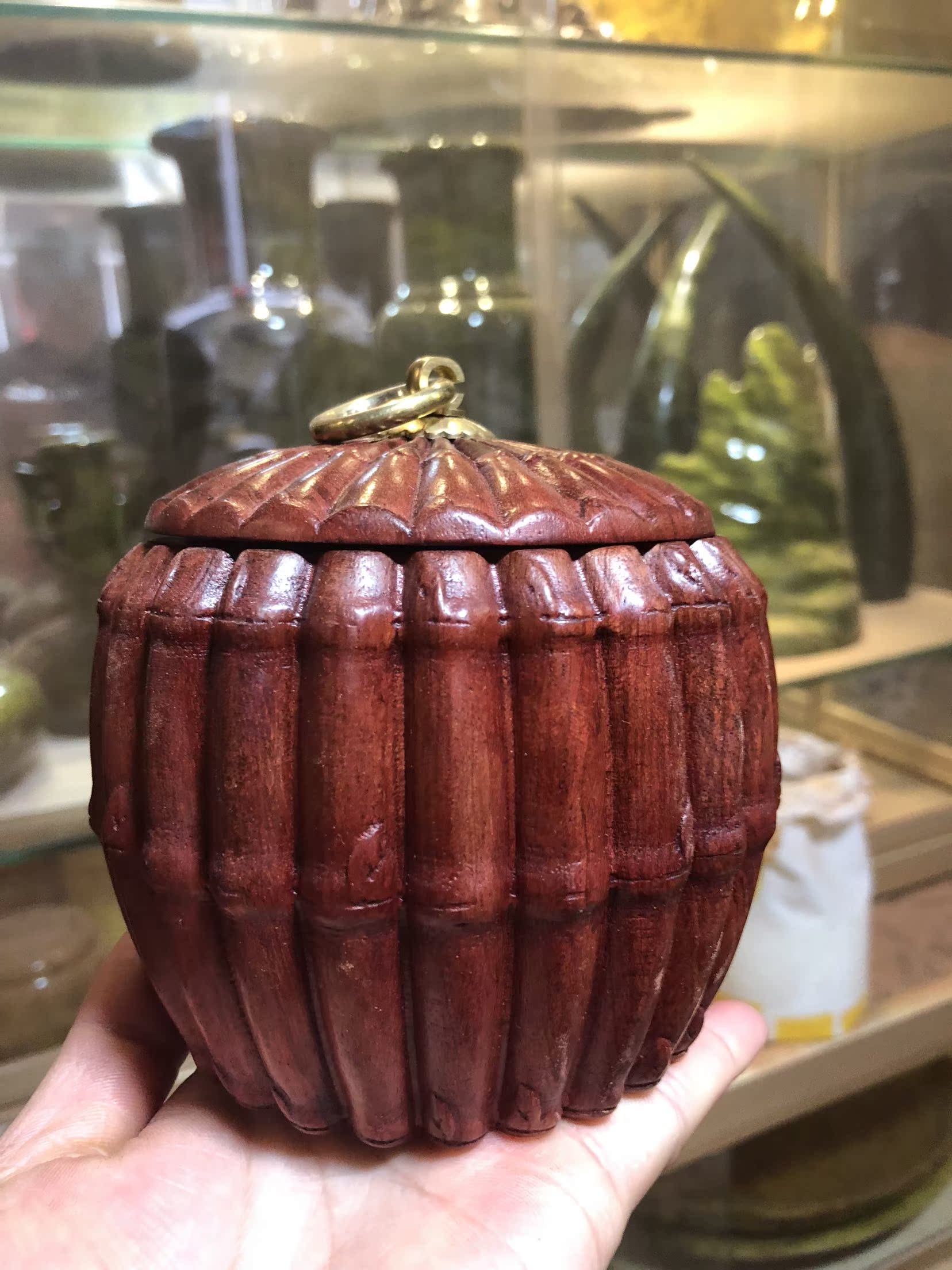 [2]血檀雕刻茶葉罐茶道用品可當家居裝飾擺件工藝品裝飾無臘無膝1入