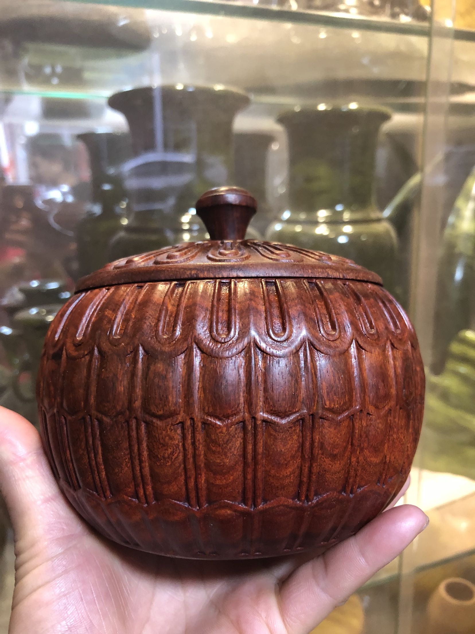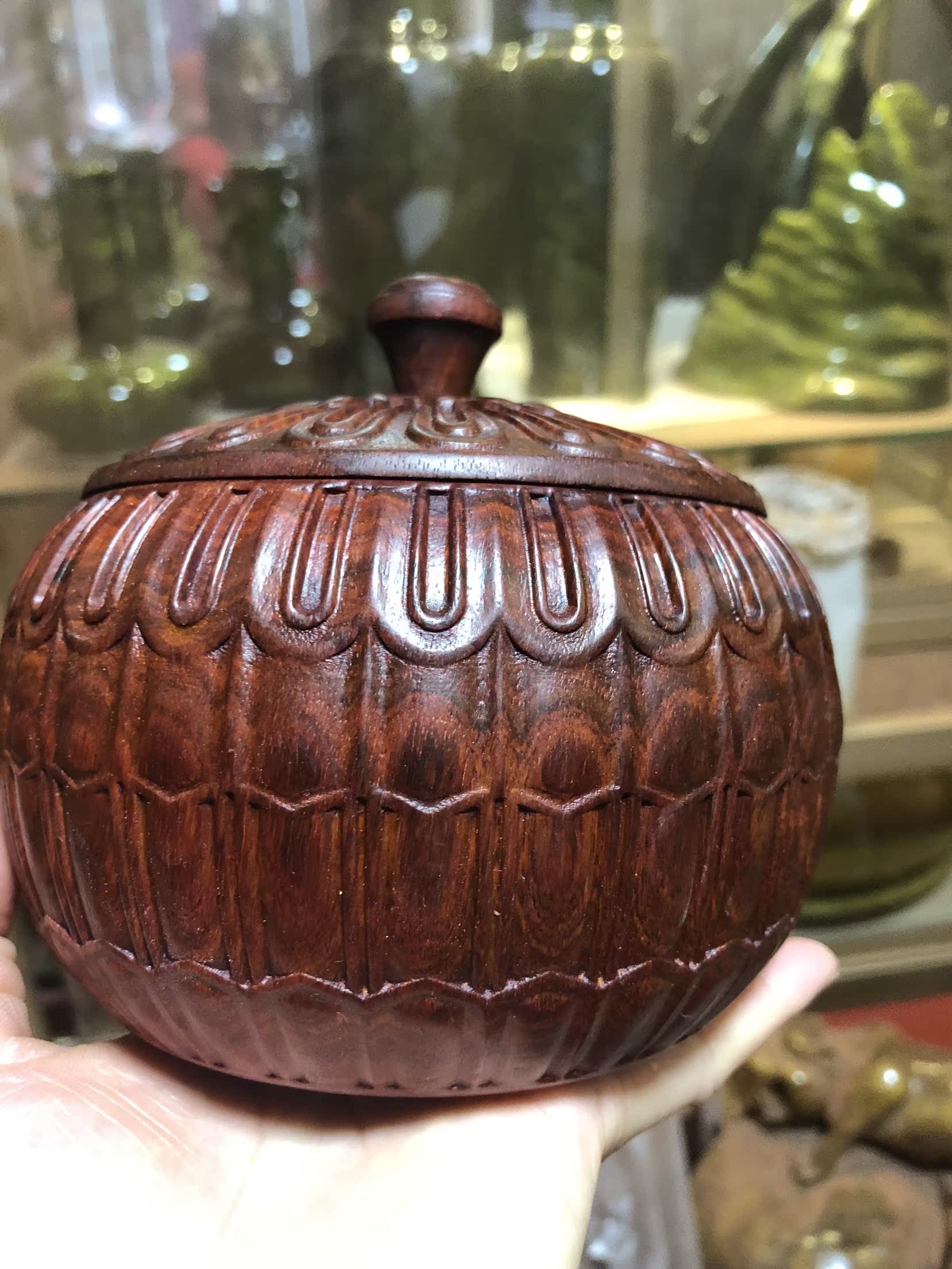 血檀雕刻茶葉罐茶道用品可當家居裝飾擺件工藝品裝飾無臘無膝1入