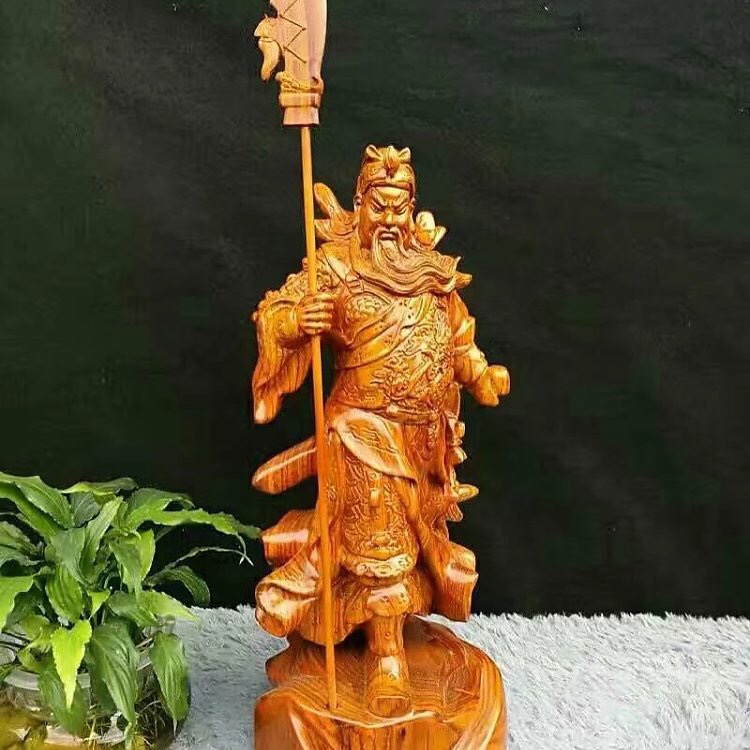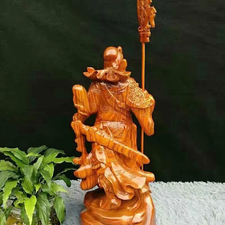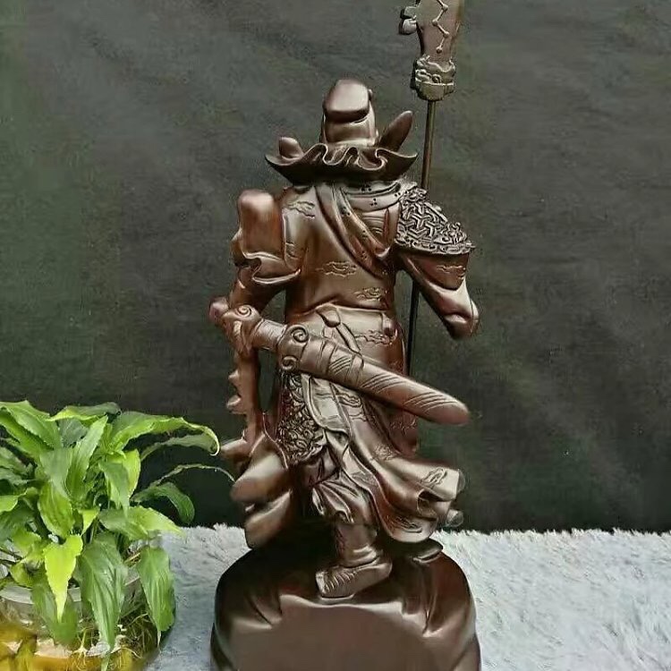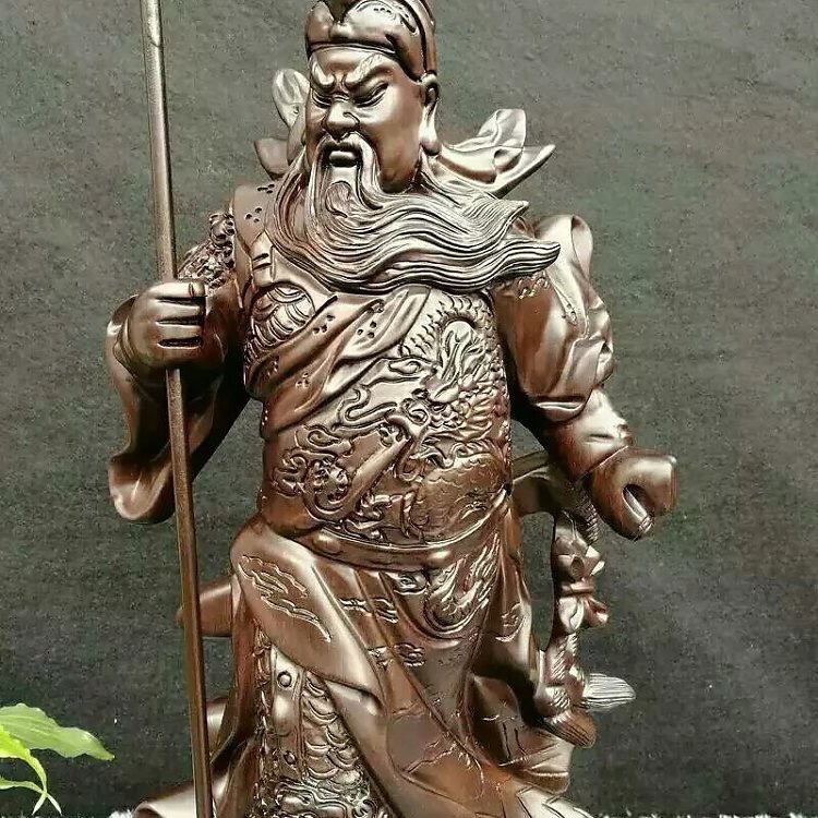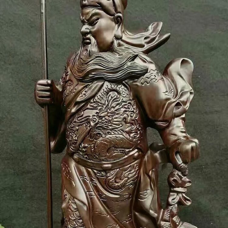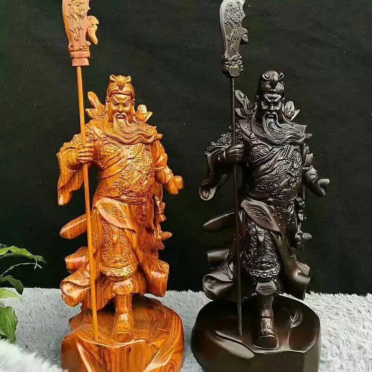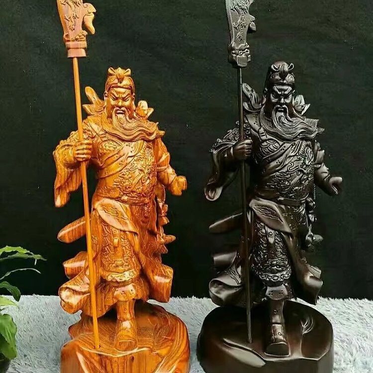 非洲花梨黑檀圓木精雕立刀關公栩栩如生家居裝飾擺件工藝品禮盒裝1入