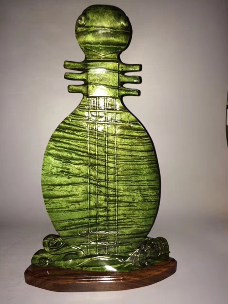金絲楠木大葉楠木【琵琶琴】滿波紋無瑕疵家居擺件工藝品送禮佳品1入