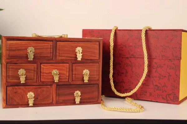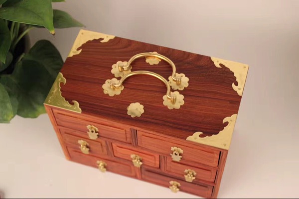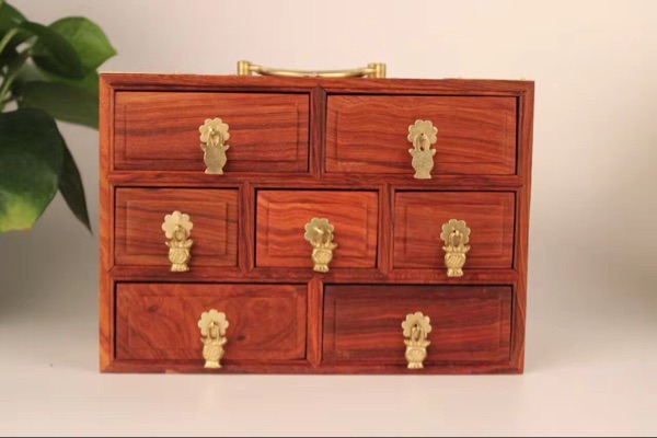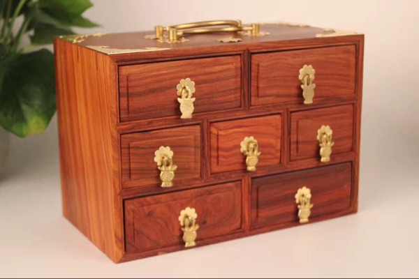 【品名】七抽首飾盒【材質】小葉紅檀【規格】20/14/11.5cm 重約1.8公斤【包裝】錦盒包裝