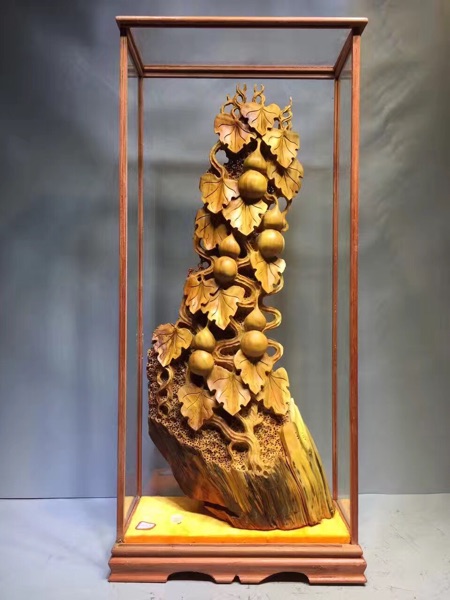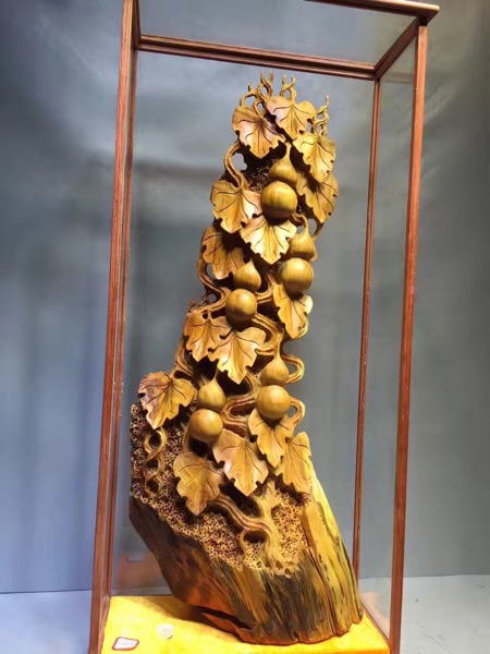 《五福臨門》崖柏,陳化老料,整體無拼接,全手工制作,大師工藝,油性十足,奶香味十足。高寬厚86/39/19厘米重21斤.送玻璃展示框。