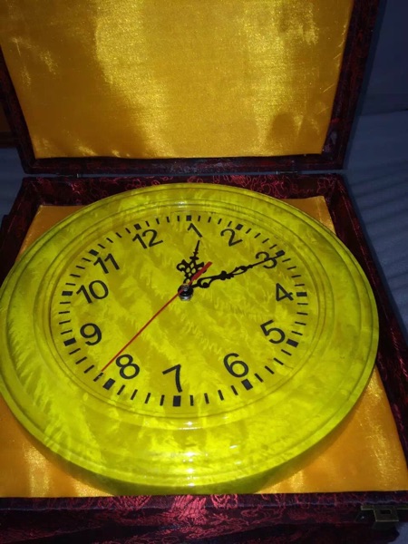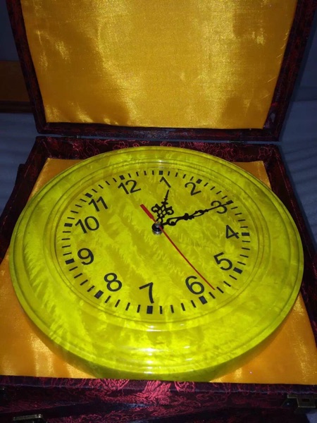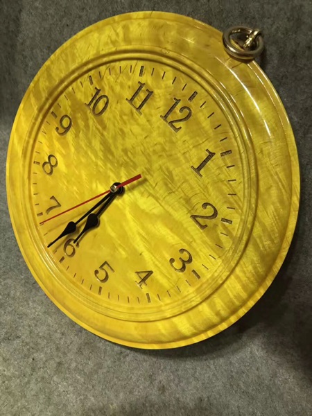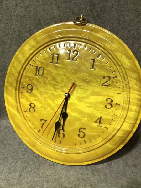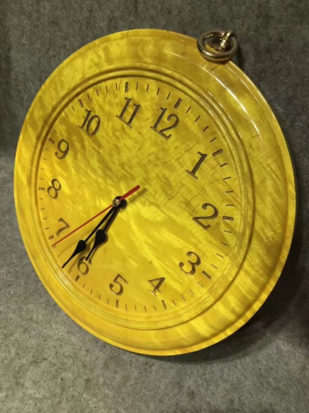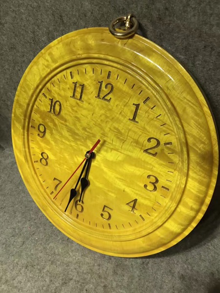 四川金絲楠木滿水波紋掛鐘尺寸27/3公分家居生活用品工藝擺件套裝1入
