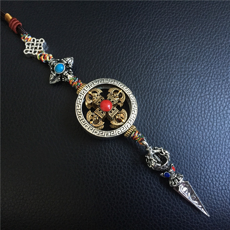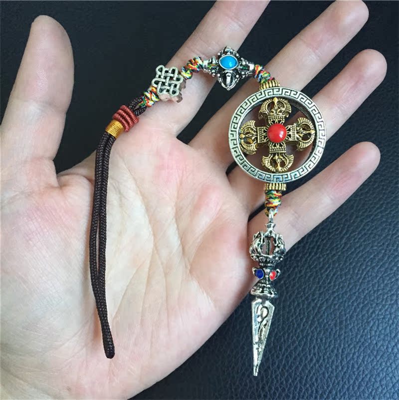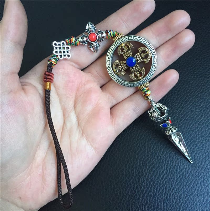 藏銀民族風十字金輪金剛杵背云包掛車掛藏式避邪保平安民族風掛件1入
