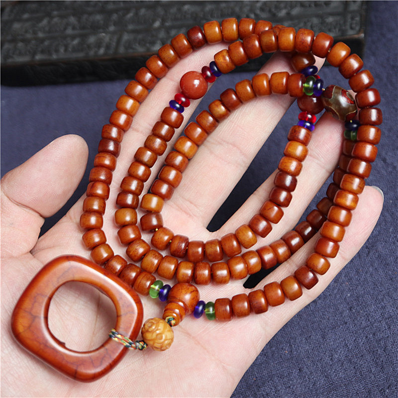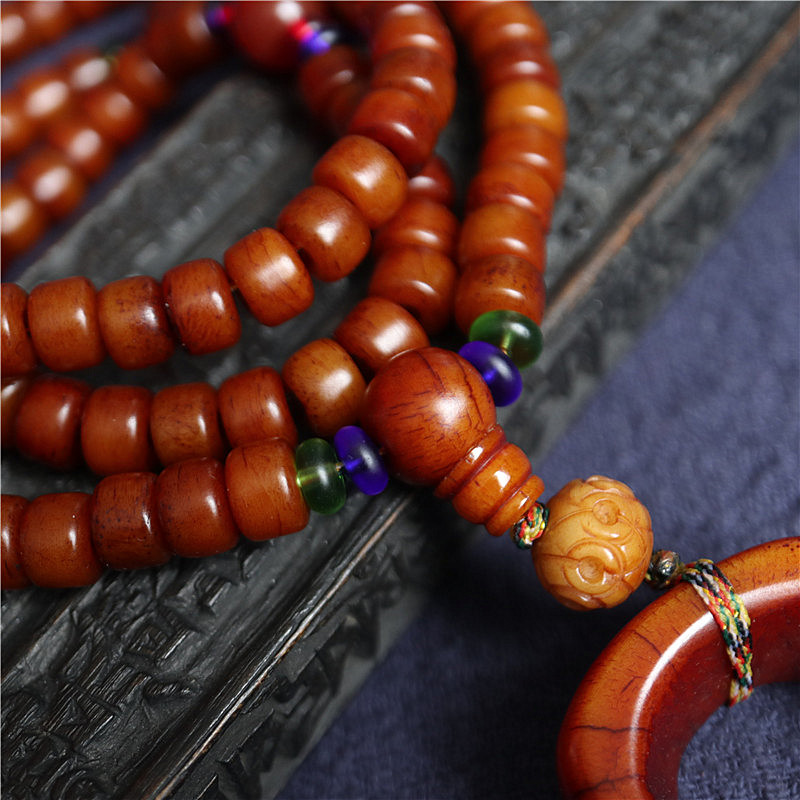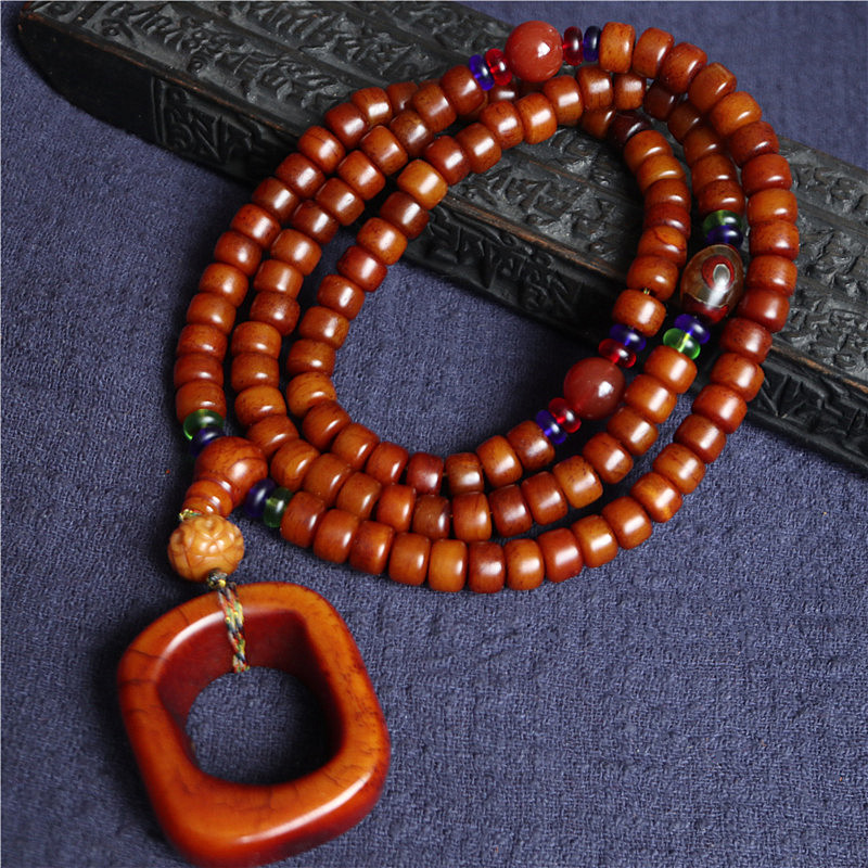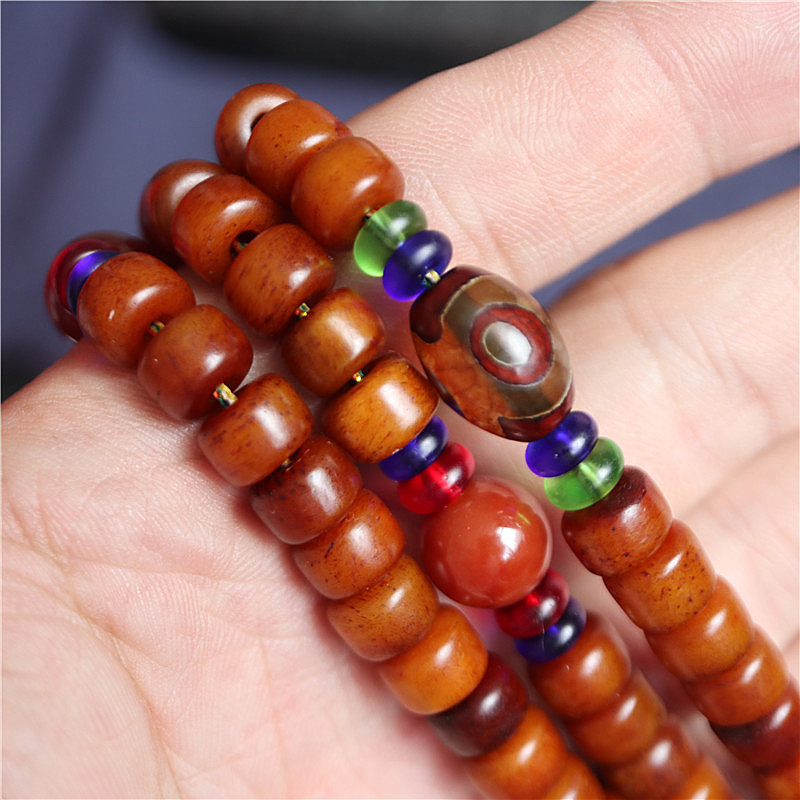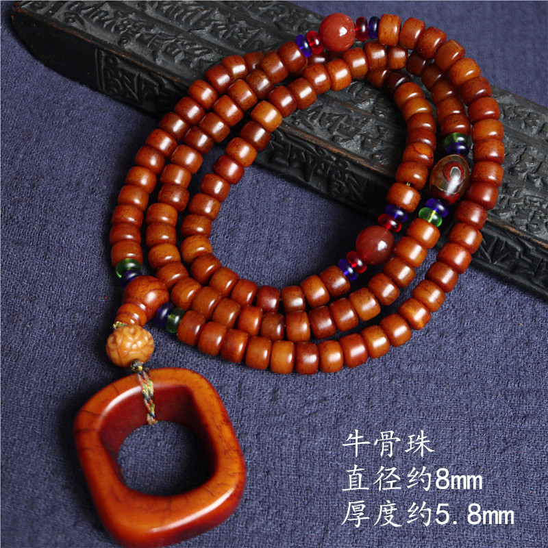 西藏天然?牛骨手工搭配佛珠念珠藏式油潤通透?牛骨diy手工搭配1入