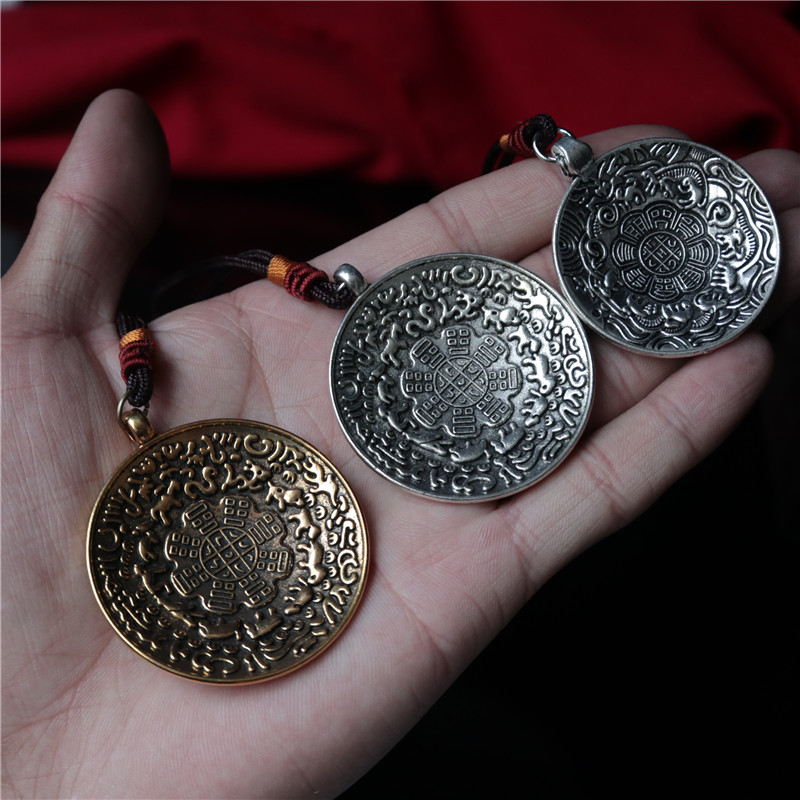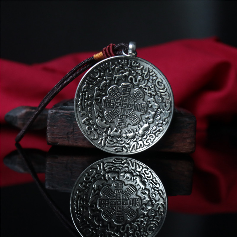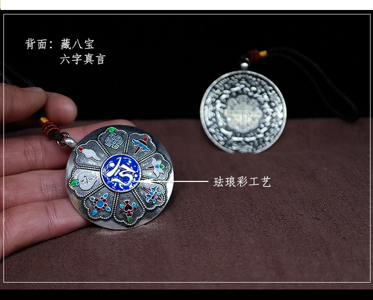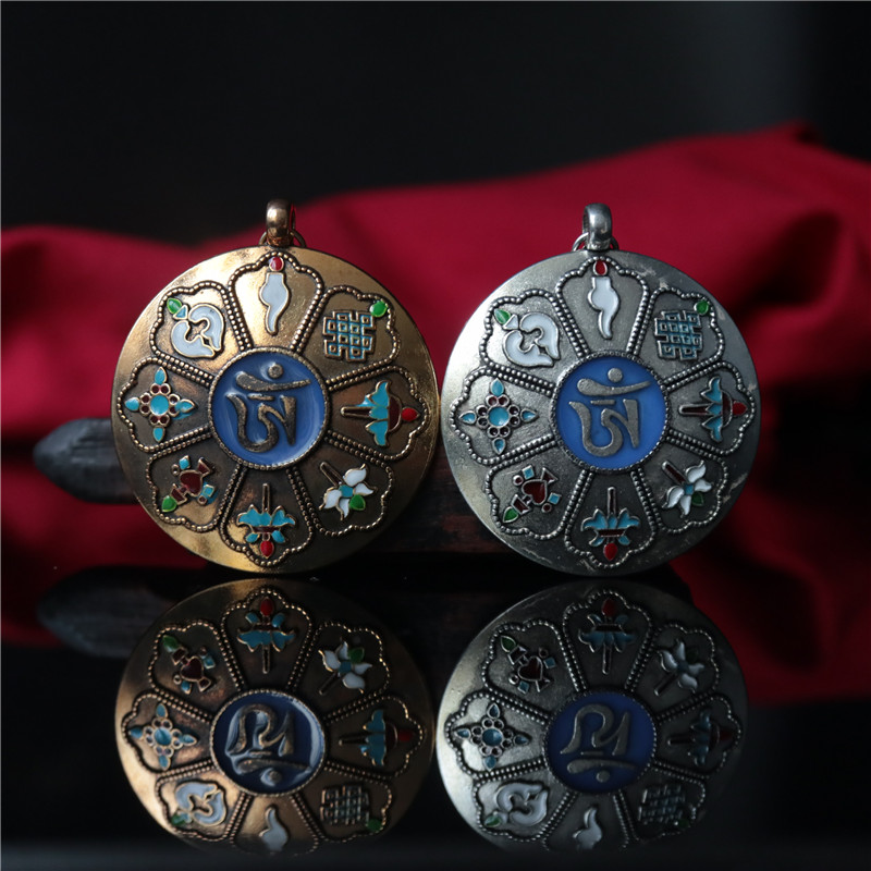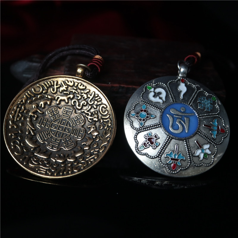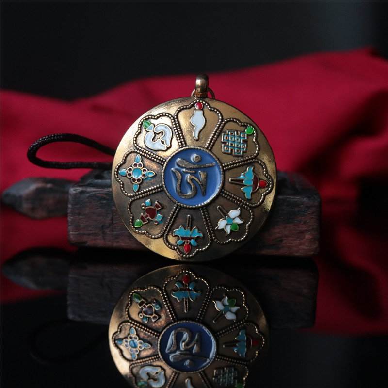 西藏 拉薩直發琺瑯彩工藝 九宮八卦牌藏式風格十二生肖九宮牌吊墜1入