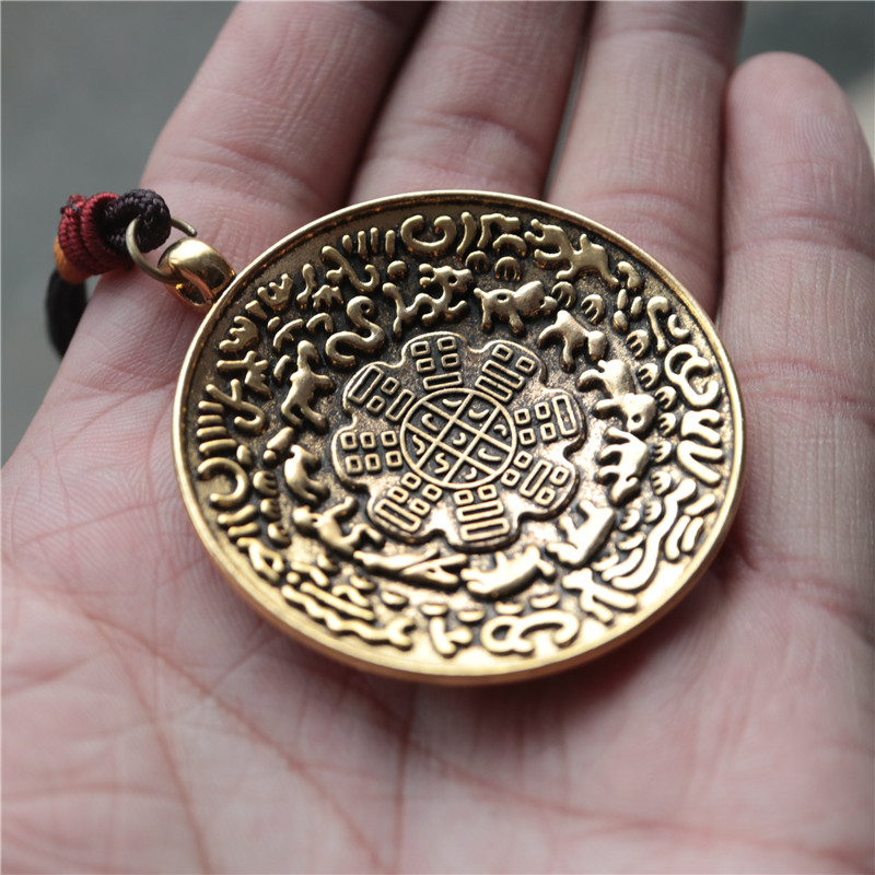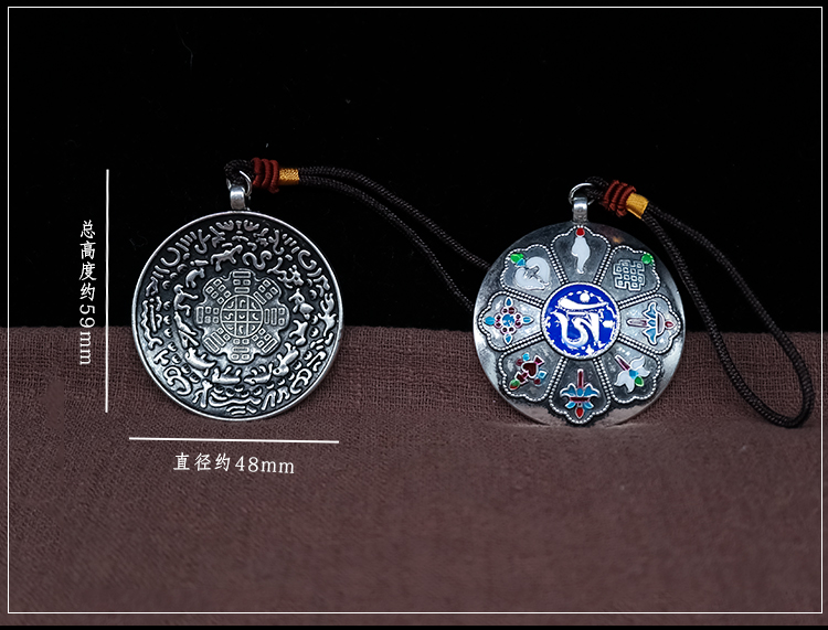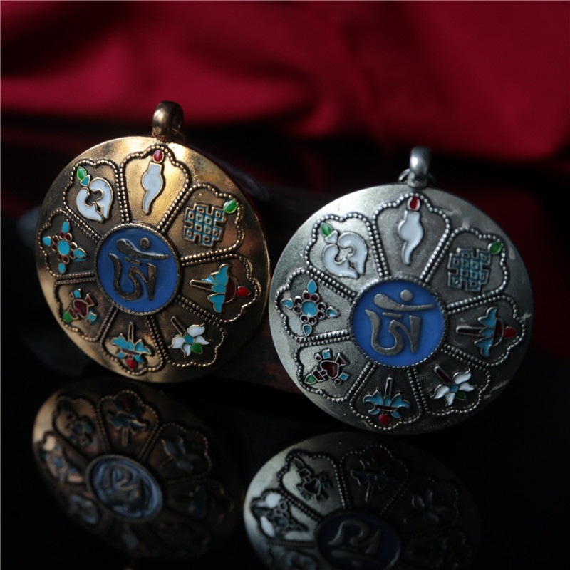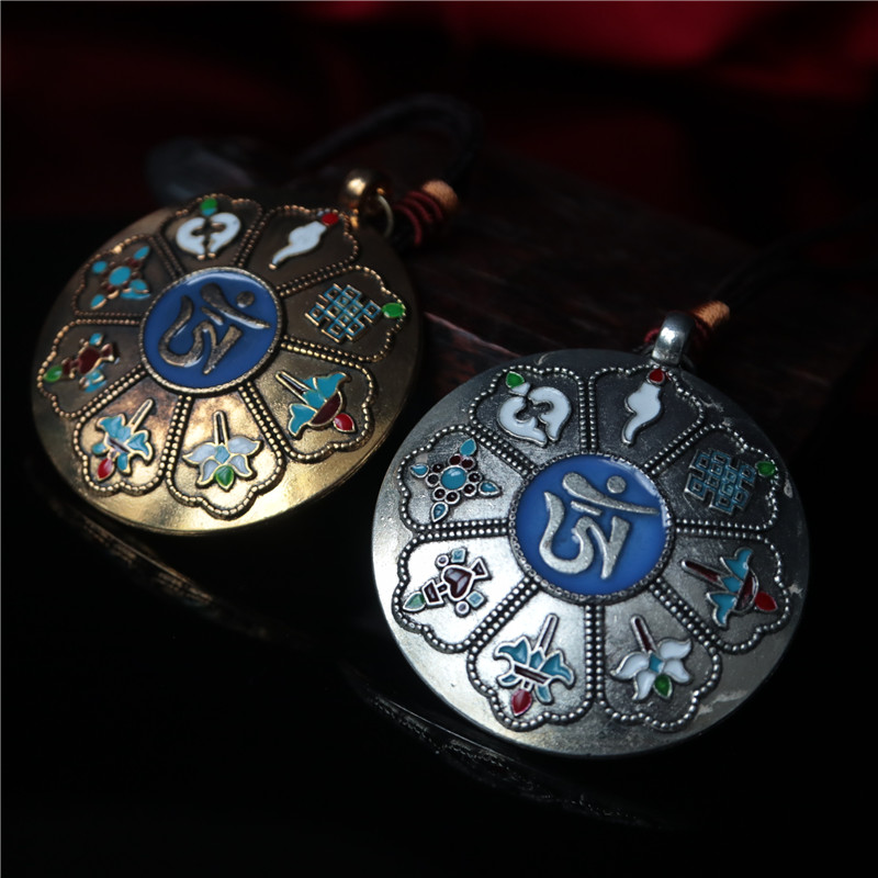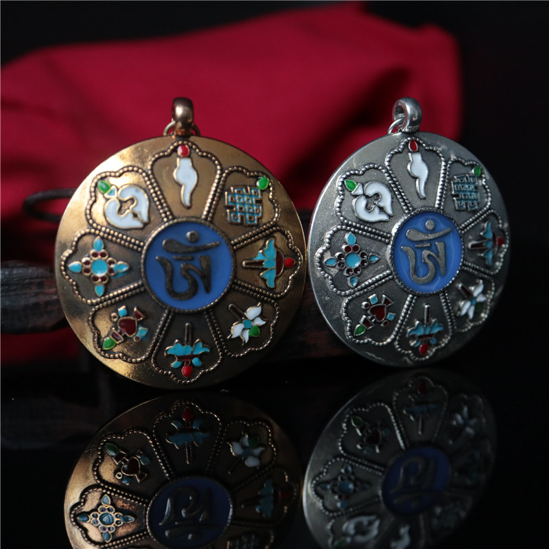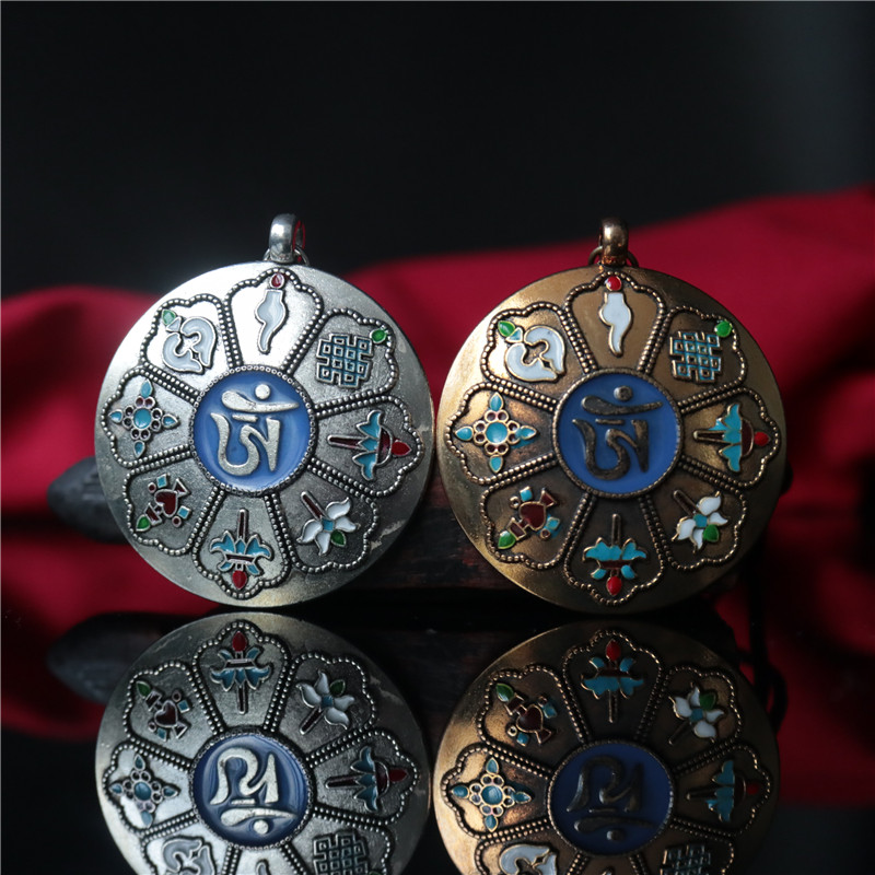 西藏 拉薩直發琺瑯彩工藝 九宮八卦牌藏式風格十二生肖九宮牌吊墜1入