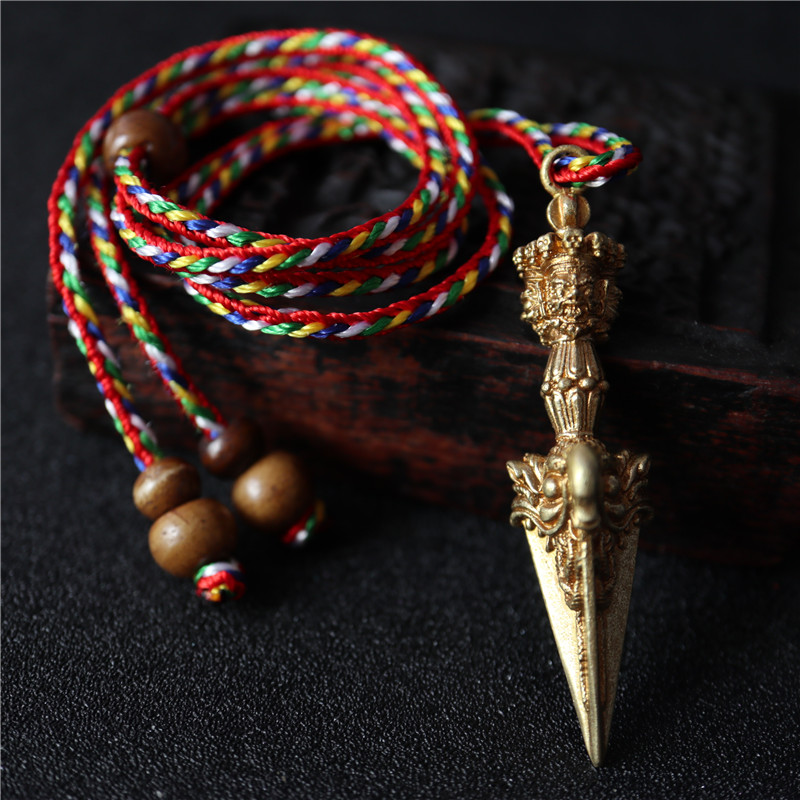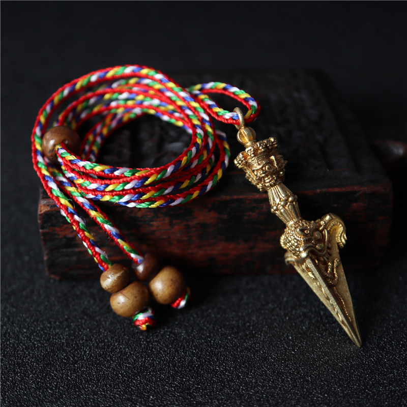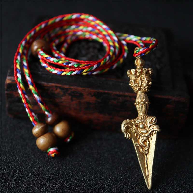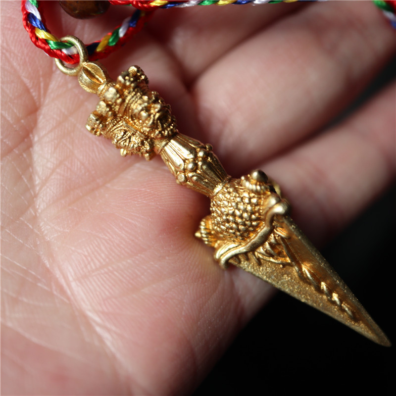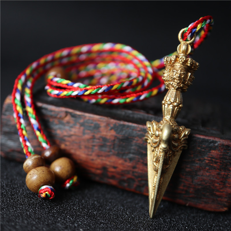 西藏直發黃銅不掉色金剛降魔杵三面普巴杵藏式金剛橛避邪護身吊墜1入