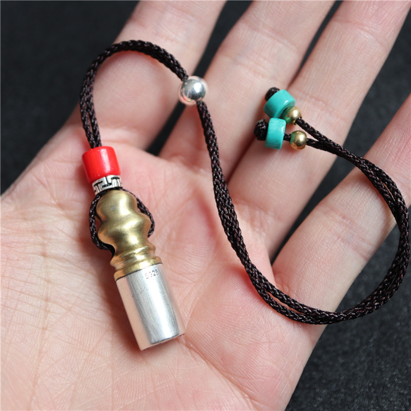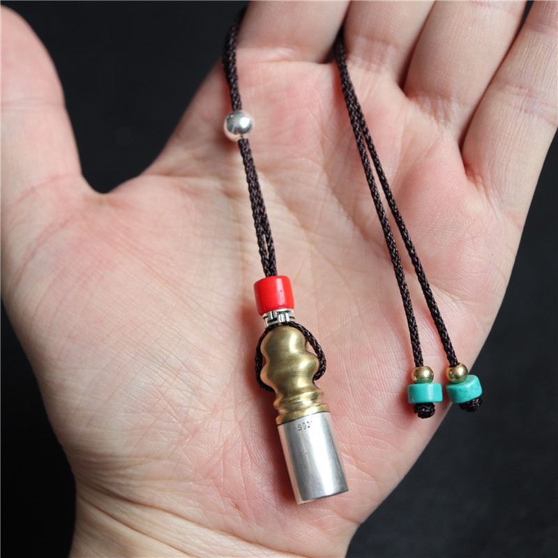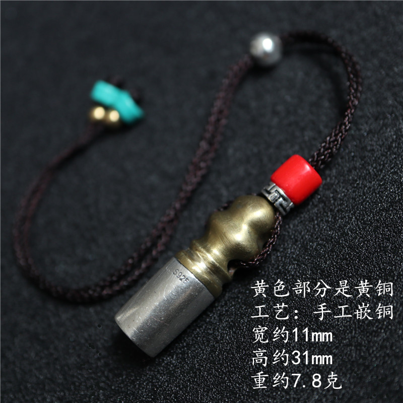 [3]西藏直發精工手工嵌銅鑄模925純銀印章配飾法器背云計數器卡子1入