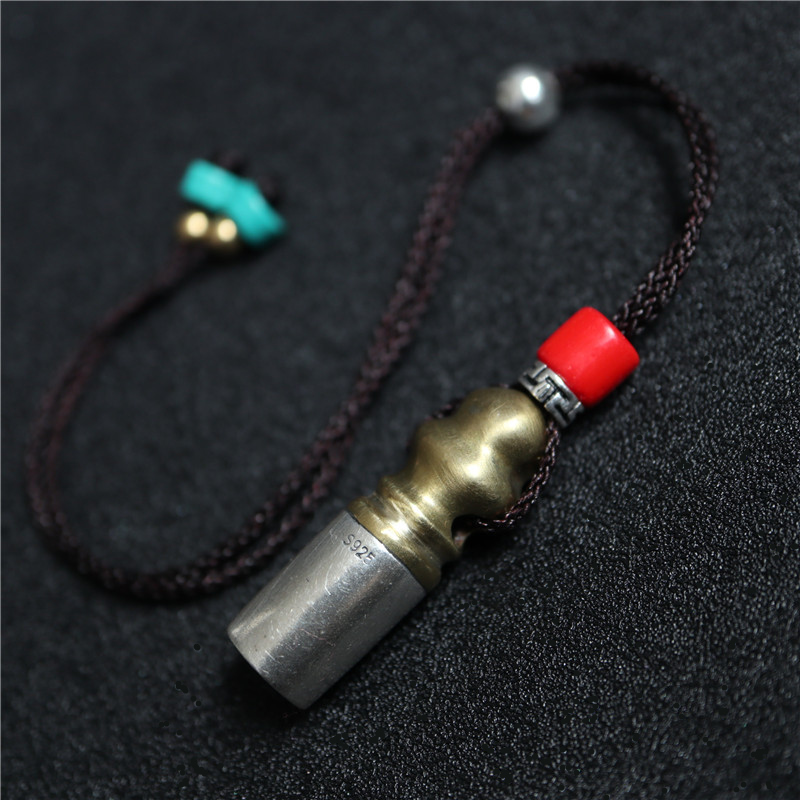 西藏直發精工手工嵌銅鑄模925純銀印章配飾法器背云計數器卡子1入