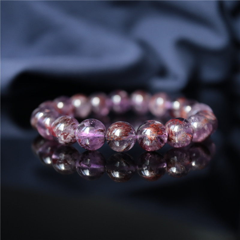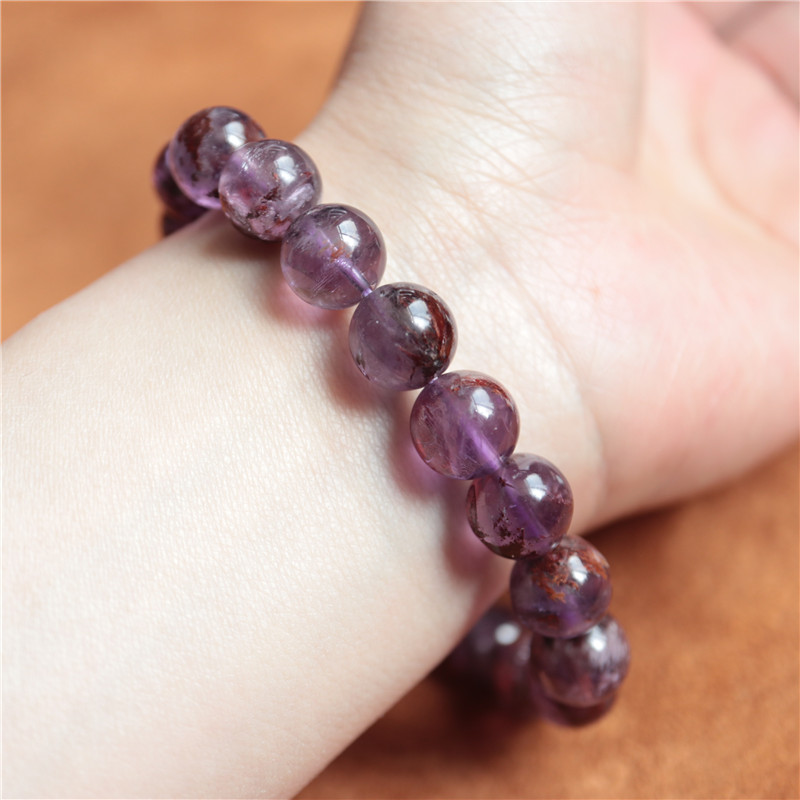 西藏拉薩直發天然紫幽靈水晶男女深紫色天然紫幽靈紫水晶手鏈手串1入